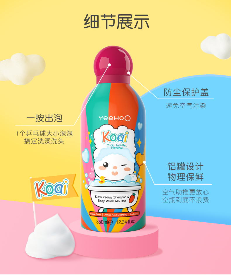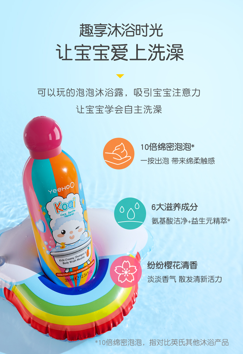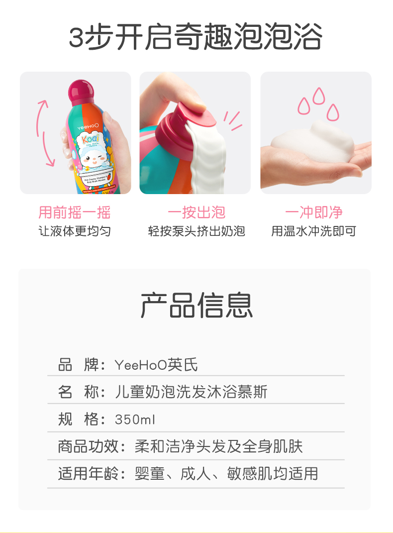 350ml英氏一之可爱儿童奶泡洗发沐浴慕斯(桃气满满)