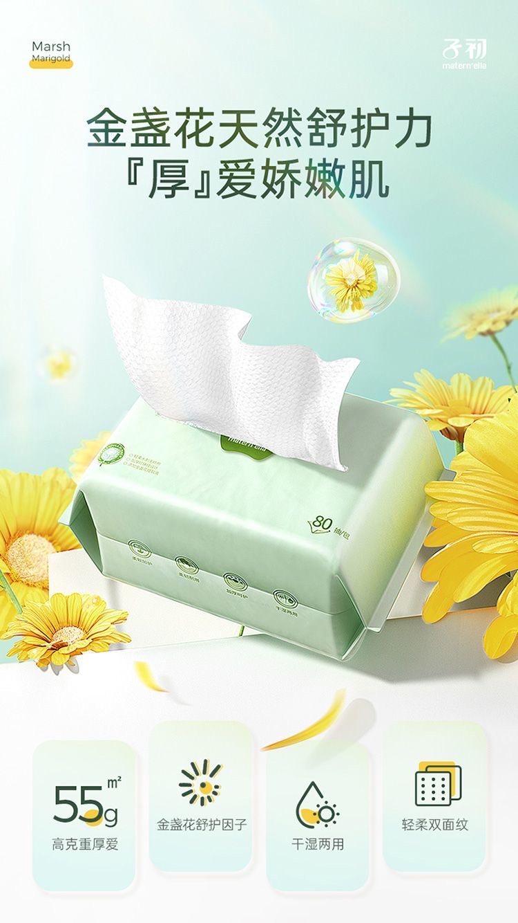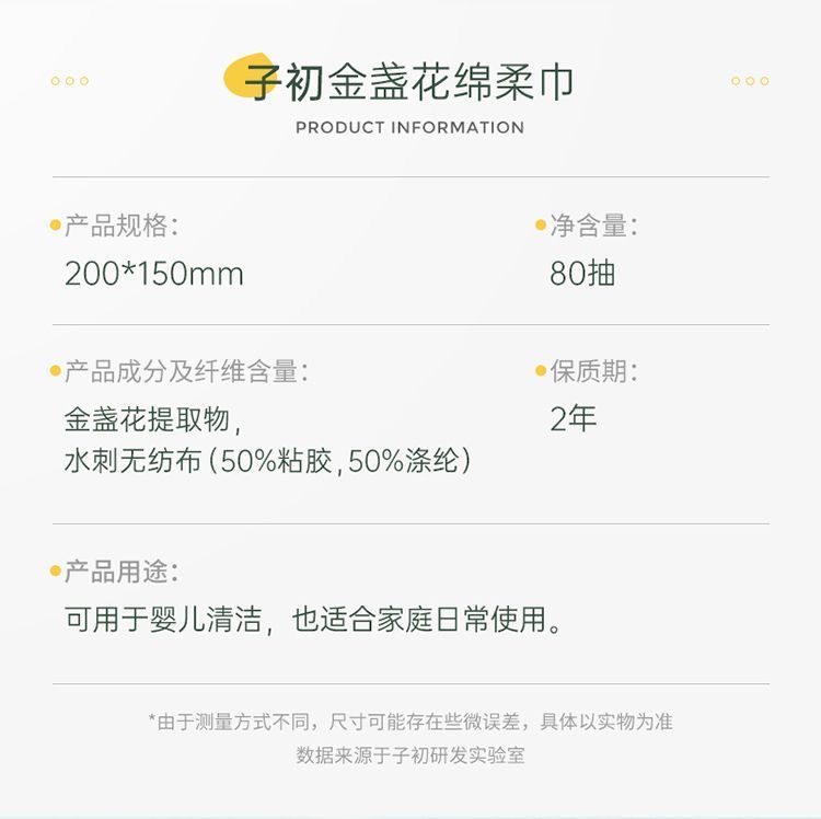 【孕味秒杀专属】子初 金盏花绵柔巾 200*150mm 80抽/包