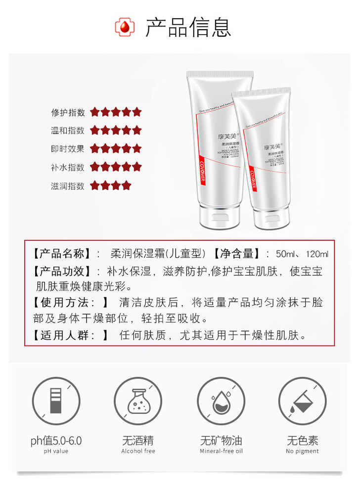 康芙美|柔润保湿霜(儿童型)|滋养防护 质地温和 柔润嫩肤 温和呵护儿童幼嫩肌肤