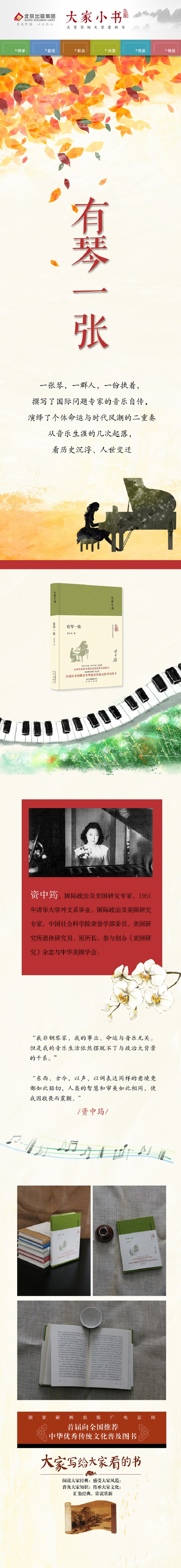 与音乐的关系只不过是少时课余学过六年钢琴,青年时曾以乐会友,老来成为不可或缺的自娱内容,同时也以之念旧游、结新交。其中有一些花絮、趣事以及人生的哀乐、体验。今接受出版社建议,在早已绝版的《锦瑟无端》小册子的基础上,加入新的内容,续成一本小书,雪泥鸿爪,以飨同好。无以名之,想起欧阳修自号“六一居士”,“六一”之中我得其三:书一万卷、琴一张、老翁(媪)一个,遂以《有琴一张》为名。