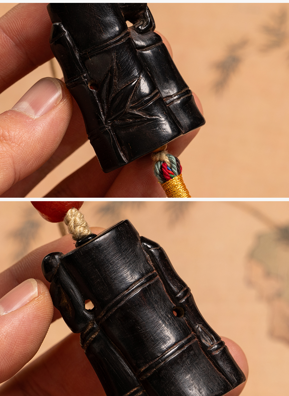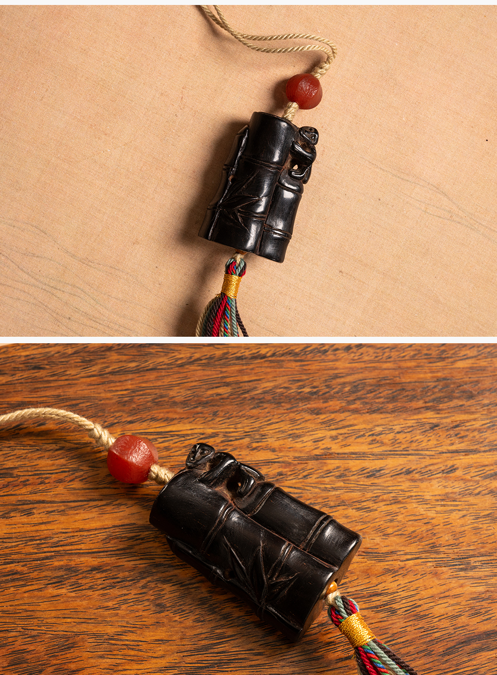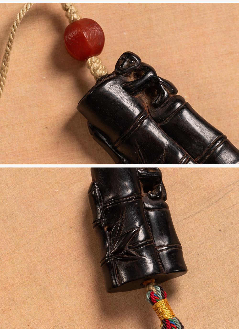 清 紫檀雕竹节工把件