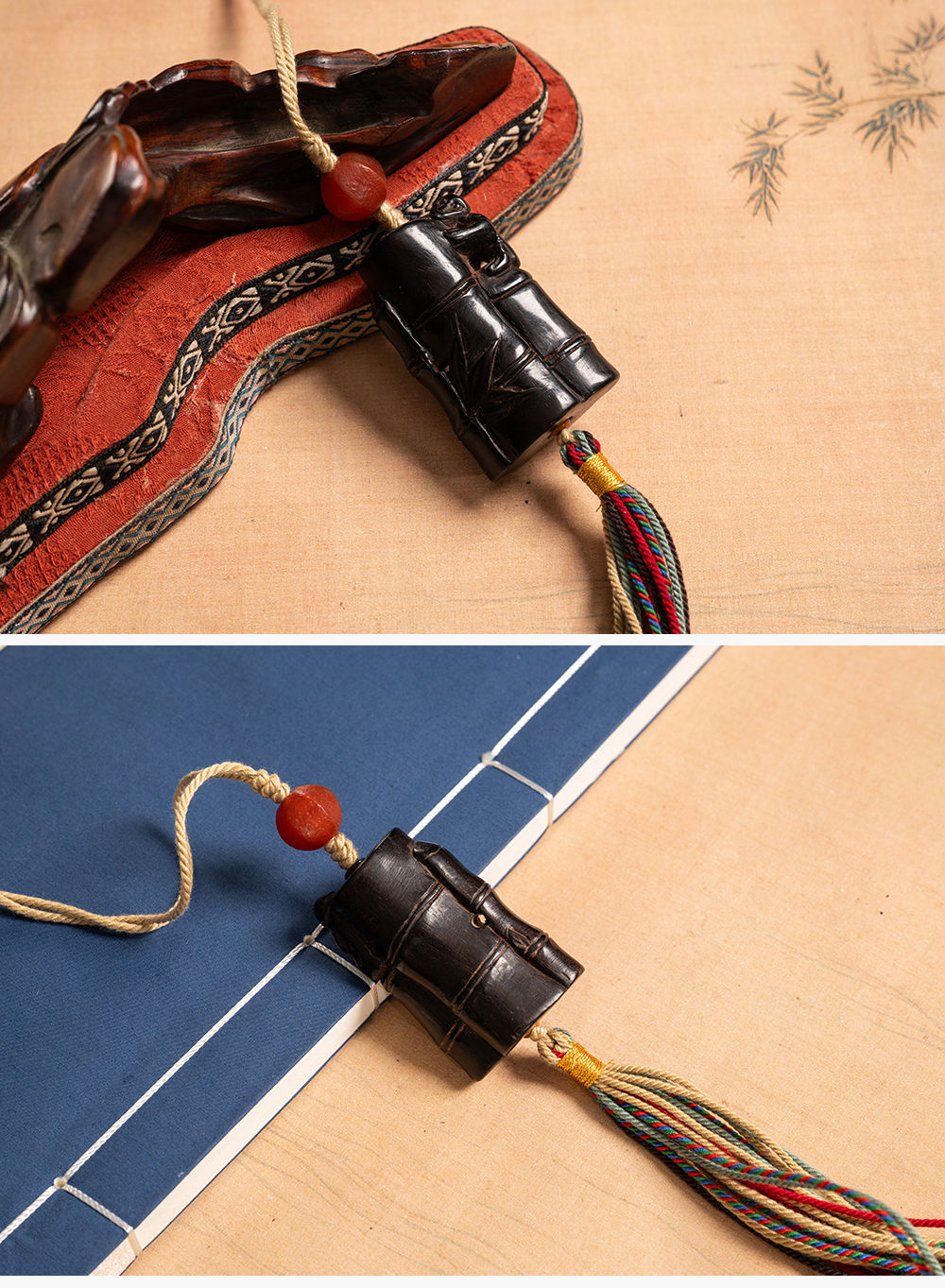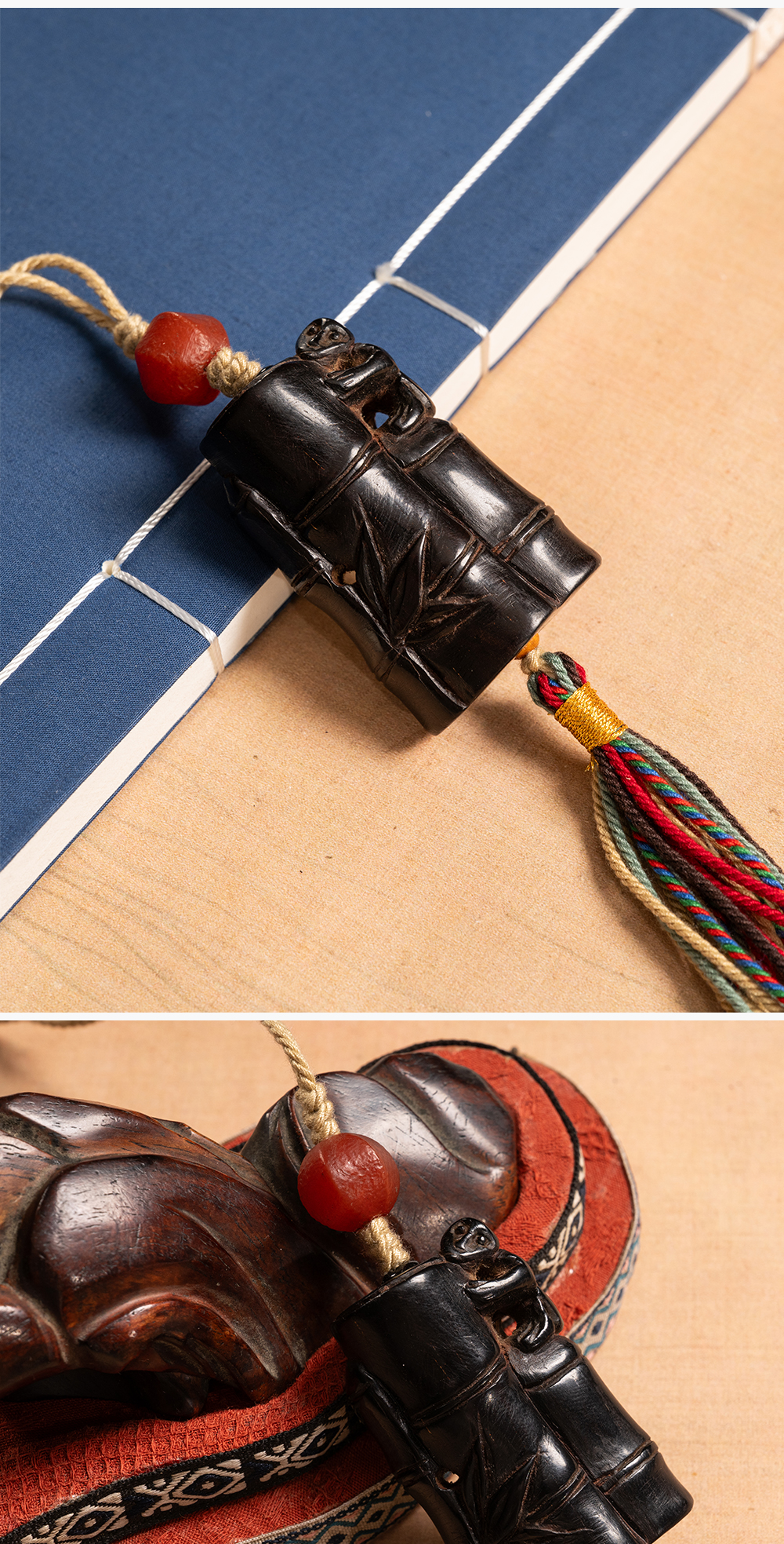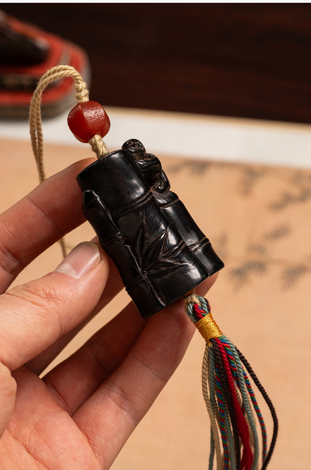 清 紫檀雕竹节工把件