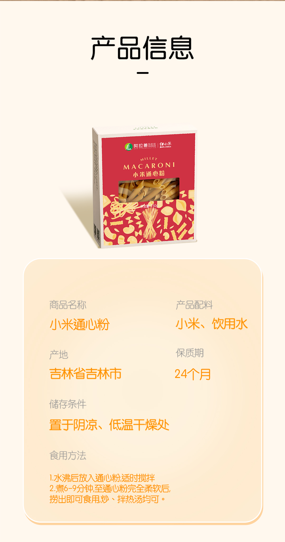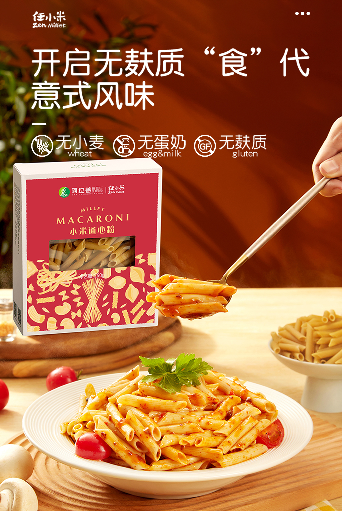 【小米斜管通心粉250g*2】任小米小米面条意大利面无小麦无麸质营养通心粉速食家用