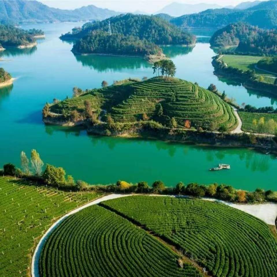 抹茶茶园基地位于千岛湖下姜村茶旅融合示范区内经度118.71°纬度29.37°,年平均气温17度年降水量1430MM,155个雨日,最为适合优质茶叶种植。