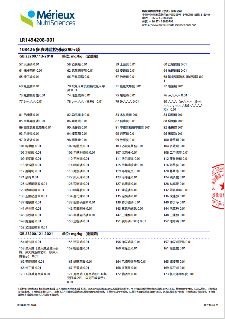 并且为了保险起见,我们也抽取了样品送检,290+农残未检出~