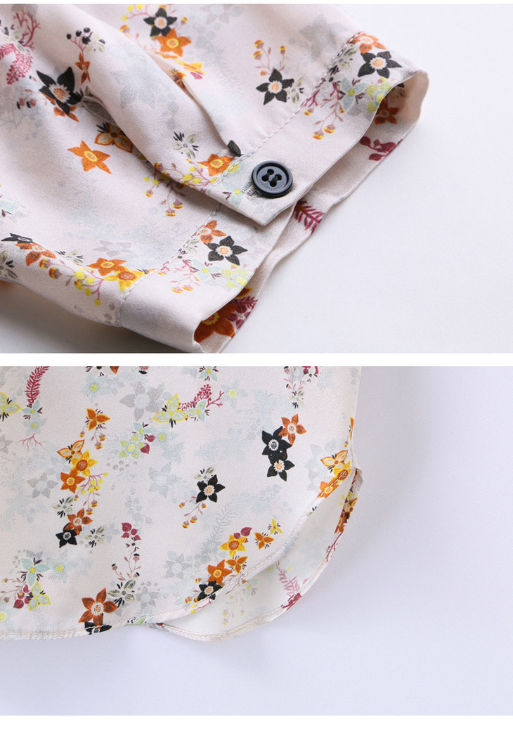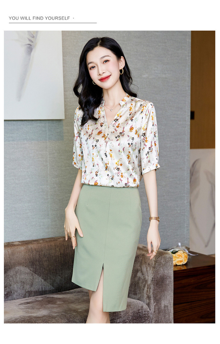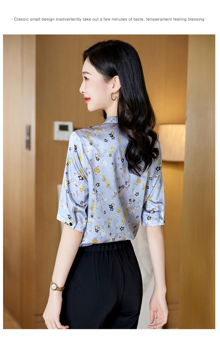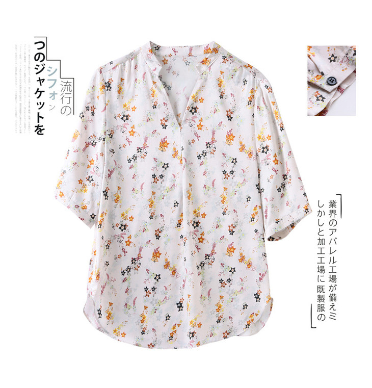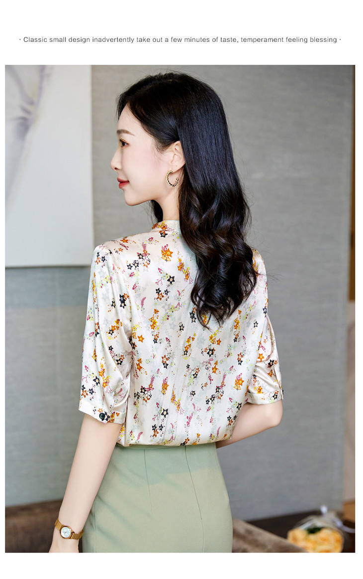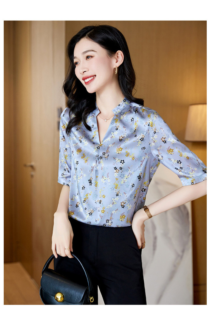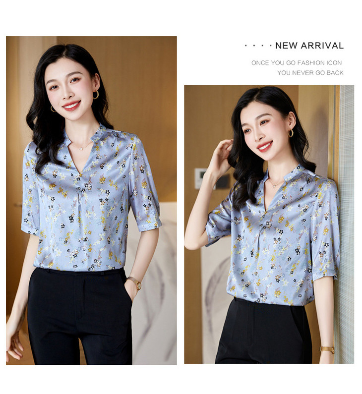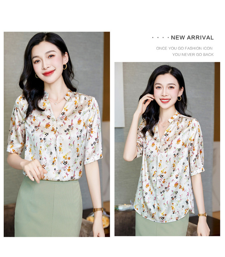 YQ小清新碎花中袖时尚衬衫女夏2024新款气质V领轻熟高端桑蚕丝上衣
