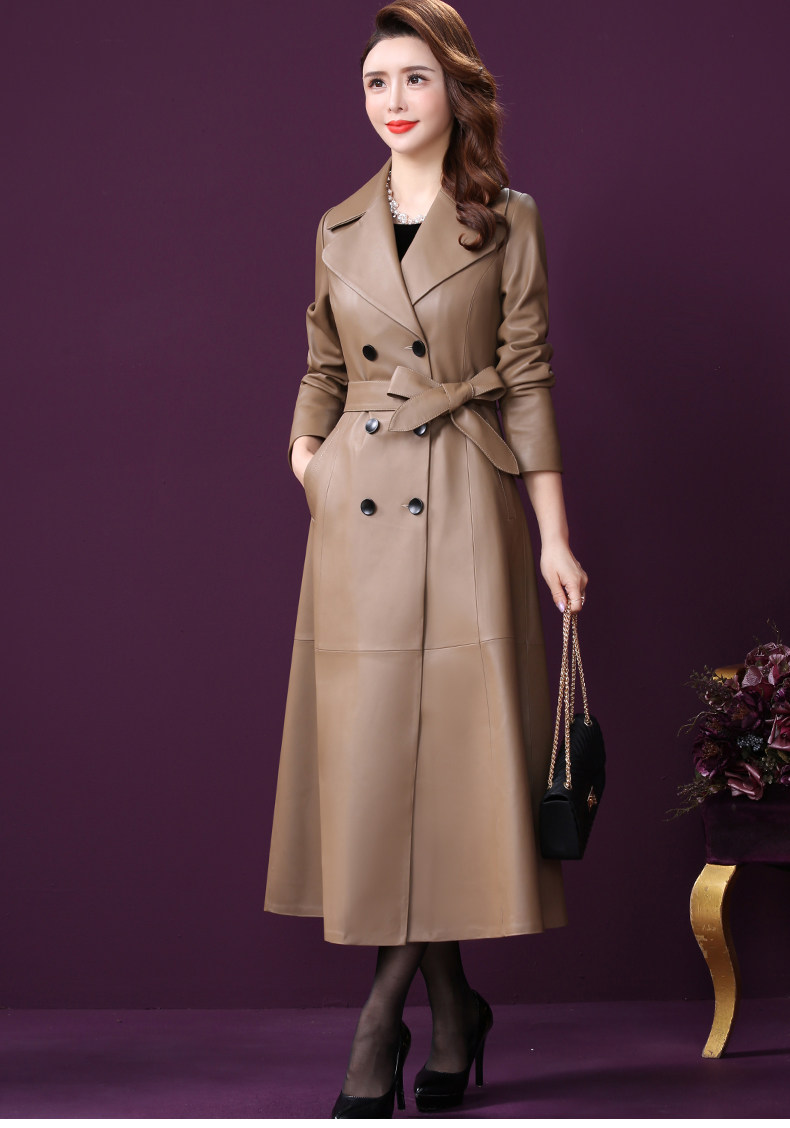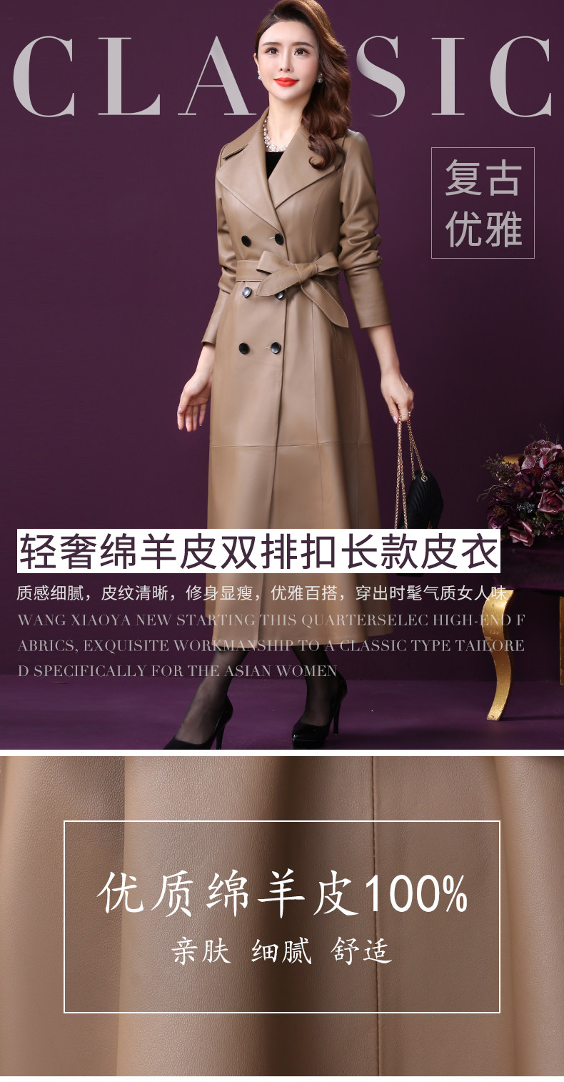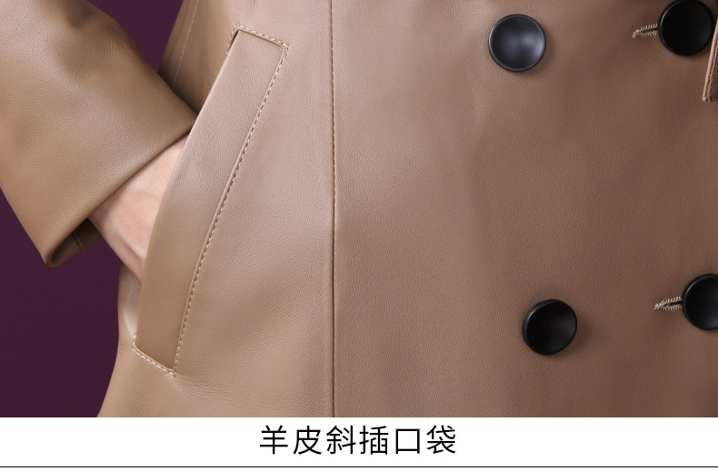 WXY-W-CT-2092-2轻奢海宁绵羊皮中长款真皮皮衣外套