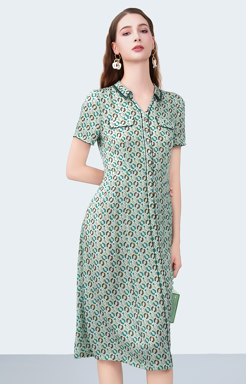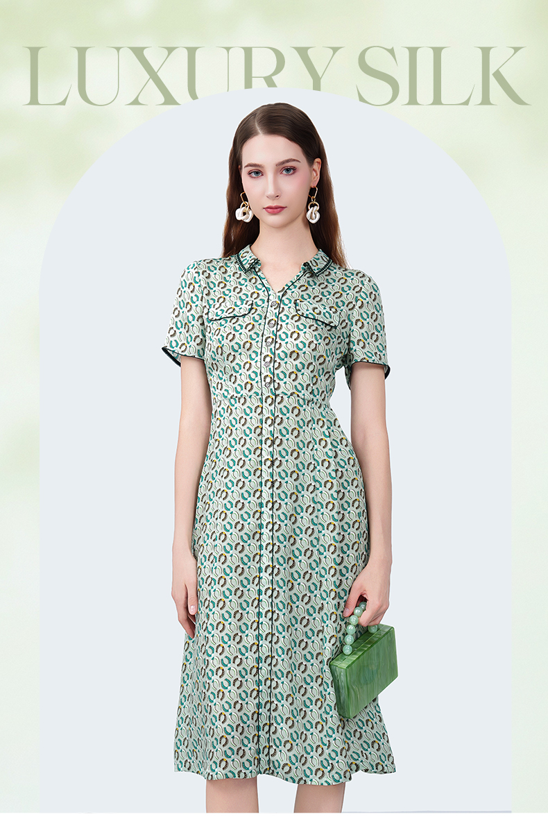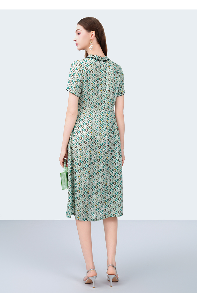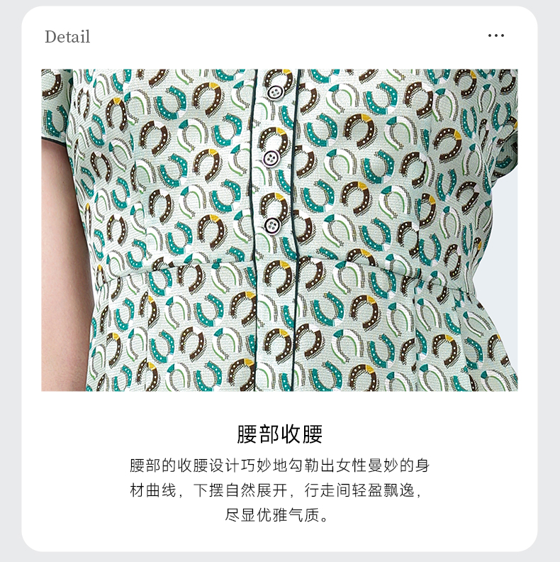 乔万尼新款100%真丝V领修身印花中长款连衣裙ED2E403