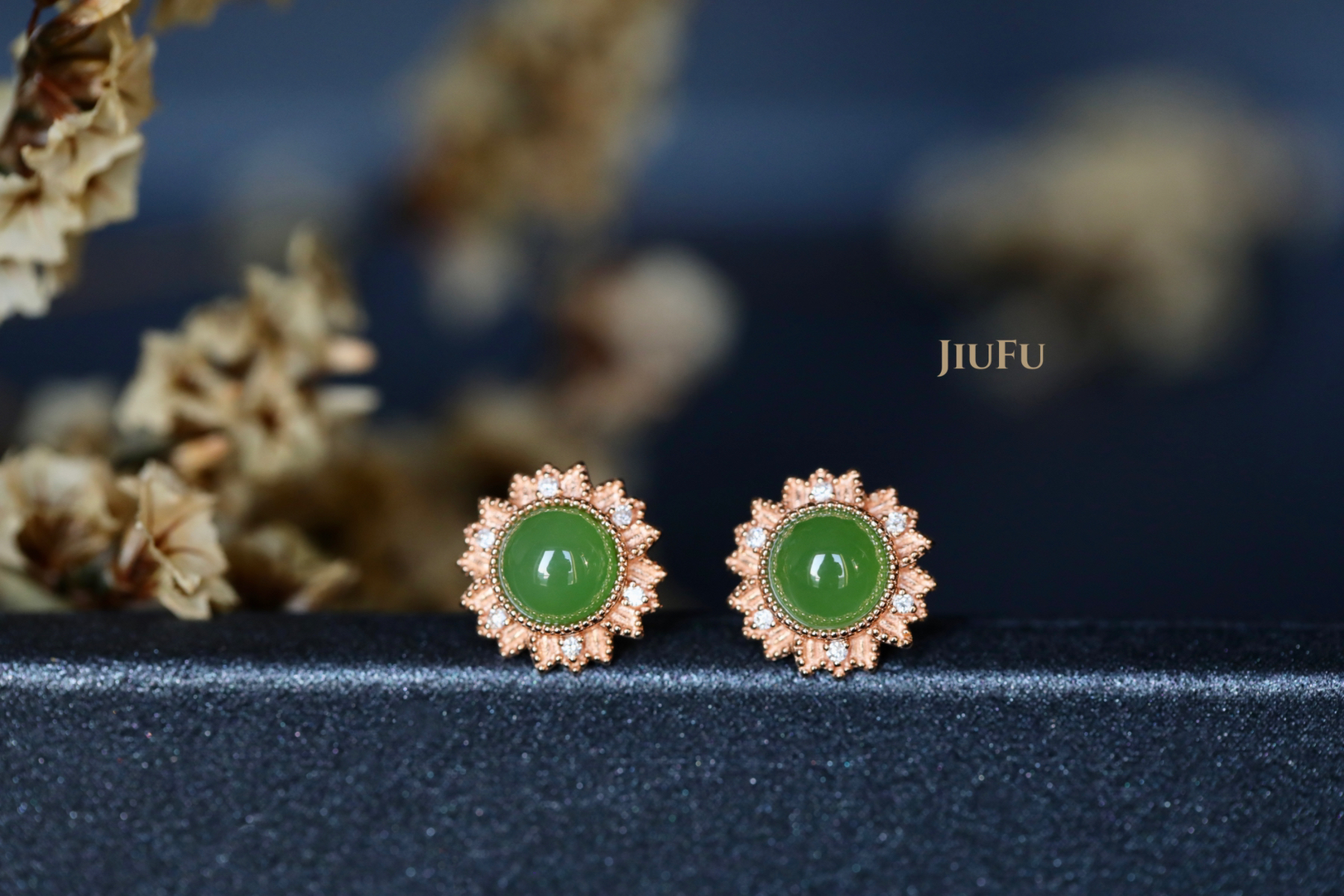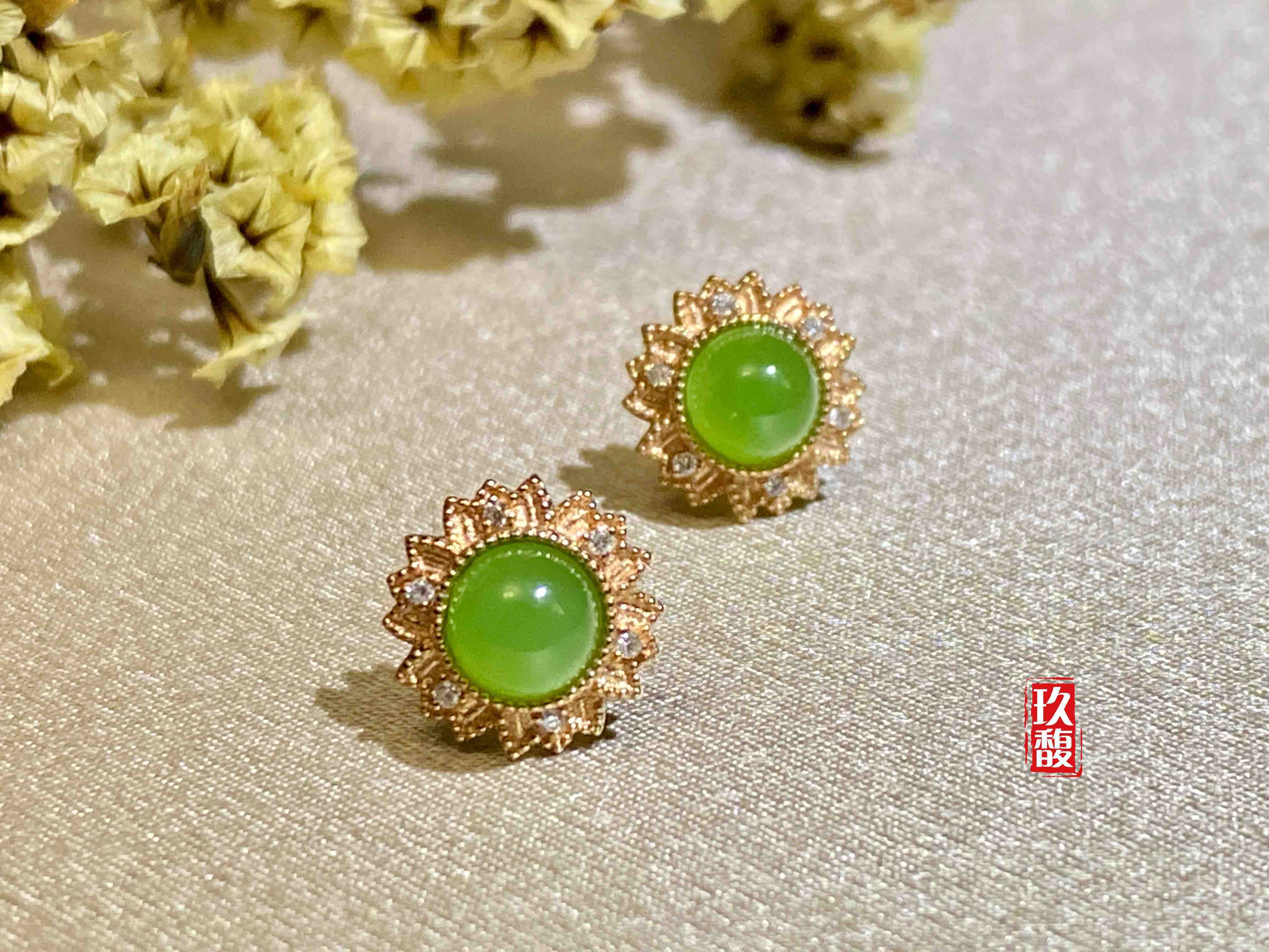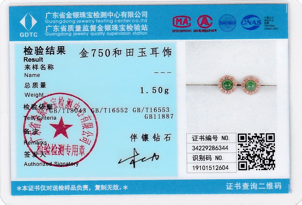18K玫瑰金和田玉(碧玉)耳饰