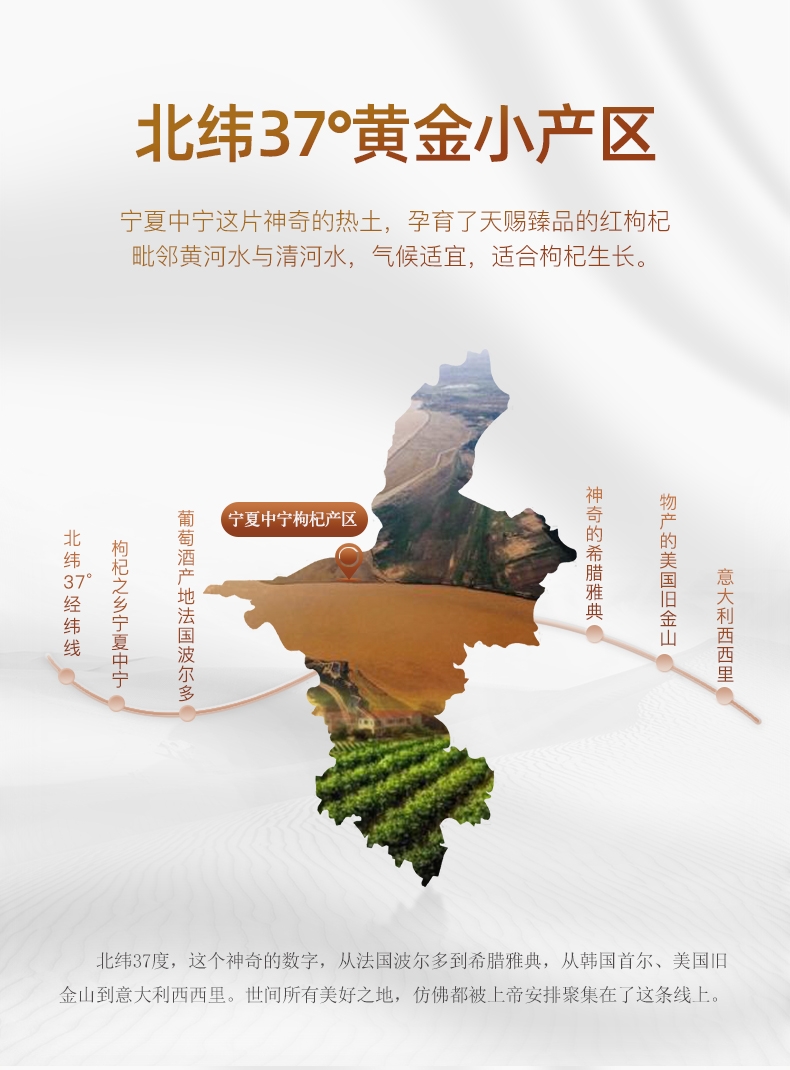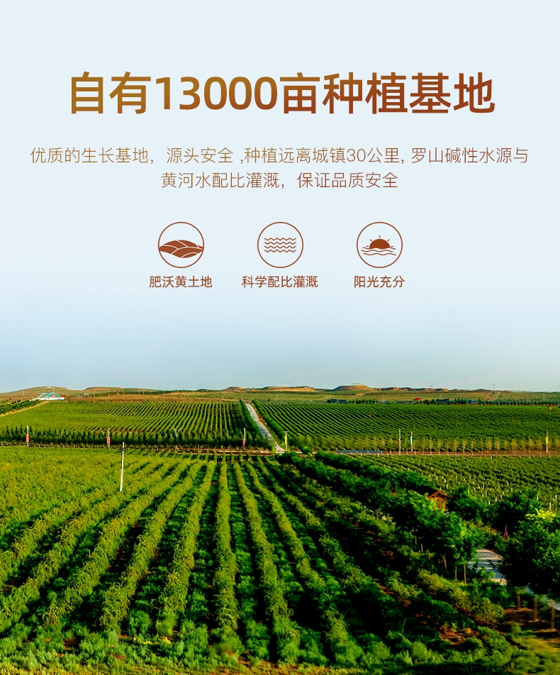 玺赞公司位于中国枸杞之乡—宁夏中宁县。在中宁枸杞红柳沟小产区建高标准枸杞种植基地一万三千亩—玺赞生态枸杞庄园,实现了研发、种植、加工、营销、文旅、生态“六位一体”的现代枸杞全产业链企业,本店是玺赞微店