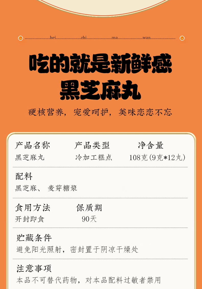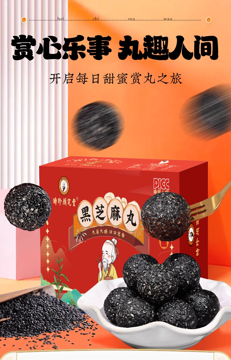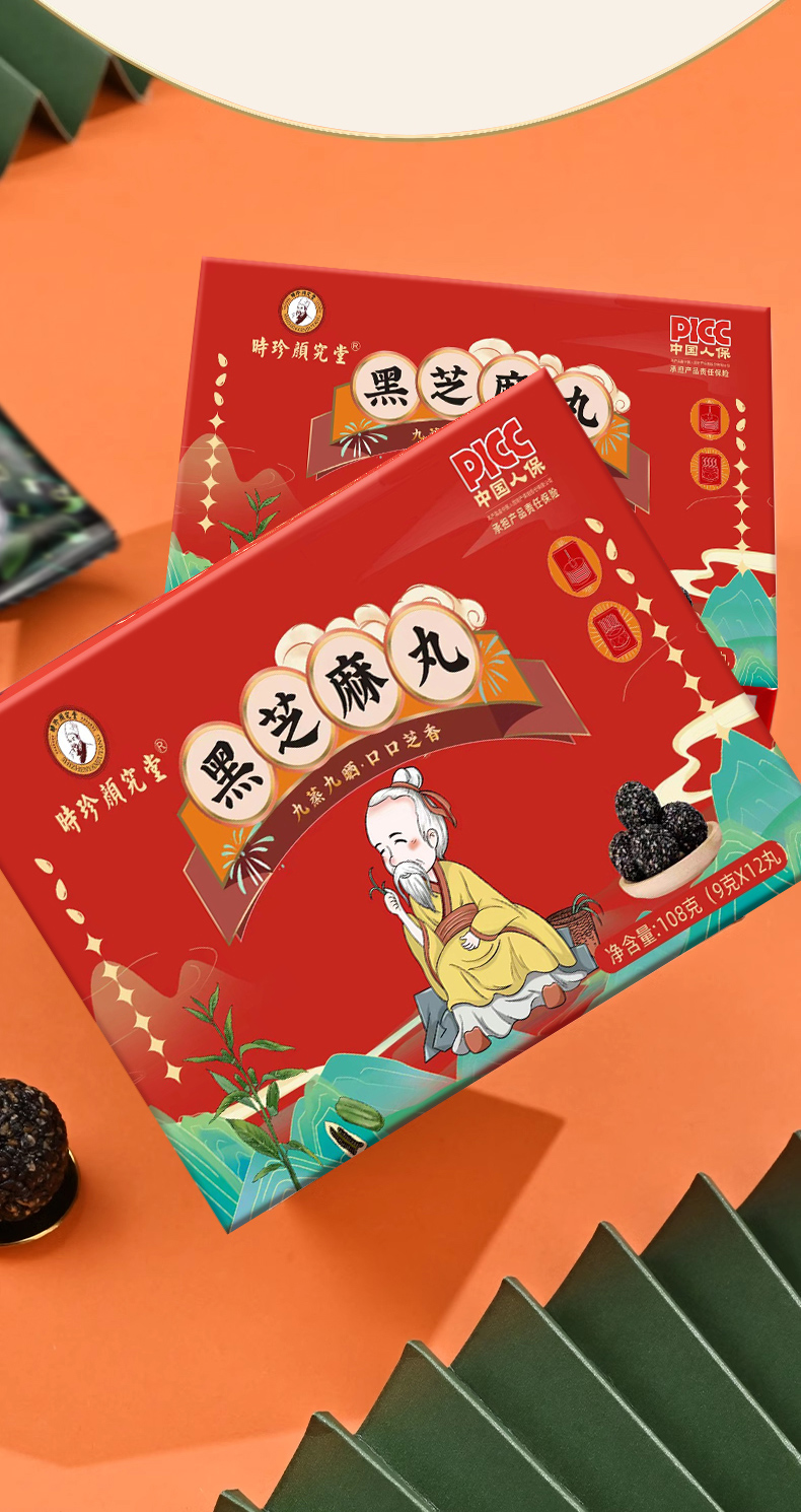 热卖中!买3送5 百年传承!源自于1921年时珍颜究堂黑芝麻丸九蒸九晒芝麻丸 轻养健康小零食 以黑养黑 即食男女老少皆宜 1盒/108g