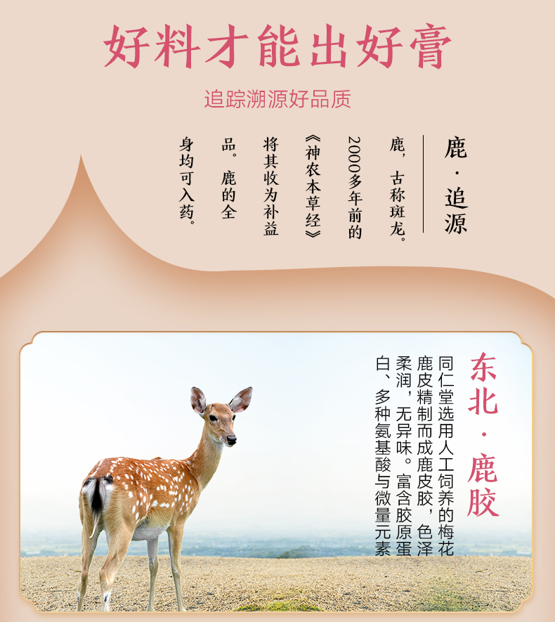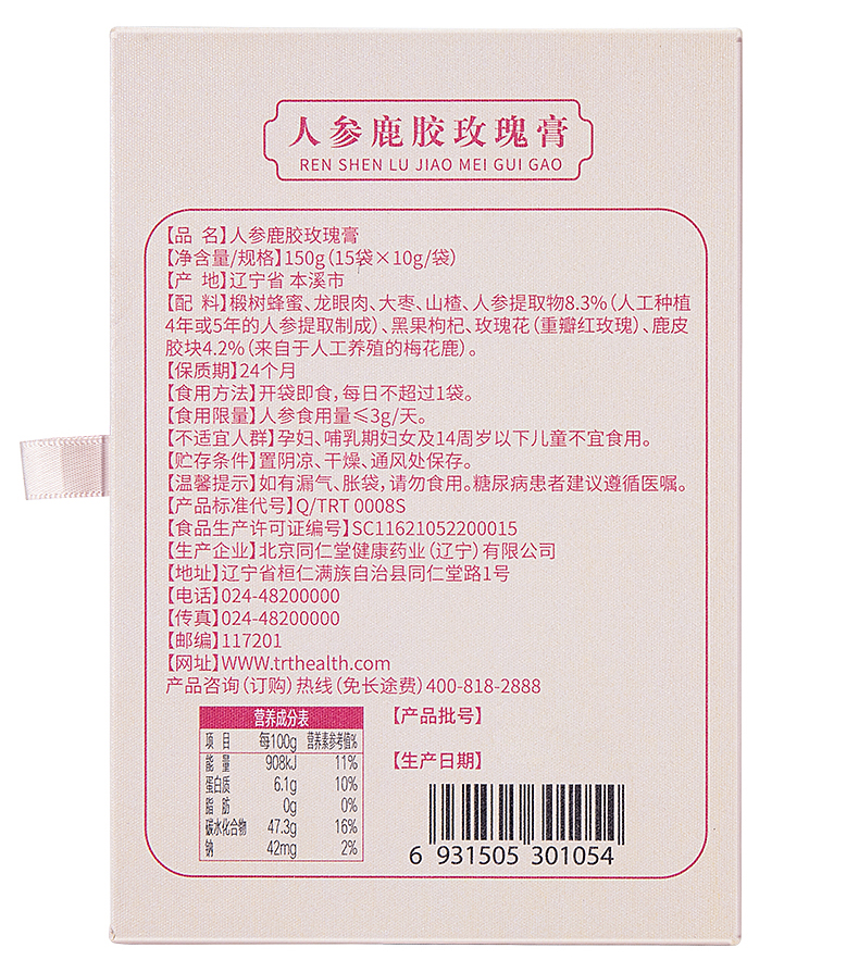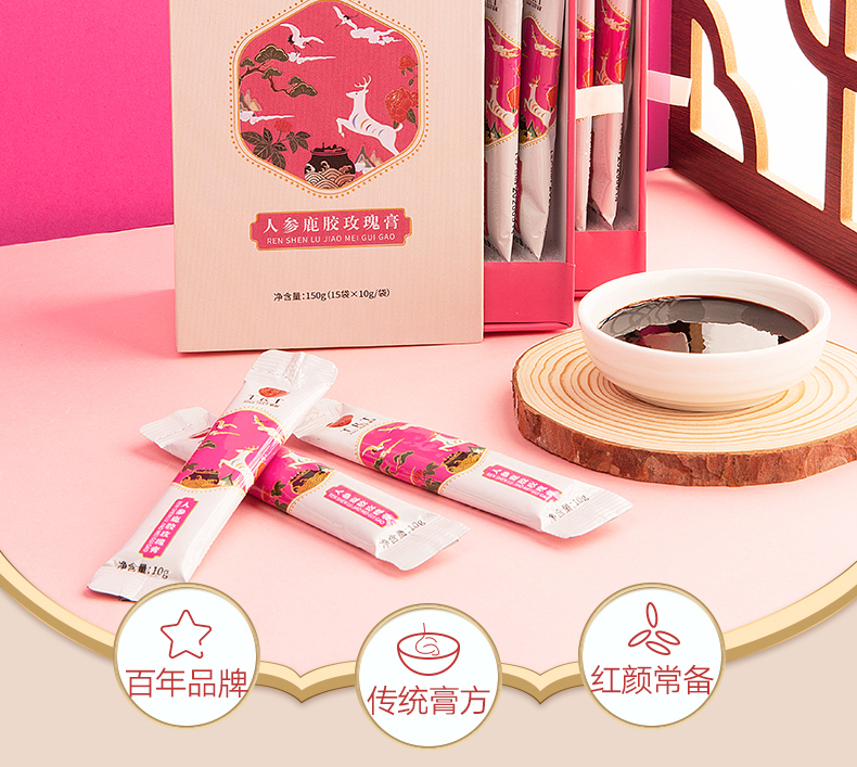 【正宗同仁堂品牌】北京同仁堂 人参鹿血膏150克(15袋*10g)八种好料 胶养佳人 膏体细腻无杂SY