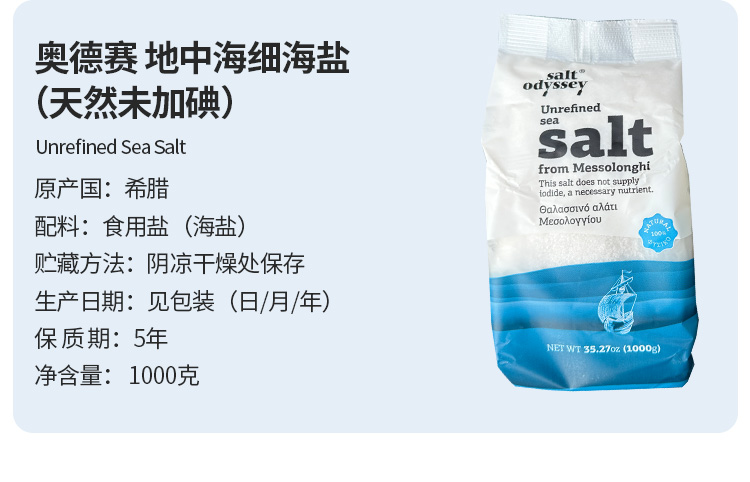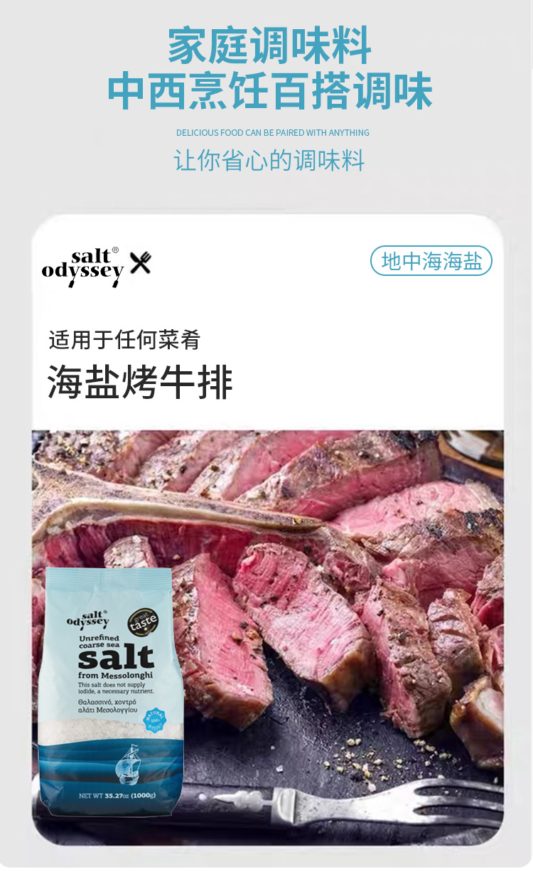 希腊进口天然日晒地中海内海海盐 高端食用盐调味料 提鲜健康无添加