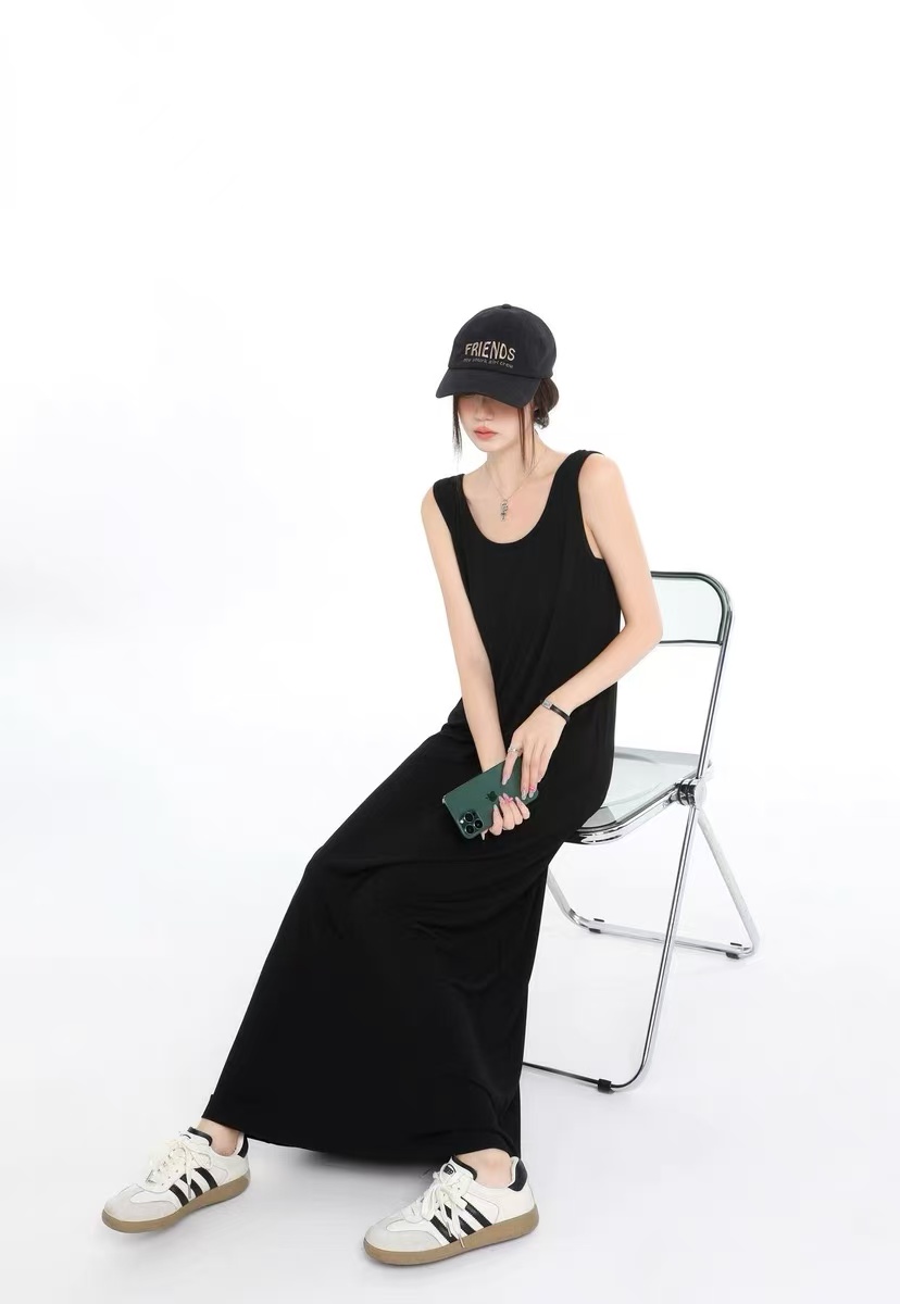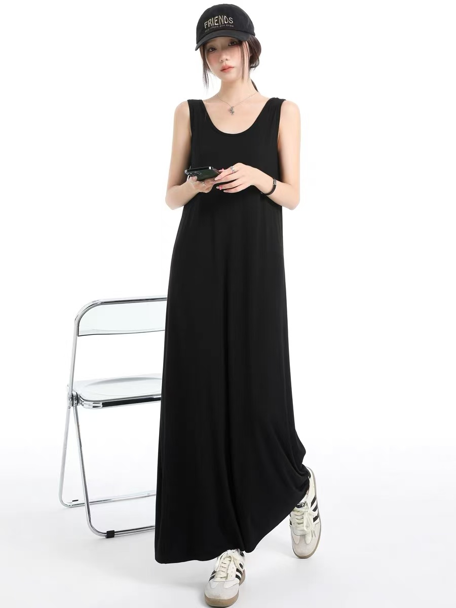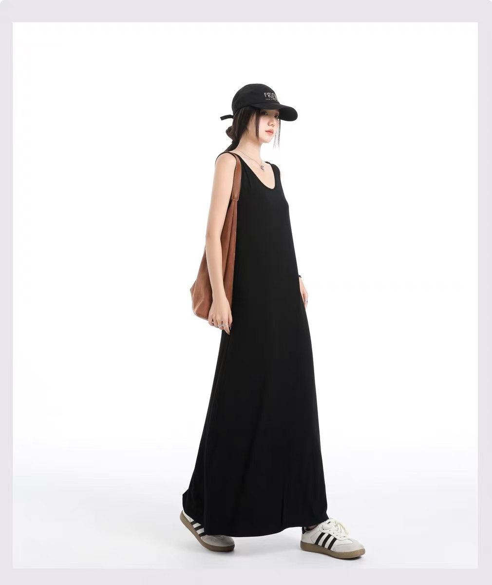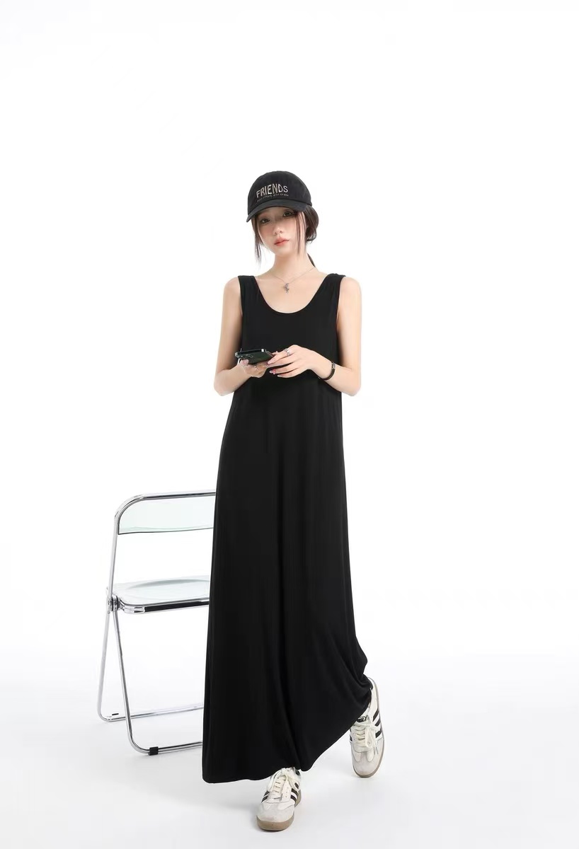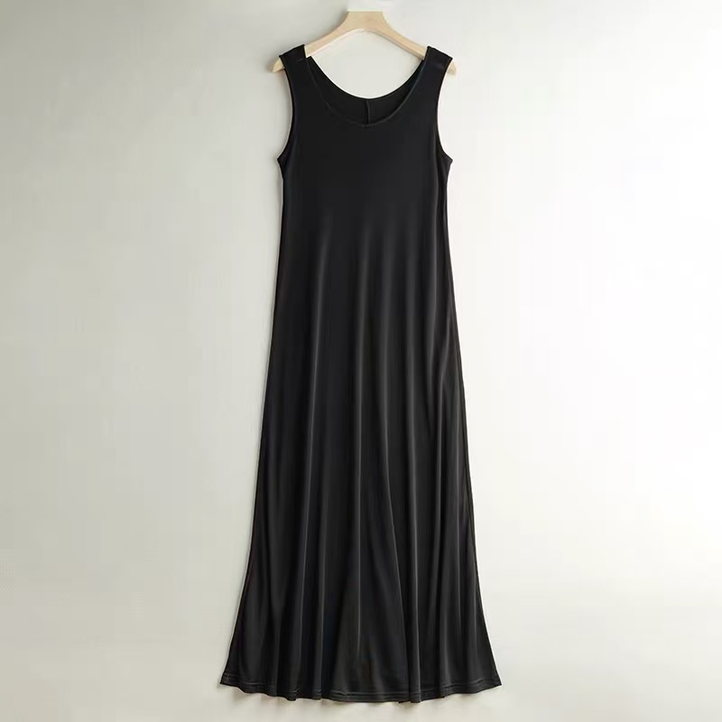 【超值推荐】70%黏胶纤维慵懒风长款显瘦超舒服背心连衣裙-喜出