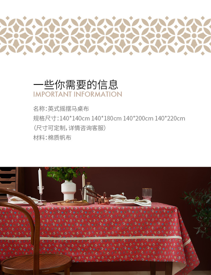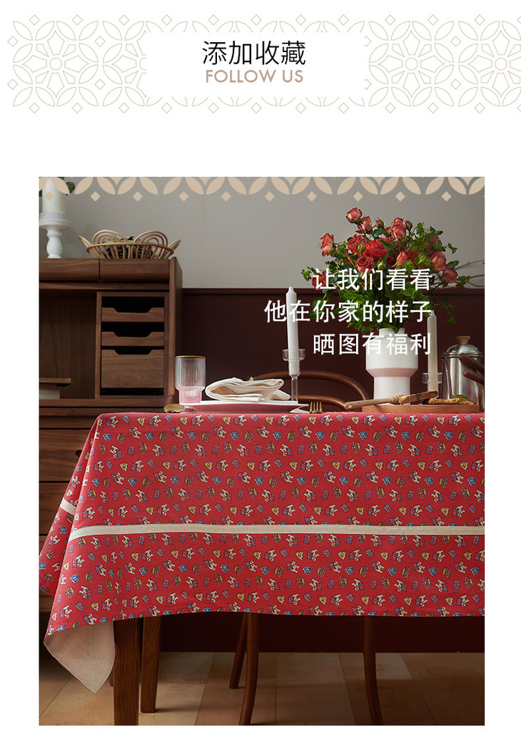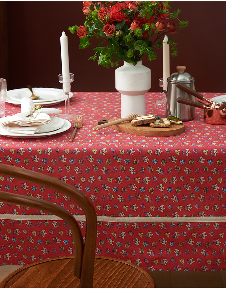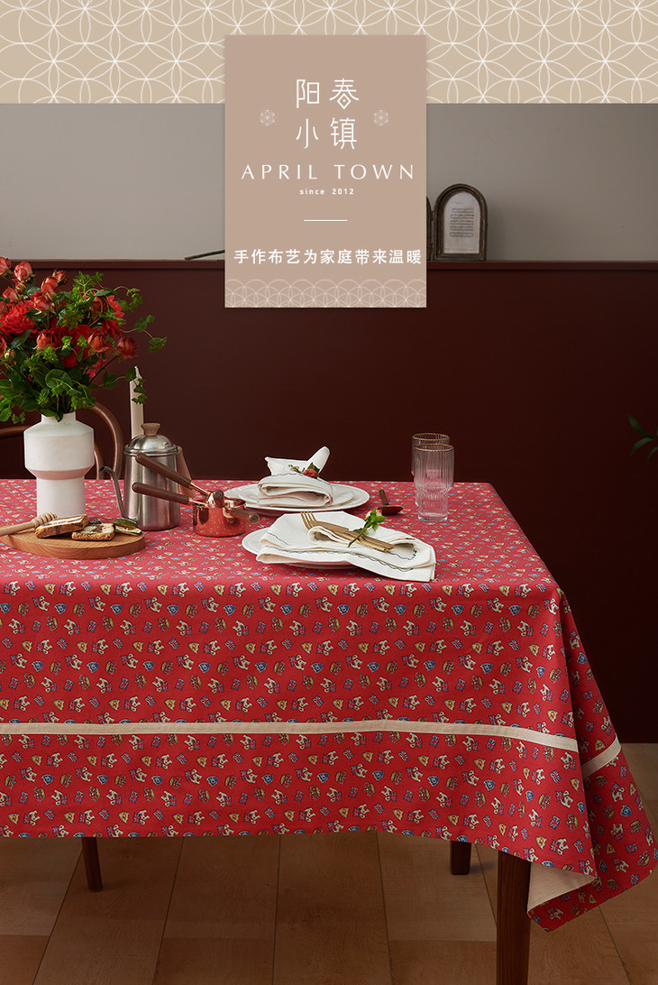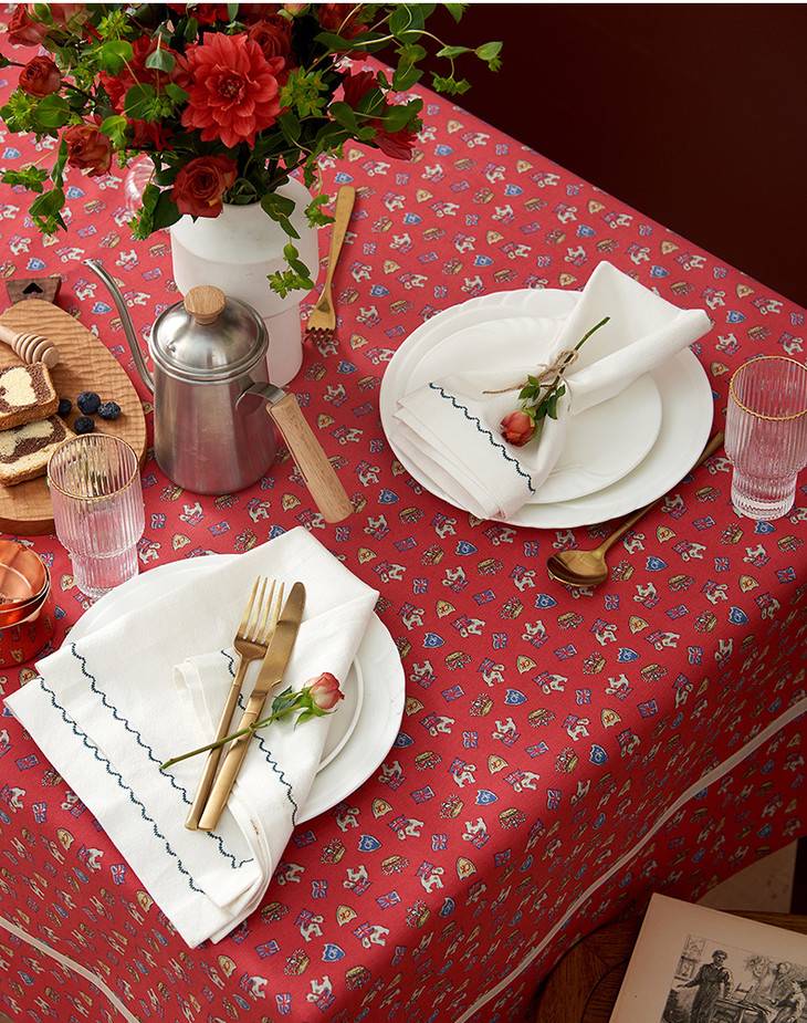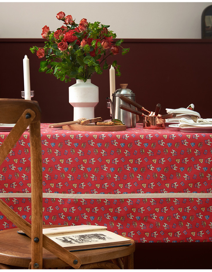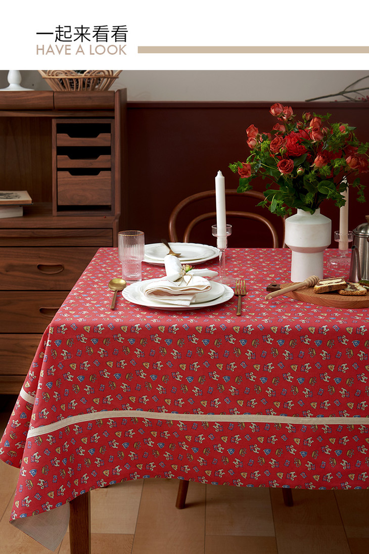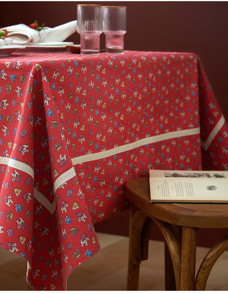 摇摆马桌布红色桌布新年主题帆布餐桌布长方形加厚英式下午茶过年茶几台布