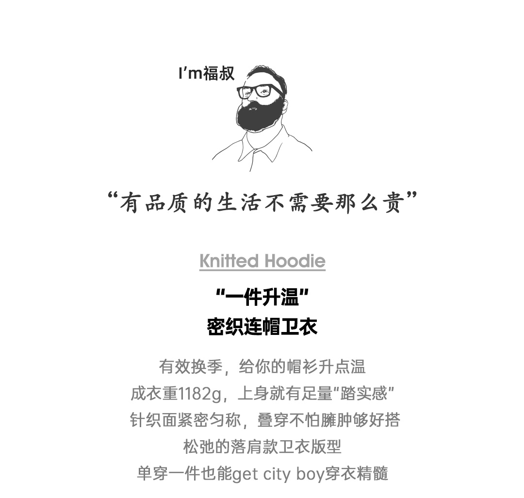 【触感软糯带弹 叠穿不臃肿】休闲重磅连帽针织衫卫衣