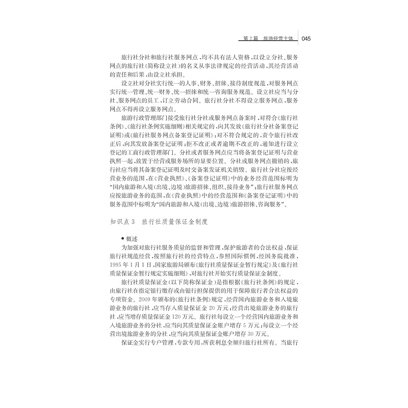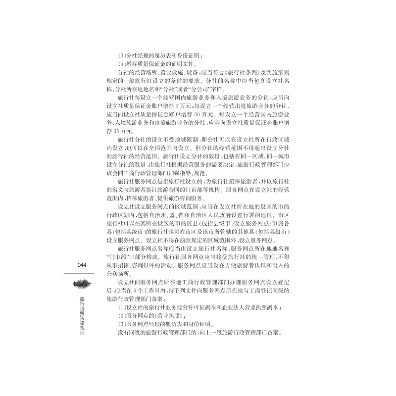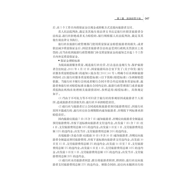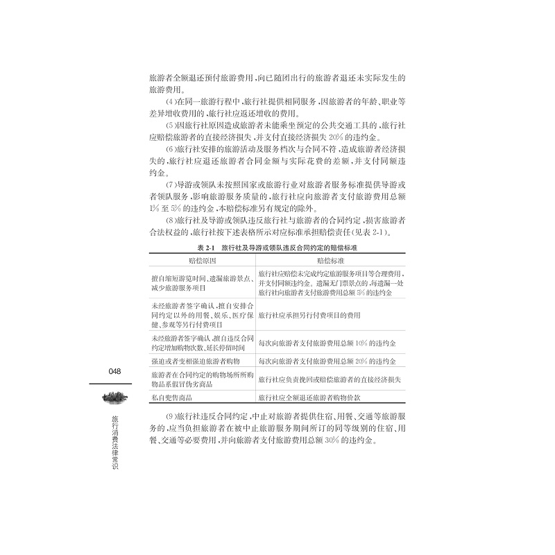 本著作探讨旅行消费者权益的保护问题。主要分为六大篇,分别是旅游经营主体篇、旅行消费案例篇、出境旅游篇、旅游安全篇、旅游维权专题篇、旅游行政救济篇。在旅游经营主体篇中,介绍了旅行社、旅馆、景点景区三大经营盈利主体。在旅行消费案例篇中,作者列举了涉及吃、住、行、游、购、娱六环节消费者维权的案例。在出境旅游篇中,作者介绍了护照、签证等出入境证照,大陆居民赴台湾旅行相关要求,边境旅游事宜,外国人入境、境内居留、旅行的相关规定等内容。在旅游安全篇中,作者介绍了漂流、探险等特种旅游项目的安全管理要求,旅行社、饭店、景区的旅游安全管理事项,并提出了旅游行业安全防范的若干措施。在旅游维权专题篇中,作者设专题探讨了旅游合同的签订与履行、旅游经营者的安全保障义务、高档消费场所顾客自带酒水消费、出国保证金、航班延误、旅游保险等问题。最后,作者设专篇介绍了旅游行政救济问题,即不服旅游行政管理部门的行政行为而提起的行政复议和行政诉讼问题。