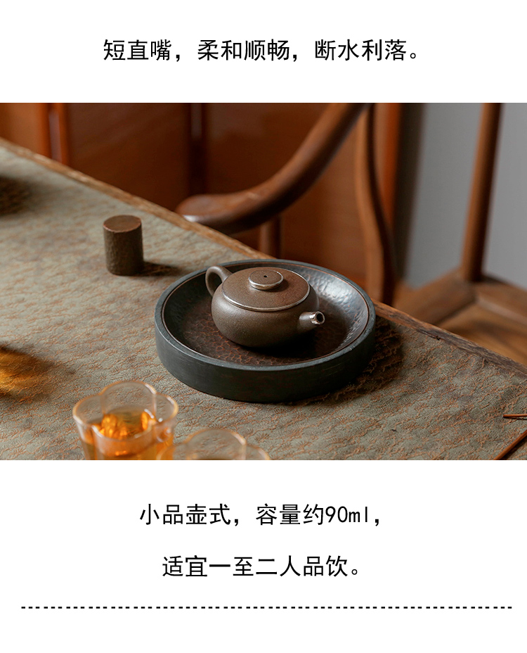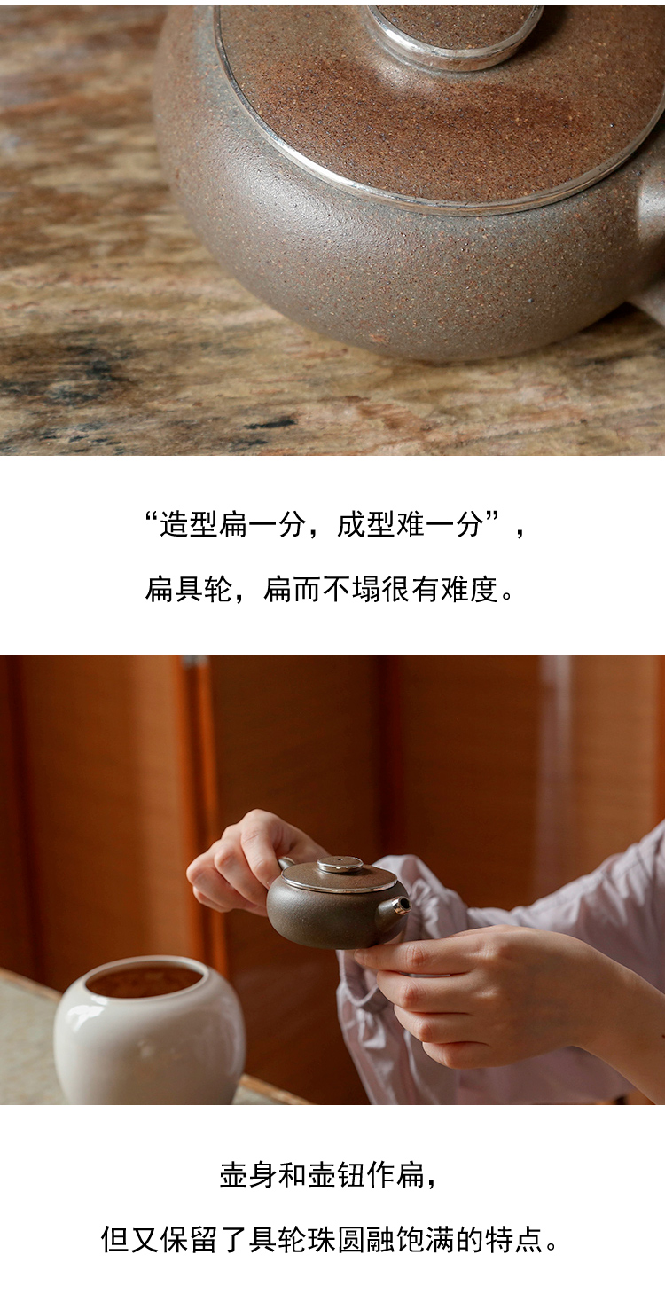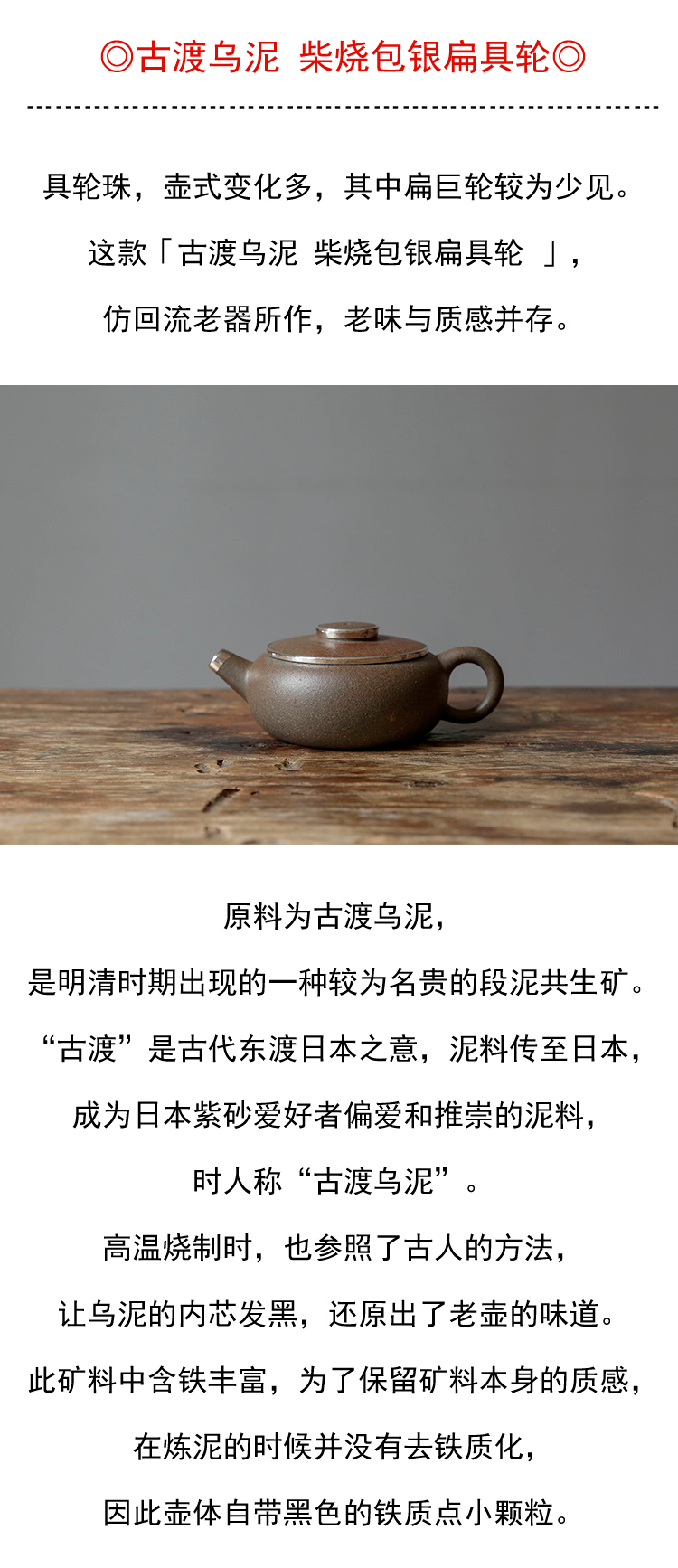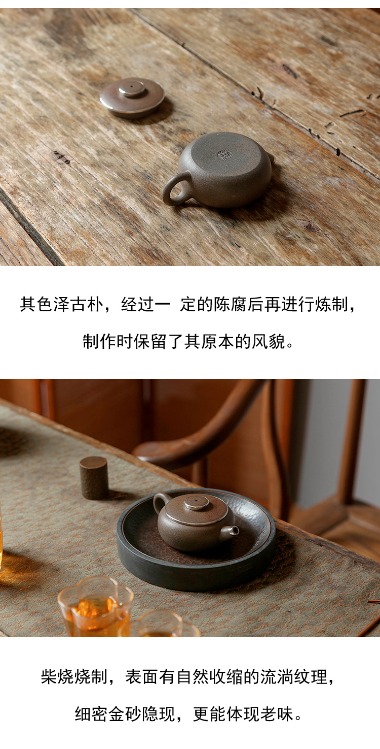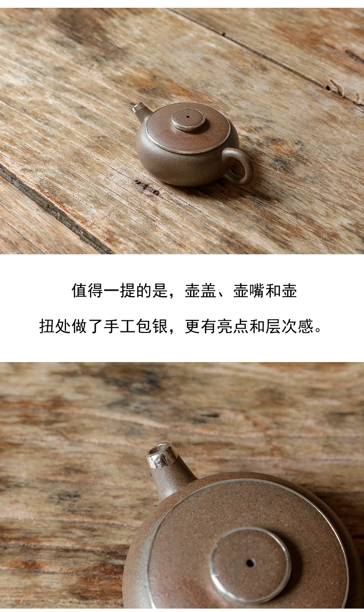 茶香记 古渡乌泥 包银扁具轮紫砂壶 柴烧 仿回流老器 敦实可爱 圆融饱满