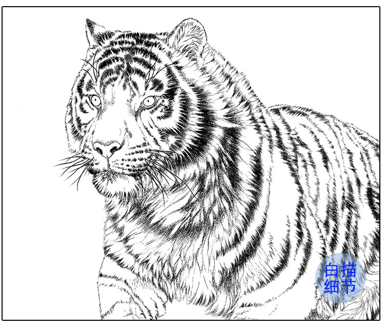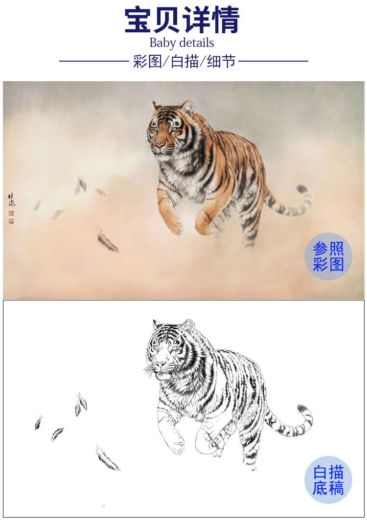 横幅工笔动物白描底稿-刘继彪-老虎-A635