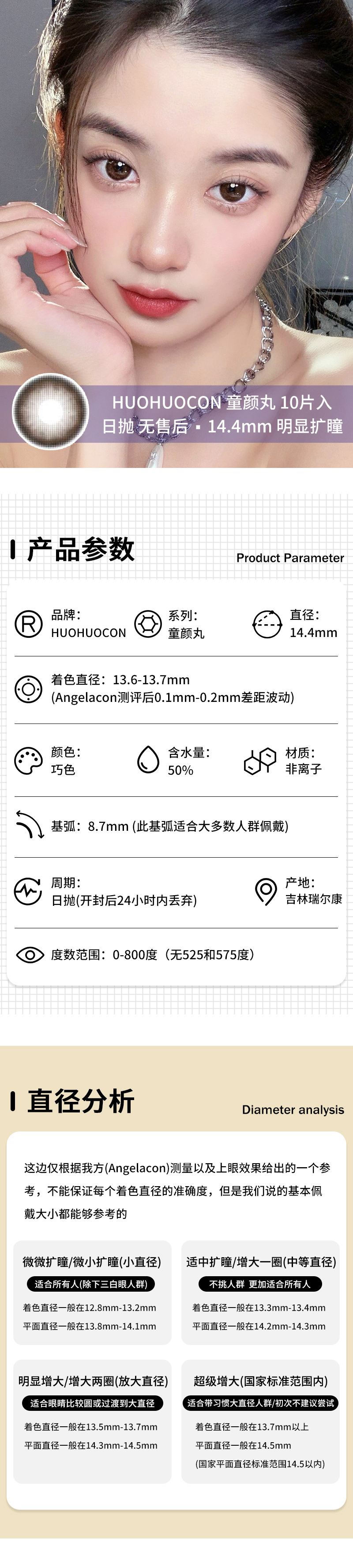 HUOHUOCON / 童颜丸 / 美瞳日抛 /10片入 / 无售后 / 14.4mm / 明显扩瞳纯色提神款