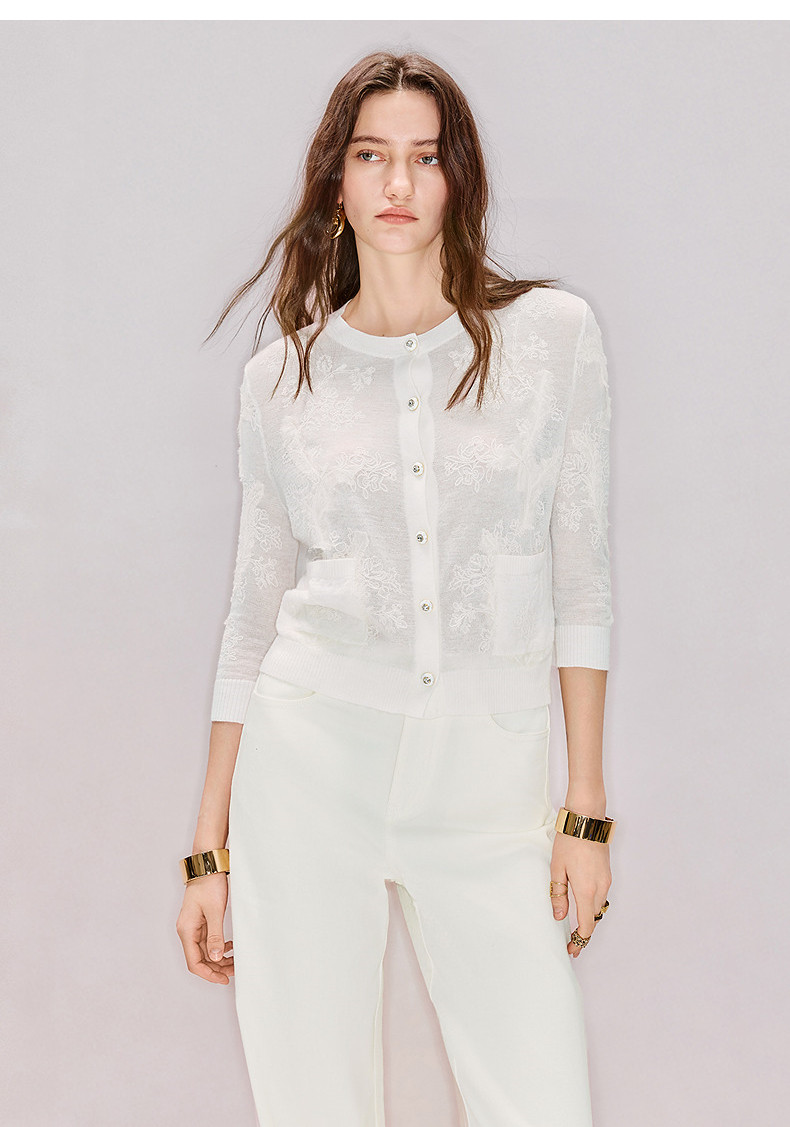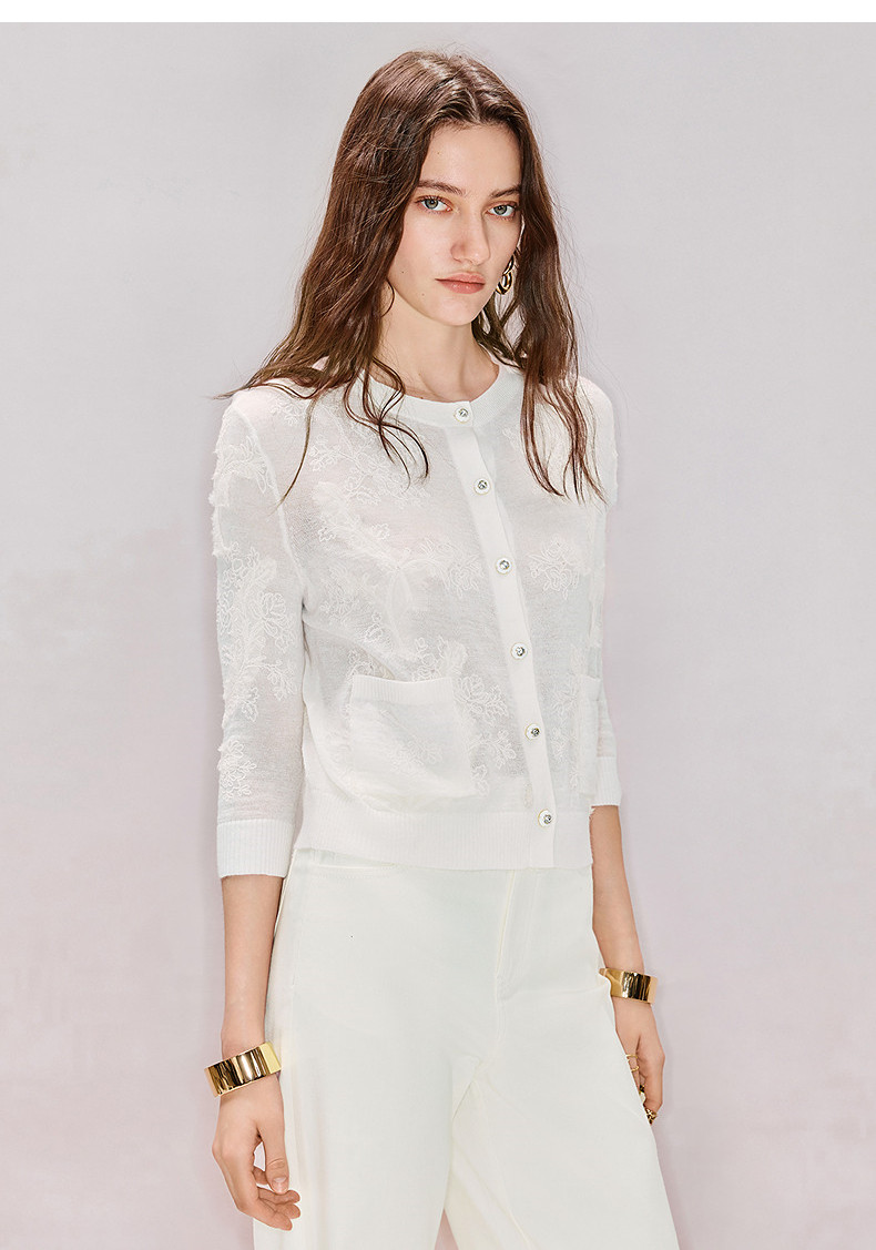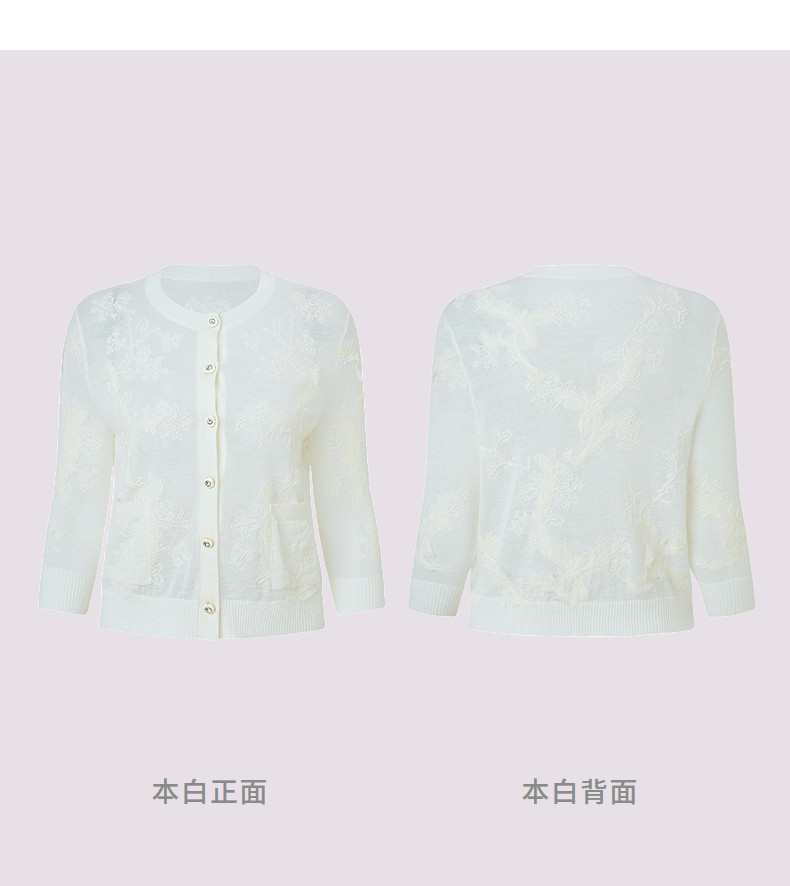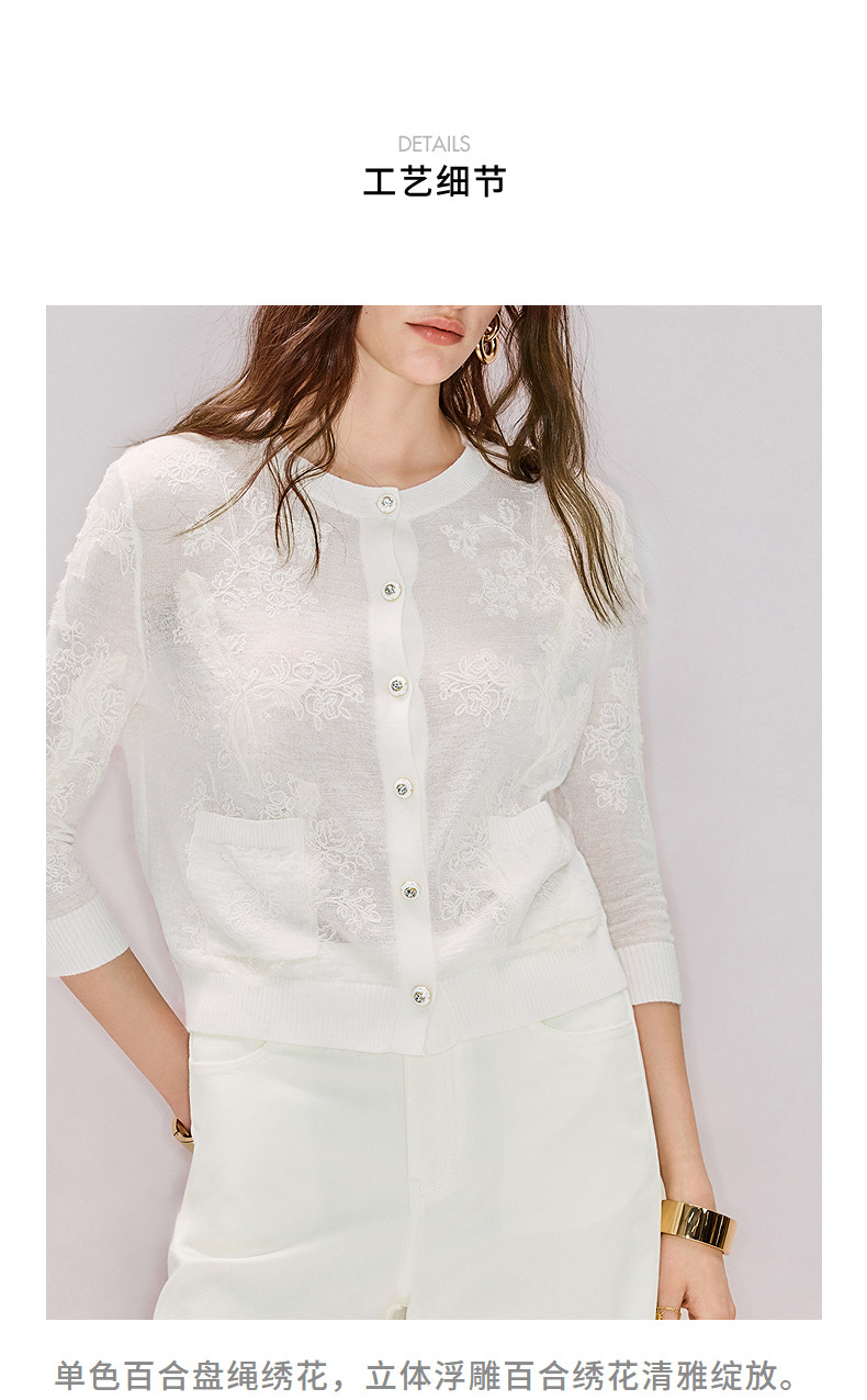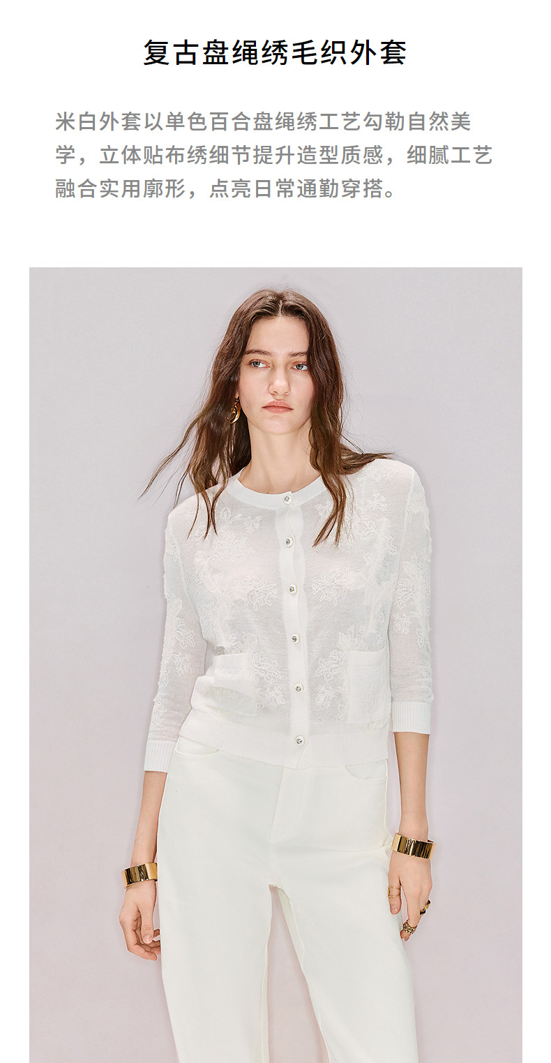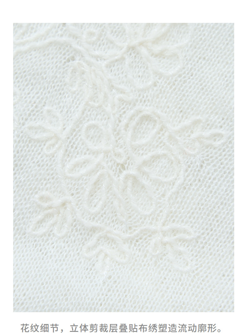 MAXRIENY白色半透轻薄针织开衫2026春季新款贴布绣针织衫毛衣上衣(货号:MF80JA009)