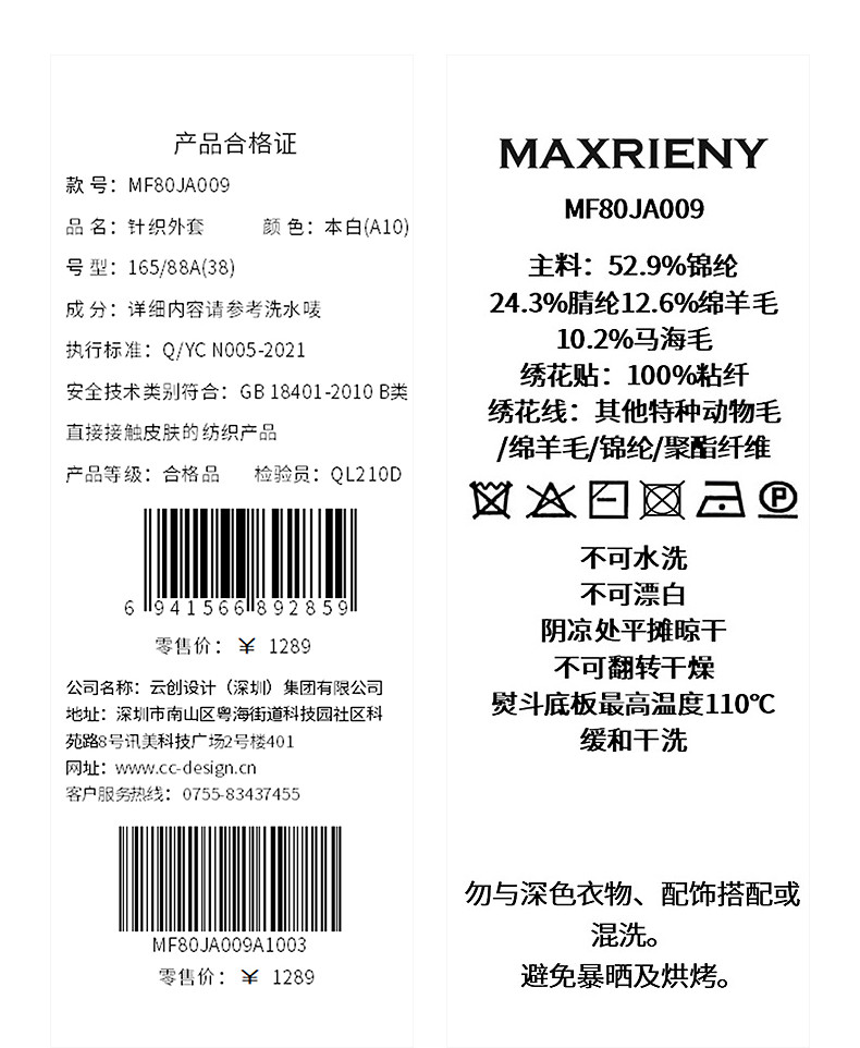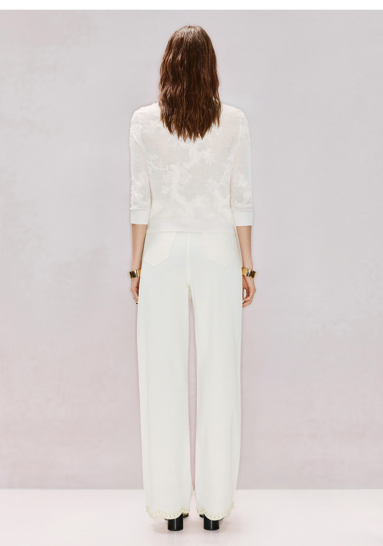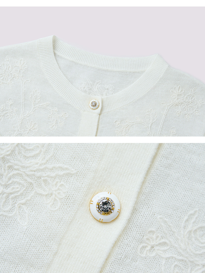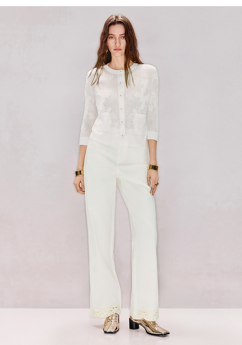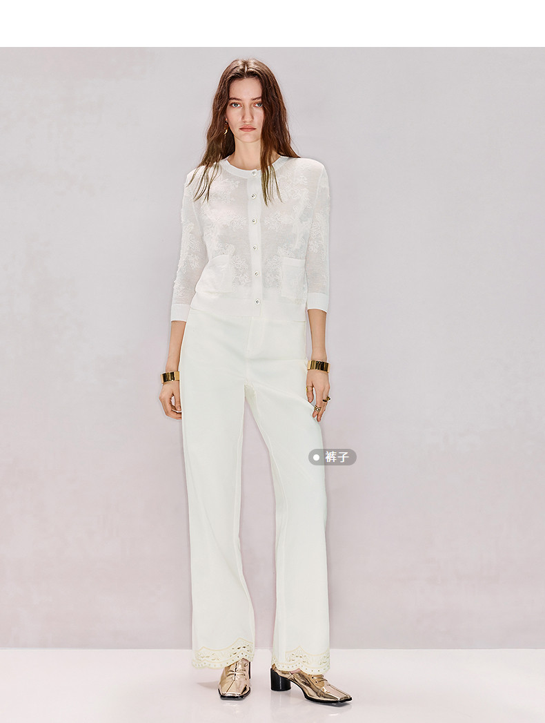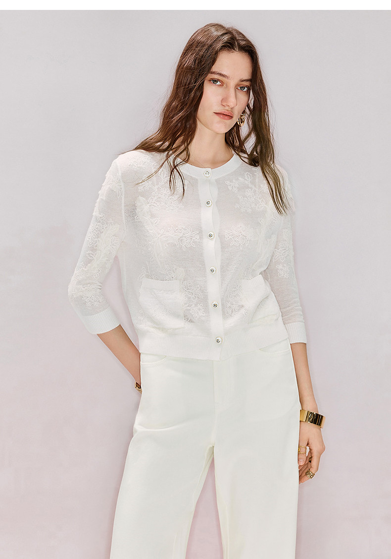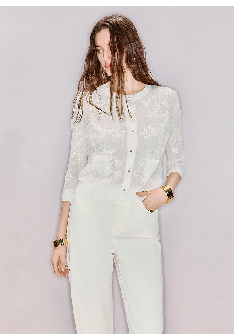 MAXRIENY白色半透轻薄针织开衫2026春季新款贴布绣针织衫毛衣上衣(货号:MF80JA009)