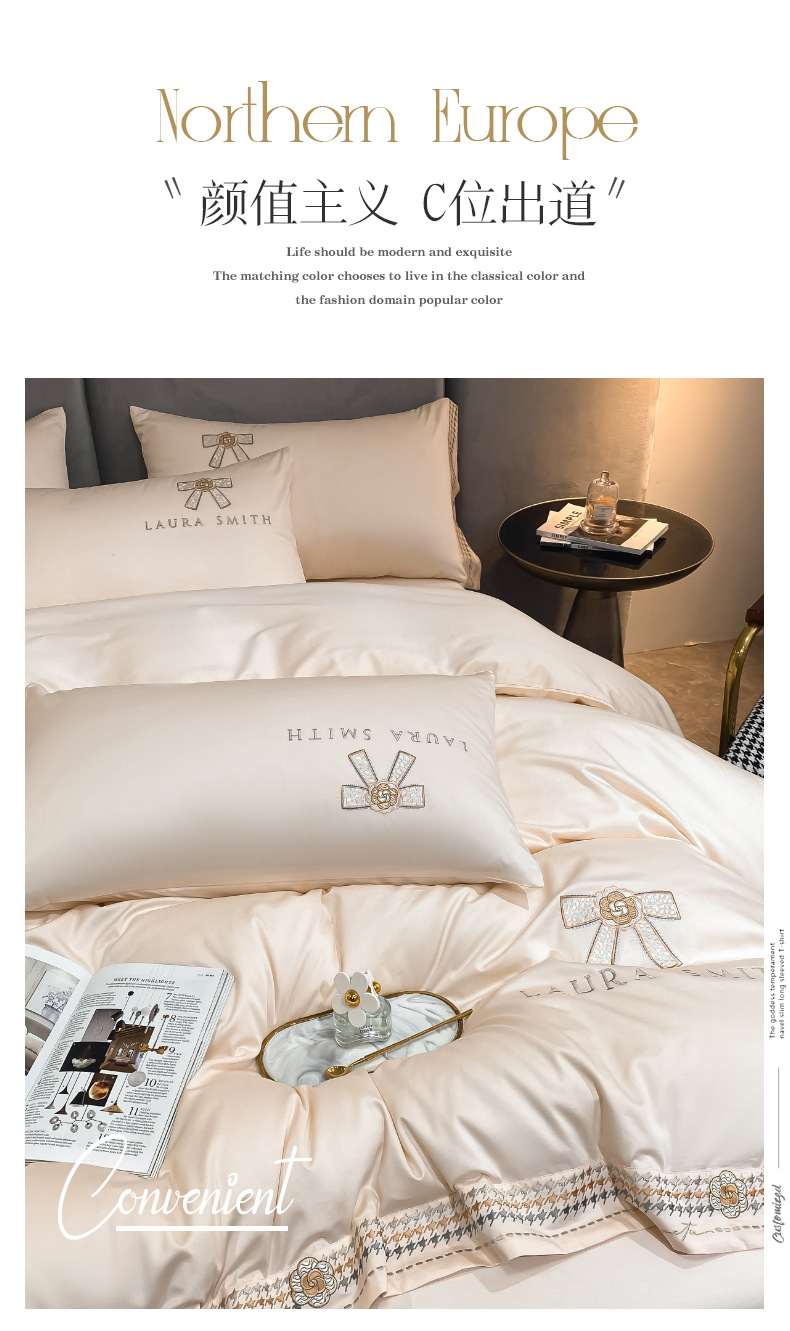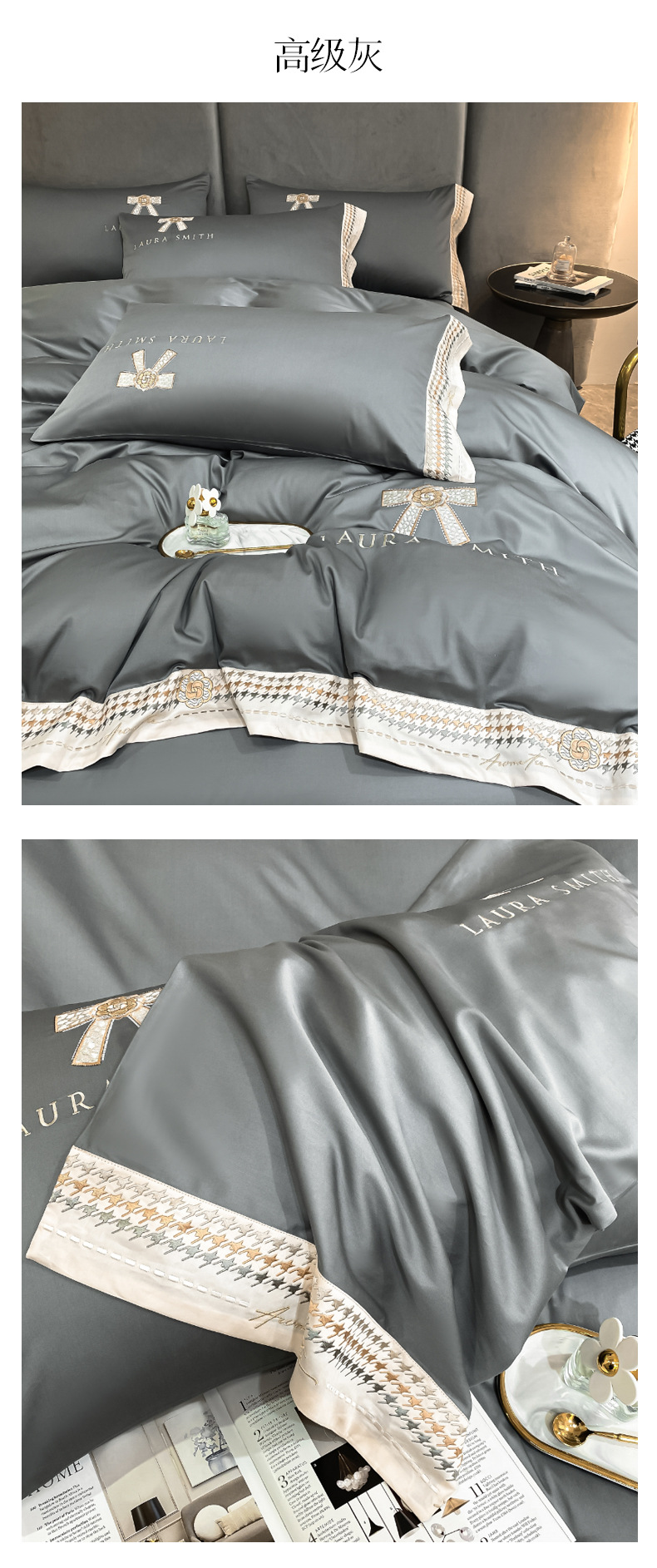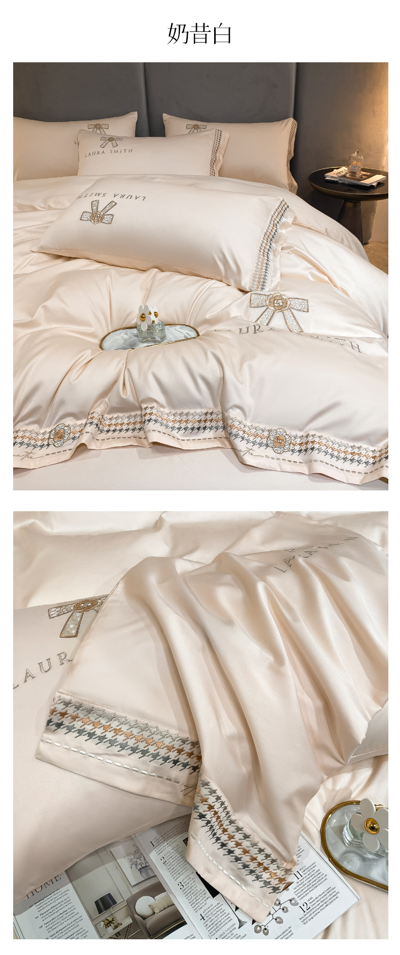 【颜值主义,C位出道】A类60支长绒棉床上四件套 全棉纯棉 轻奢绣花 裸睡被套床单床笠四件套-QQ