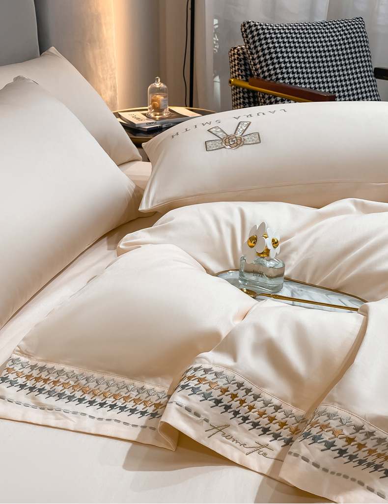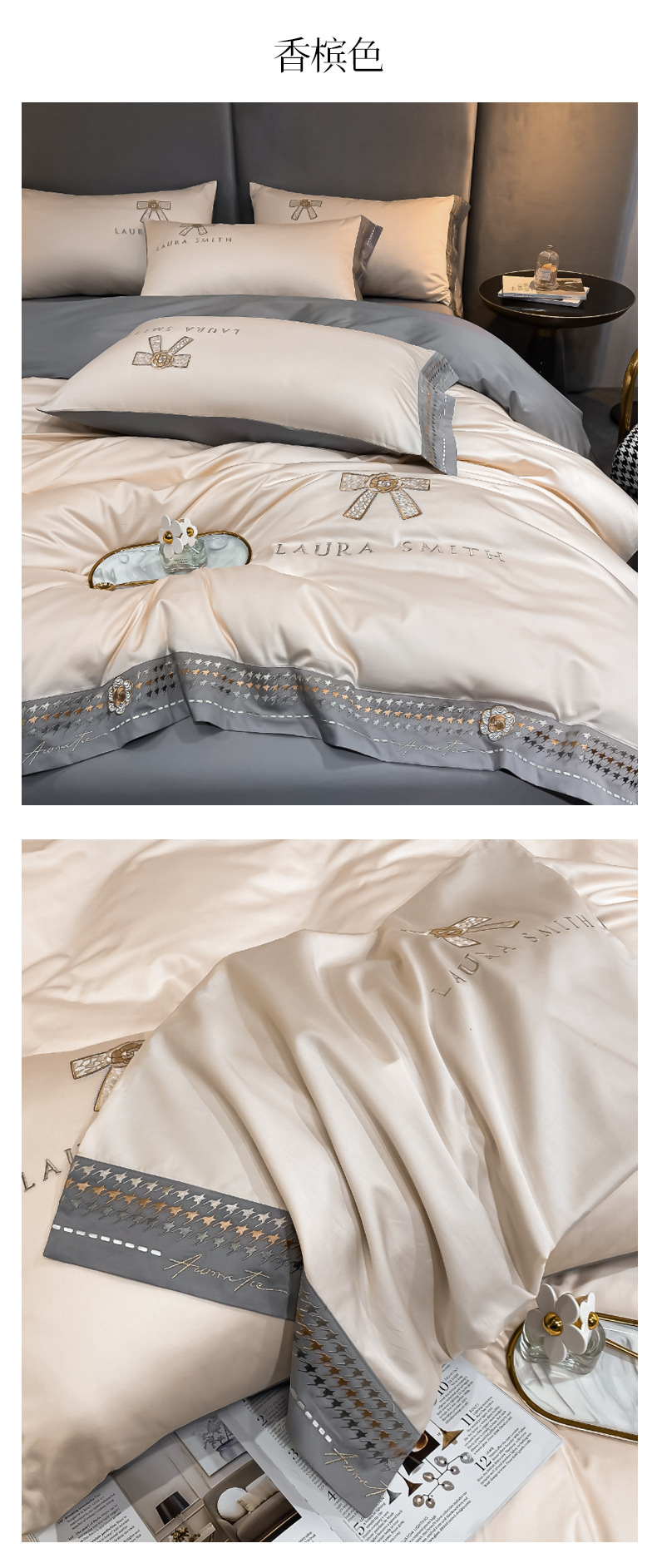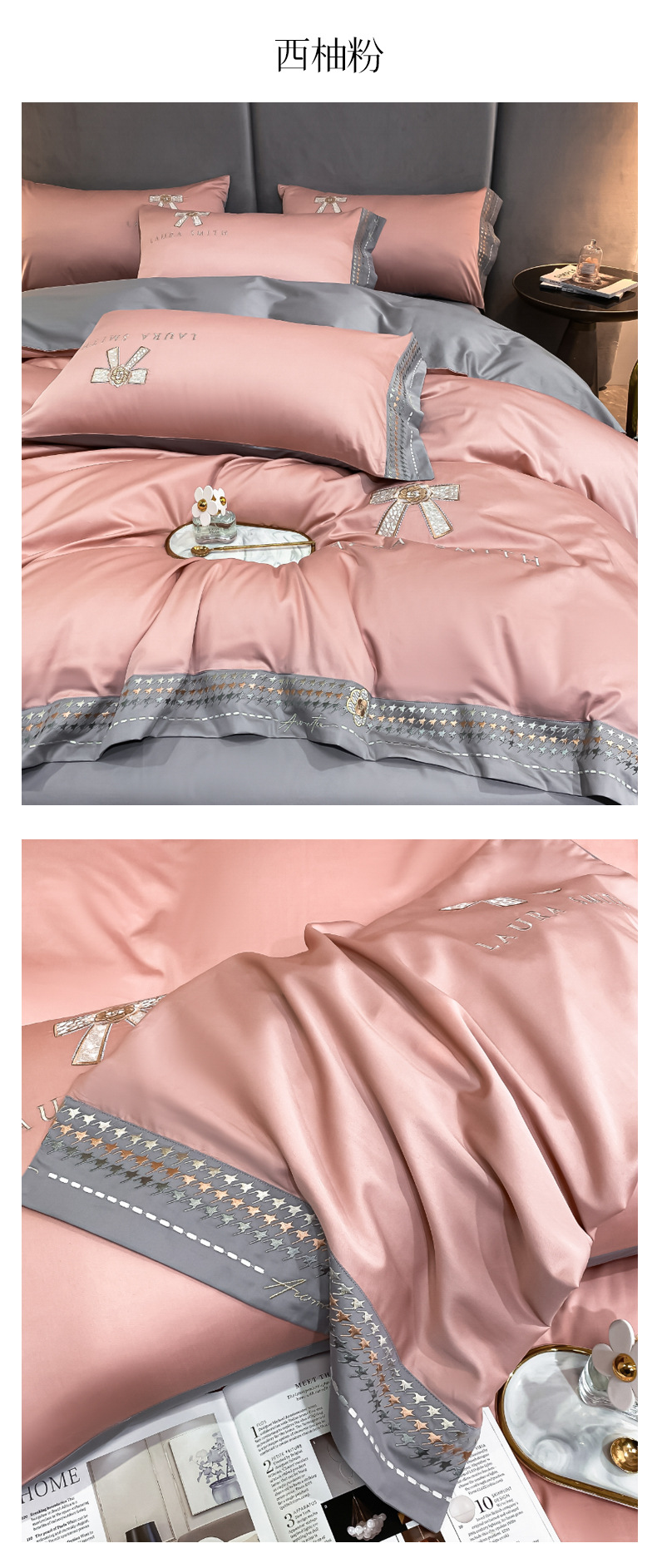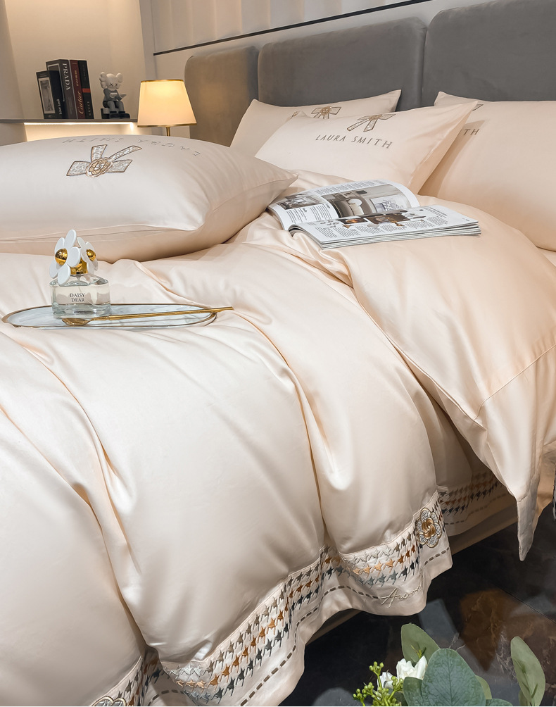 【颜值主义,C位出道】A类60支长绒棉床上四件套 全棉纯棉 轻奢绣花 裸睡被套床单床笠四件套-QQ