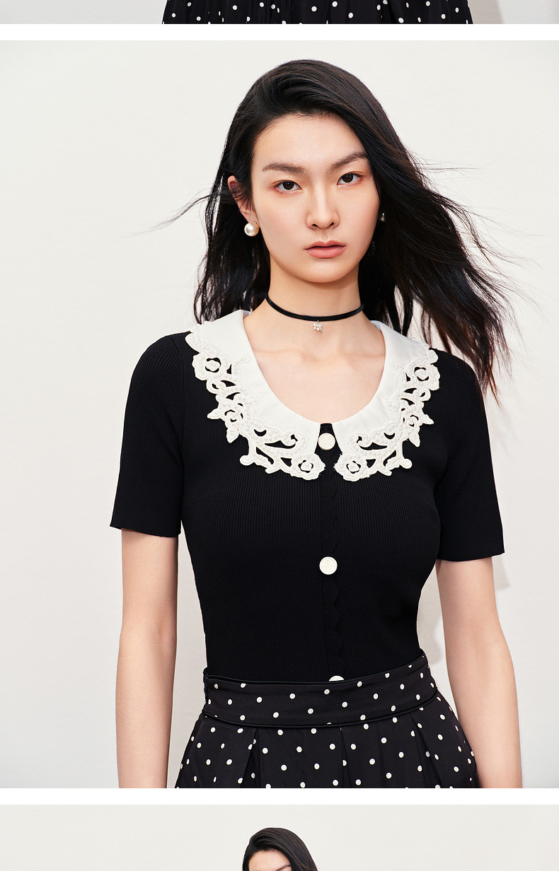 【派对聚会-商场同款】MAXRIENY华丽刺绣藤蔓花朵毛衫女修身显瘦(货号:MC85SW059)