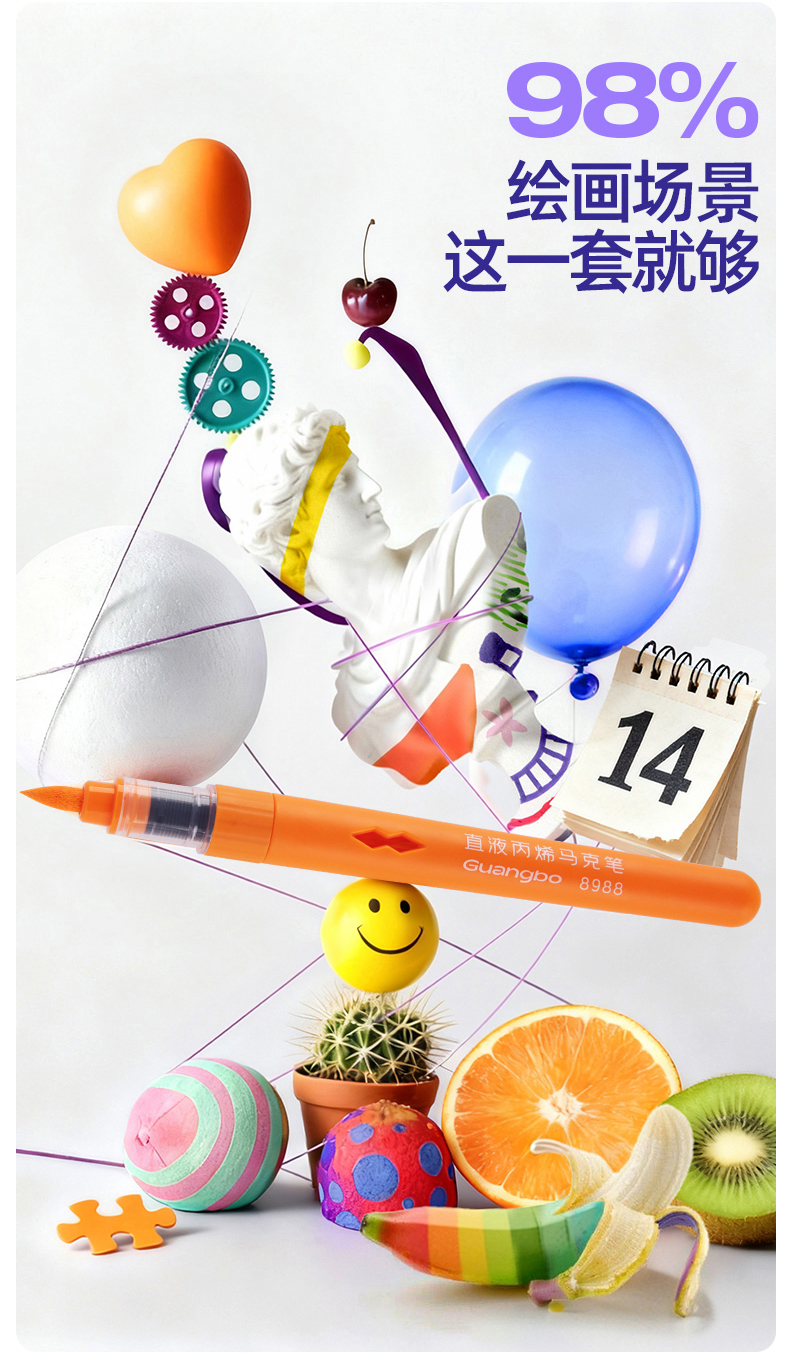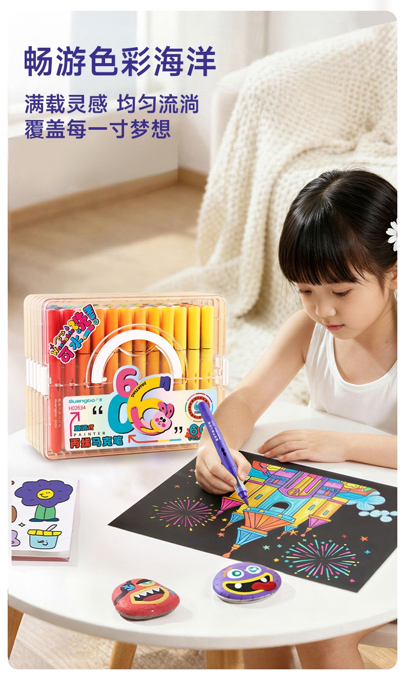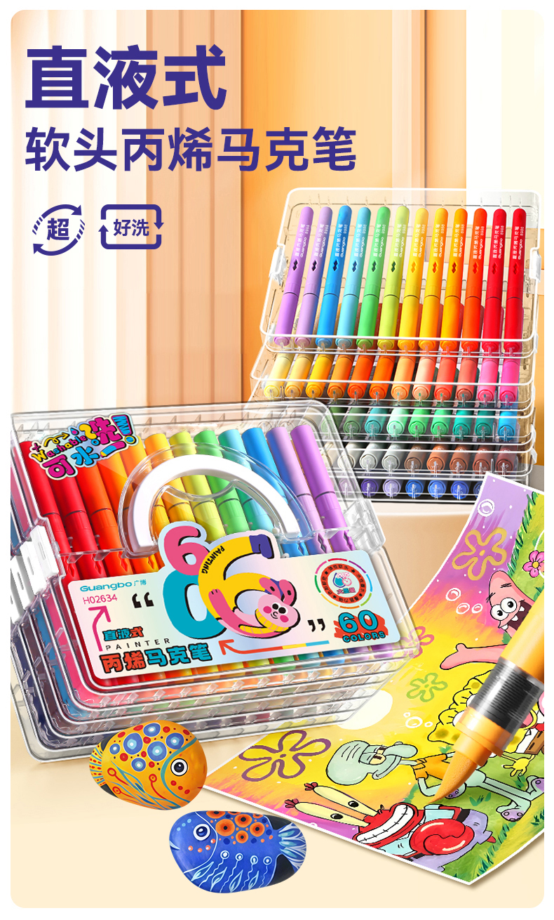 【广博】【叠盒丙烯马克笔】丙烯马克笔直液可水洗水彩笔软头叠色不透纸