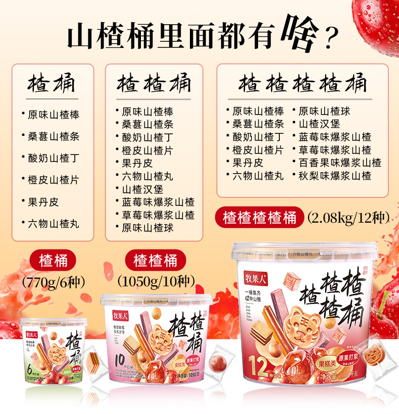 百媚笙牧果人山楂桶升级版山楂新口味网红爆款上新年货批发送礼套装年会ALW