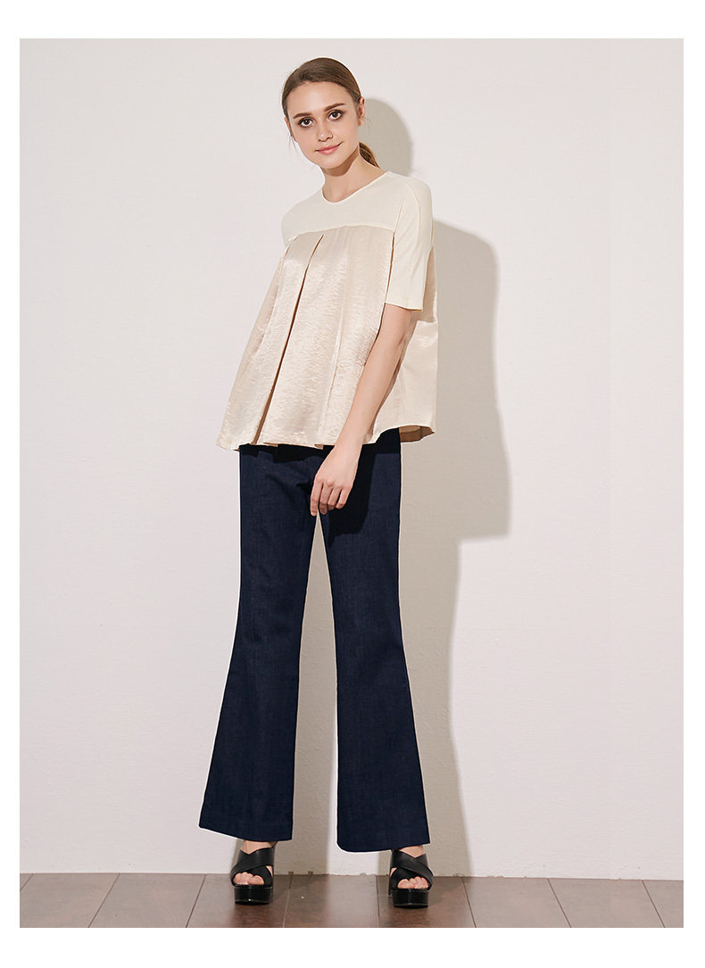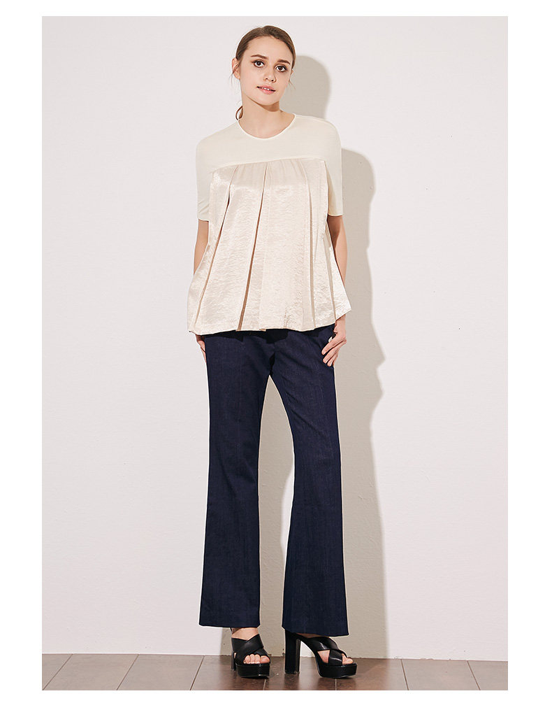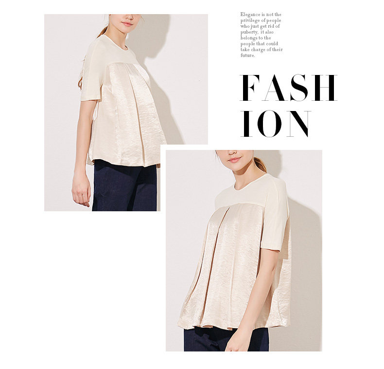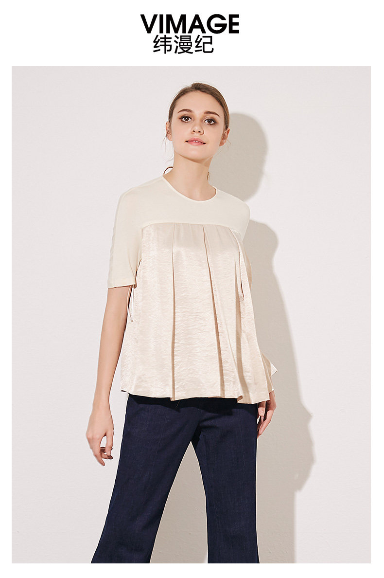 VIMAGE纬漫纪夏季女装宽松修身拼接百搭短袖上衣T恤女夏V902501