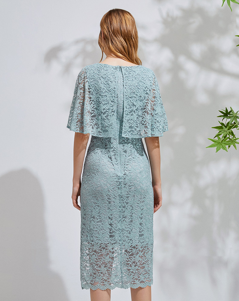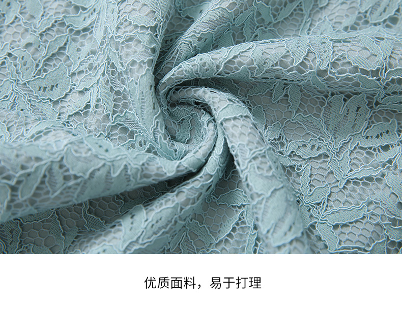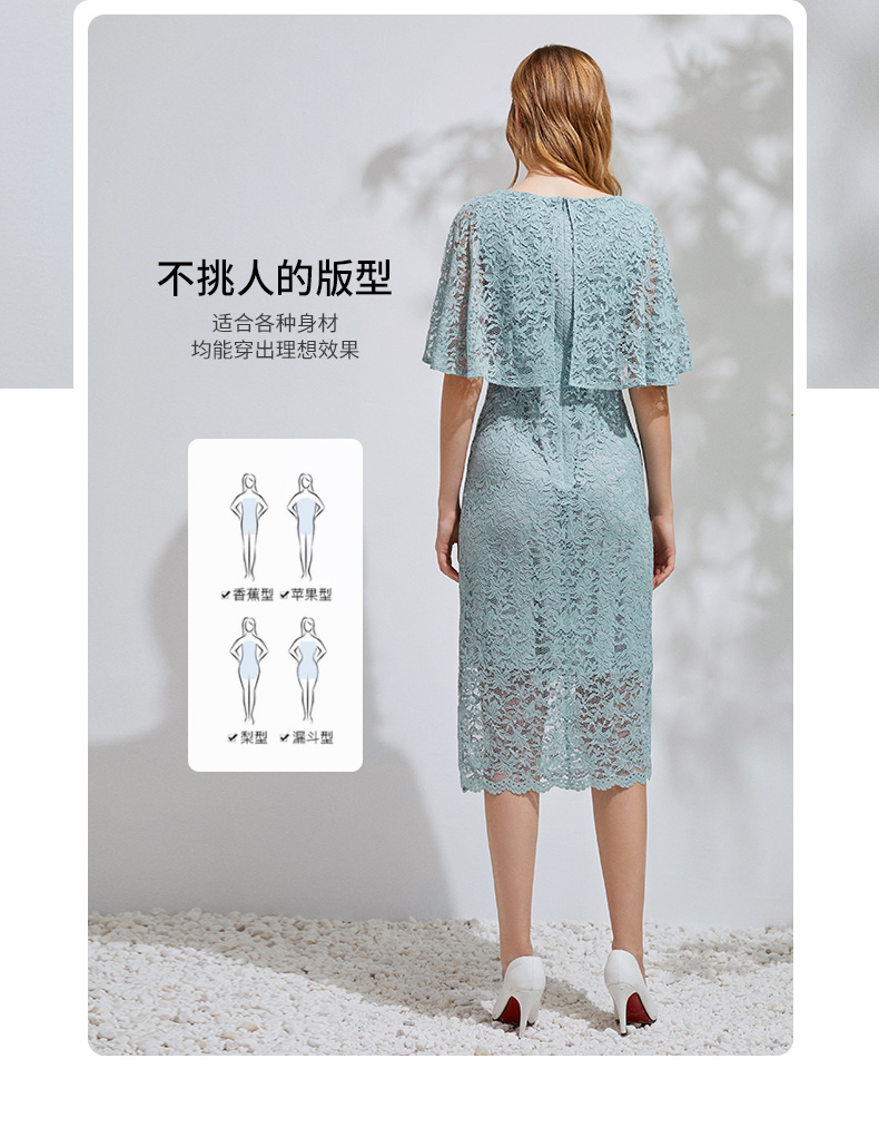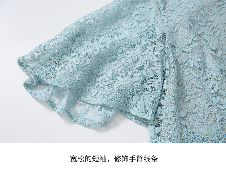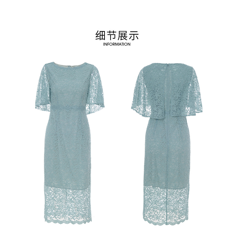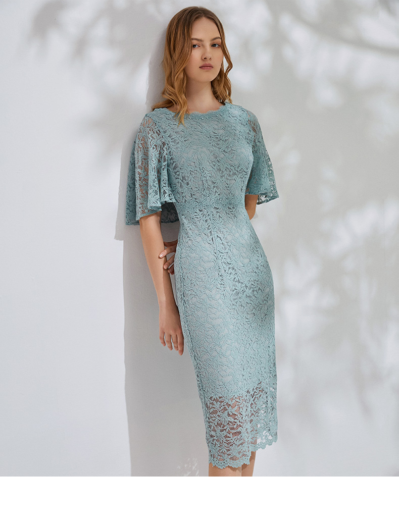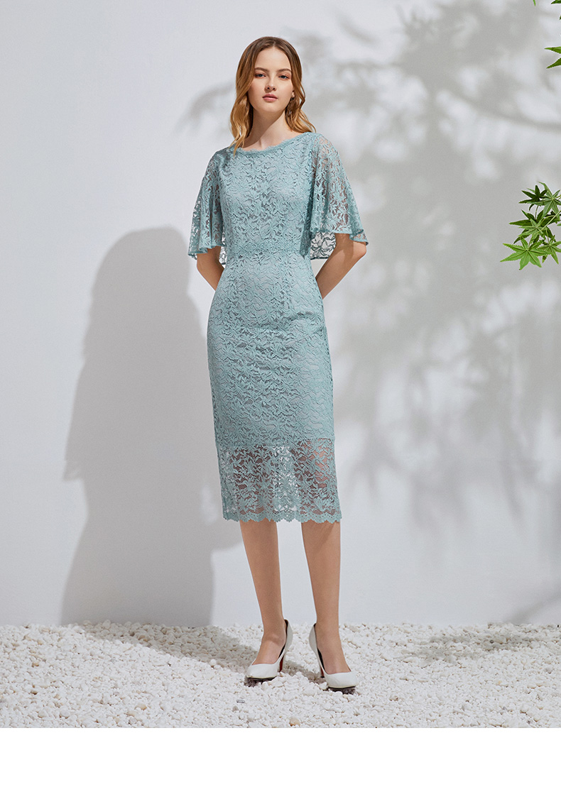 EITIE爱特爱新款优雅气质镂空蕾丝收腰A字喇叭袖连衣裙女A2007411