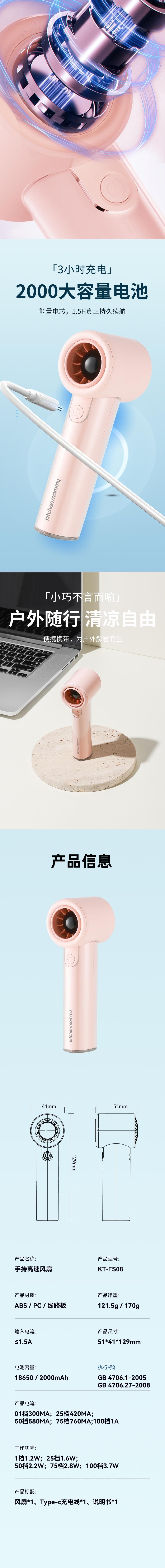 厨创妈咪 高速手持风扇2000mAh KT-FS08