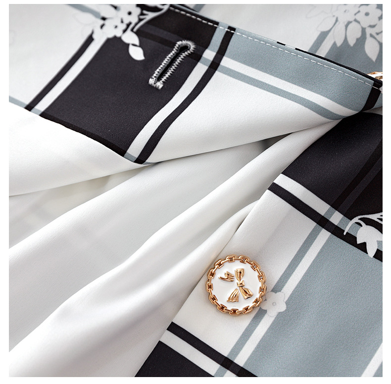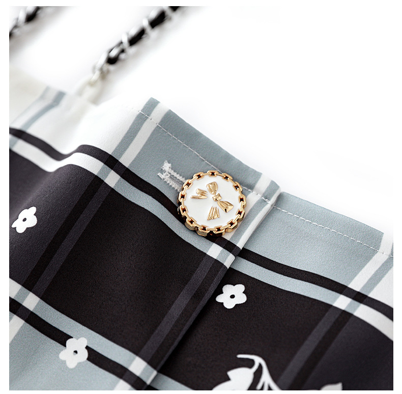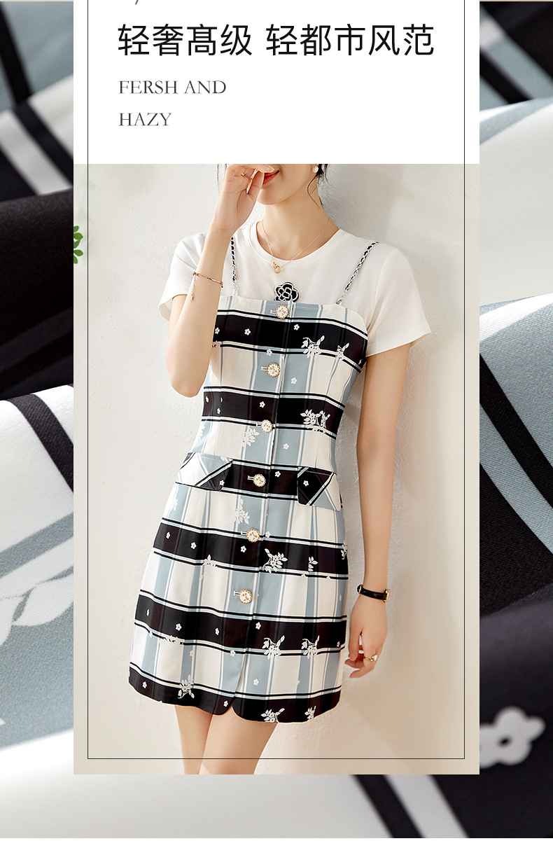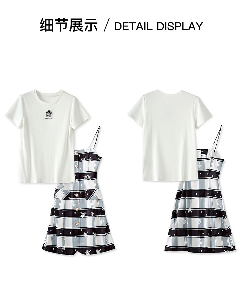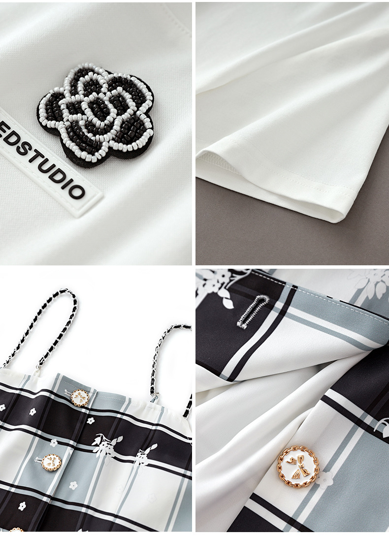 小香风山茶花,钉珠短袖+撞色格纹金属单排扣吊带裙两件套WLZD-2306504