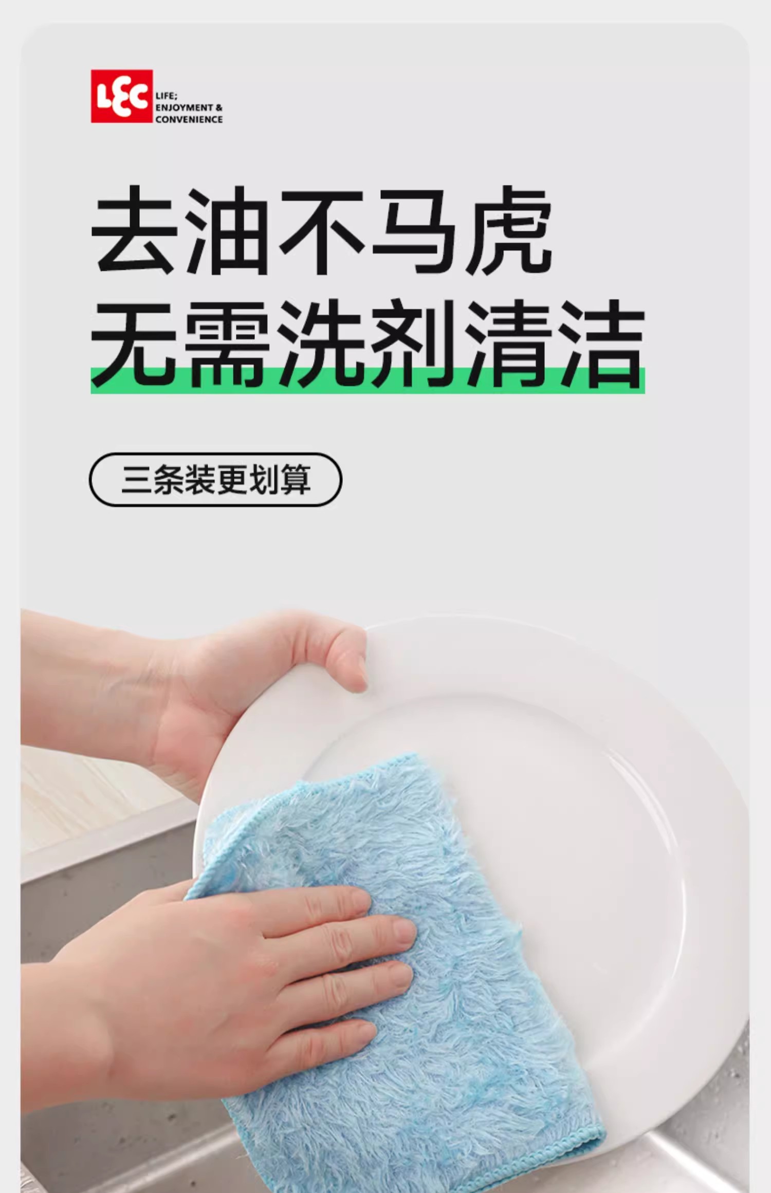 LEC激落君去油污不沾油抹布特惠装(3条)
