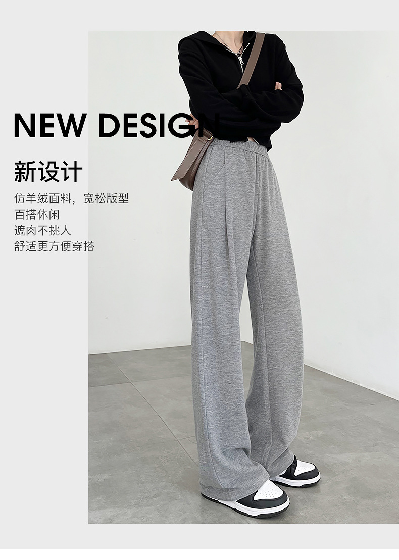 【2024秋冬新款仿羊绒阔腿裤】垂感高腰直筒针织裤子高腰垂感遛弯裤