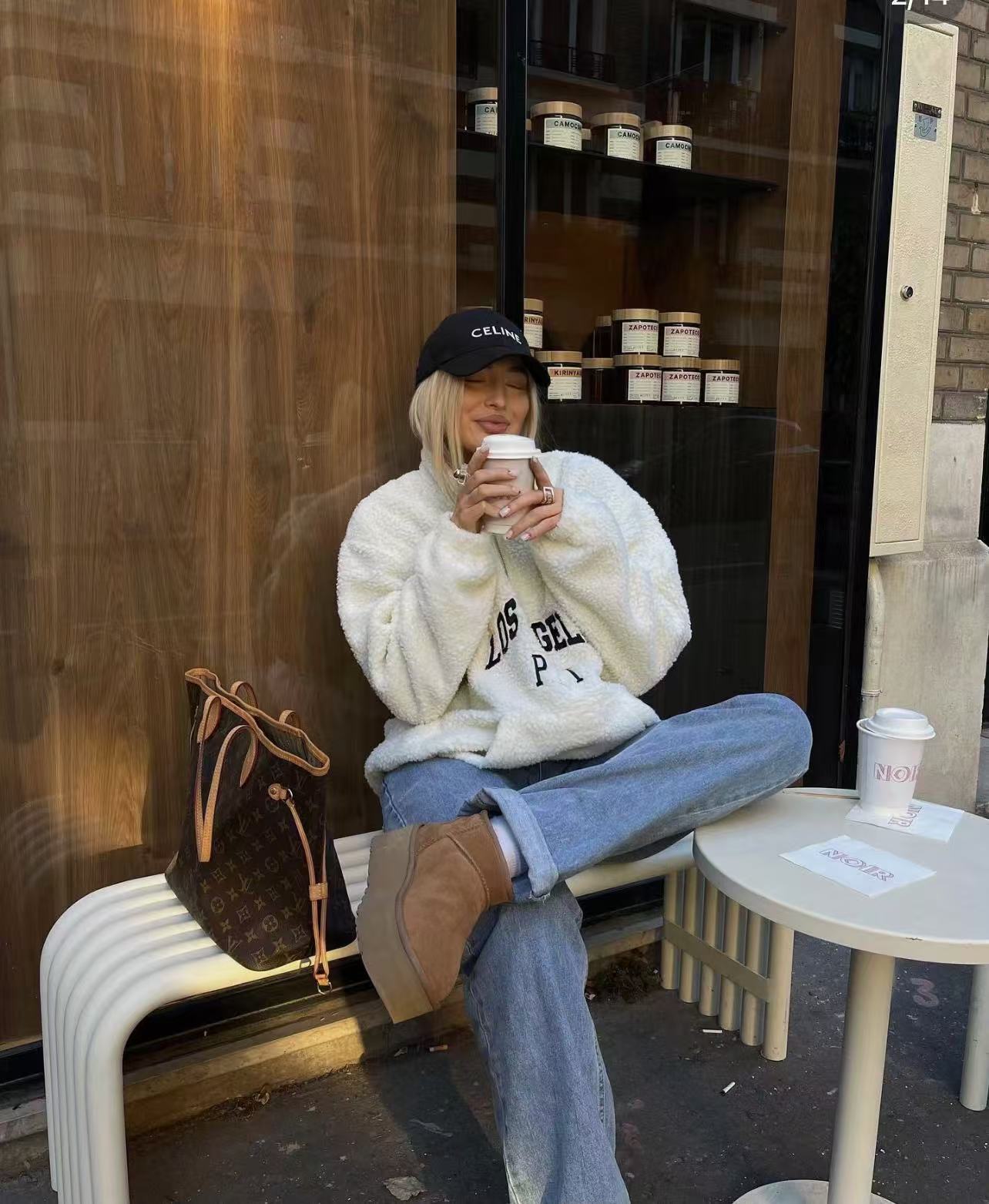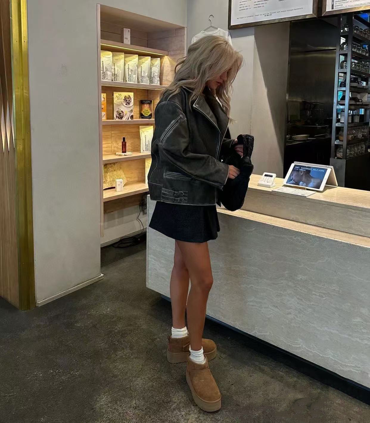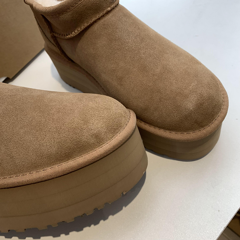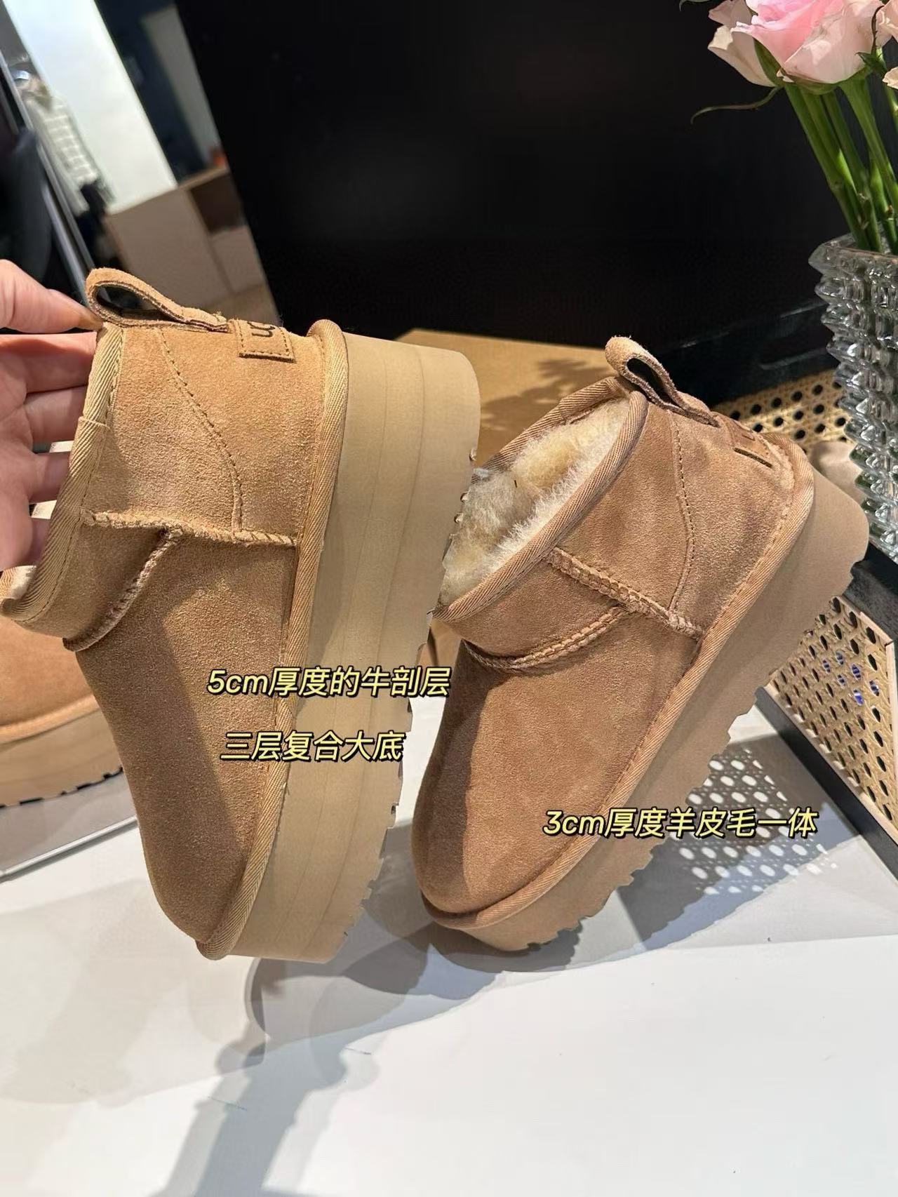 五公分的是牛反绒➕编织羊毛!真羊毛!!和官方没区别,都是18mm以上的长度,非常厚非常密实,这种复合的鞋面市面上有做的但是品质完全不是一回事儿 甚至大底也是天差地别 咱家的雪地靴闭眼来