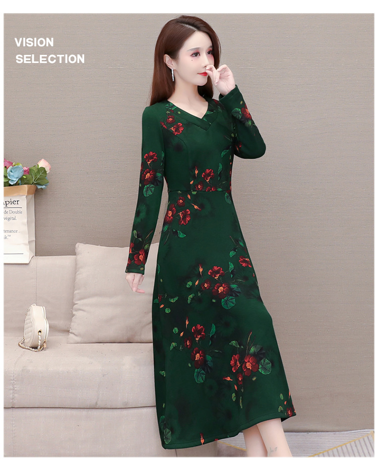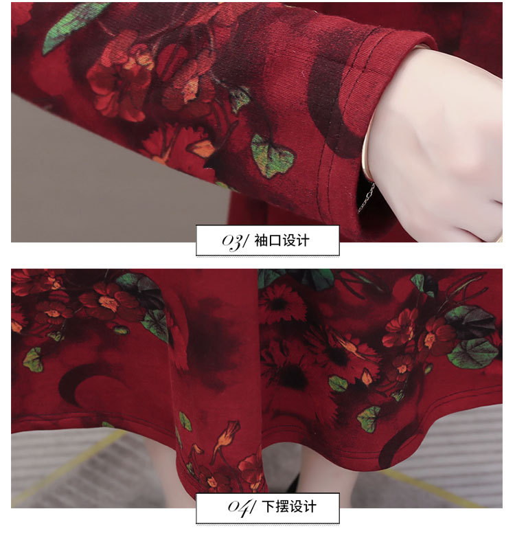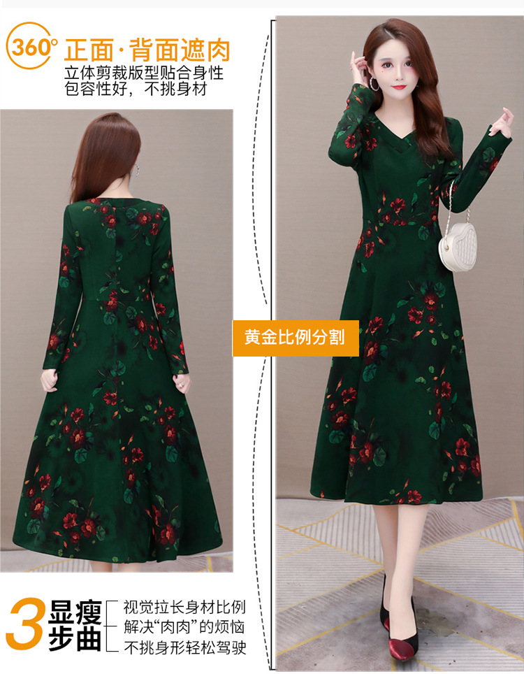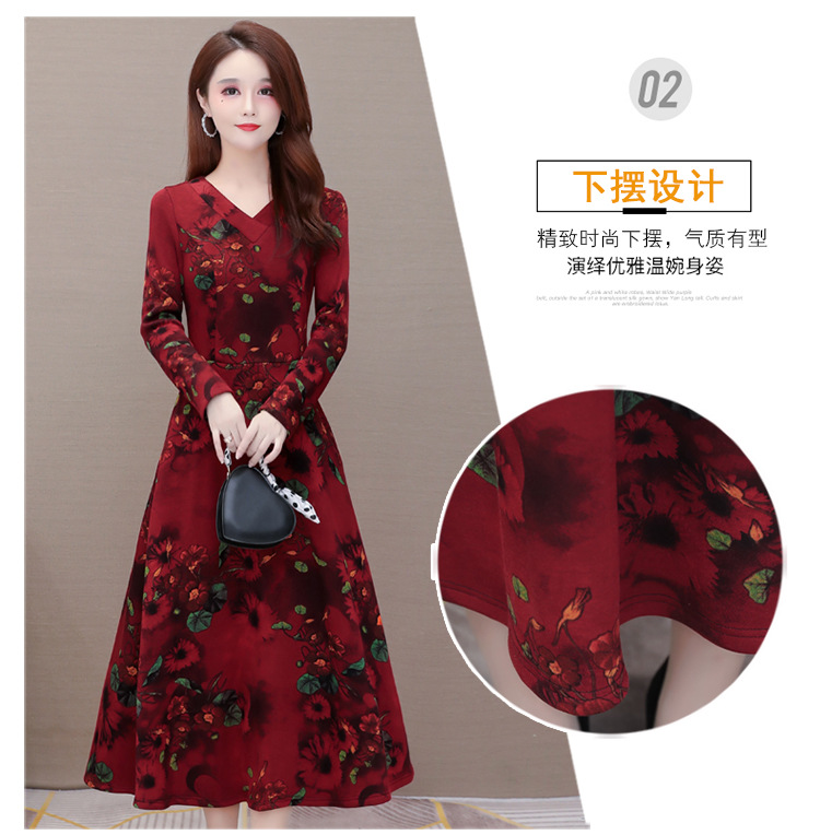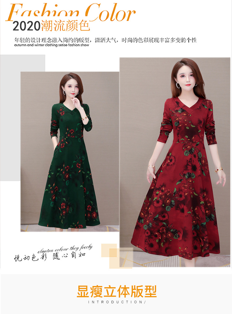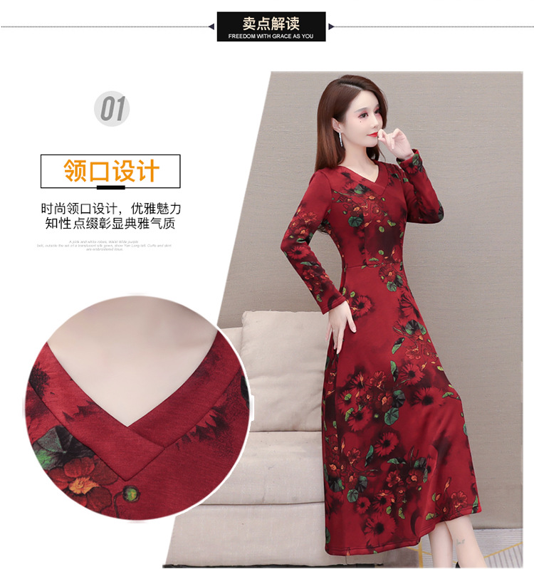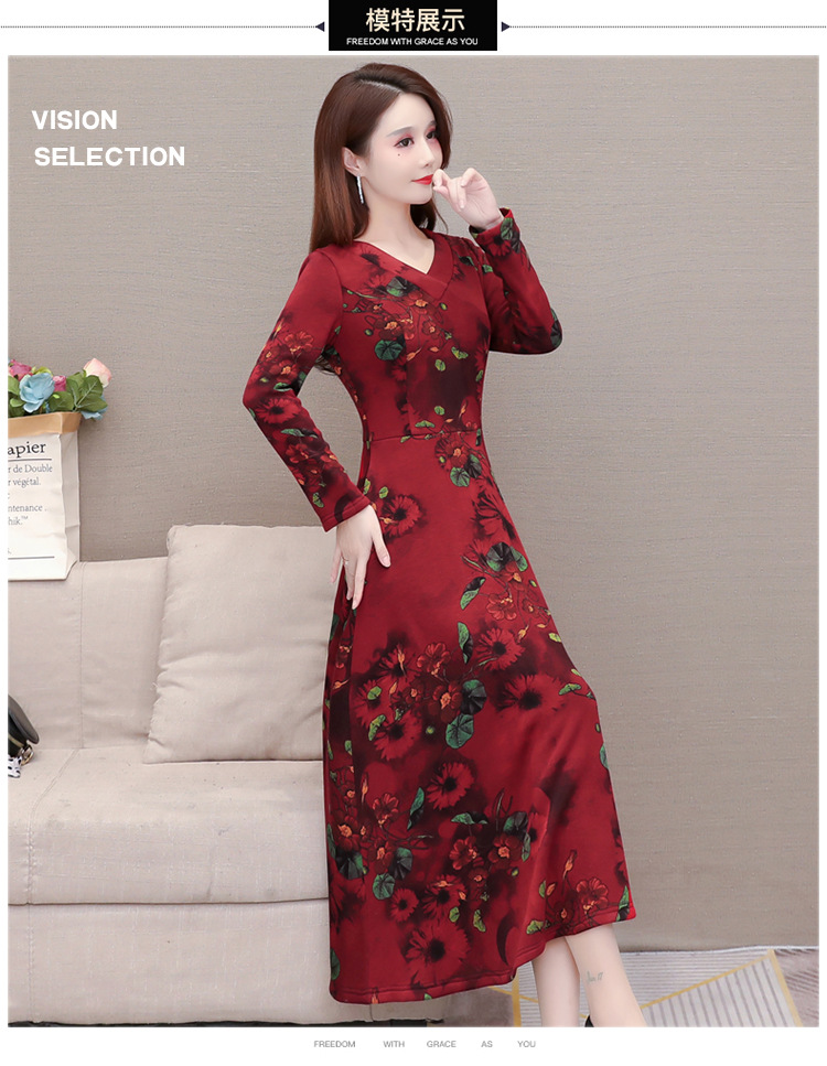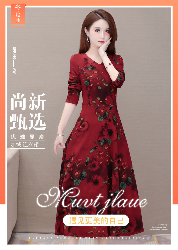 QYM-FL-20A699-Y新款时尚优雅气质修身加绒加厚印花连衣裙