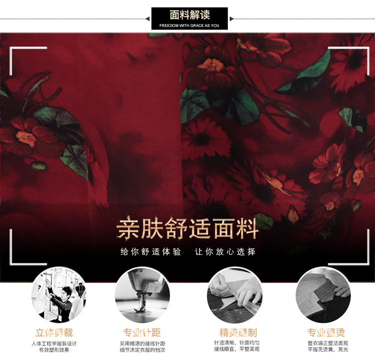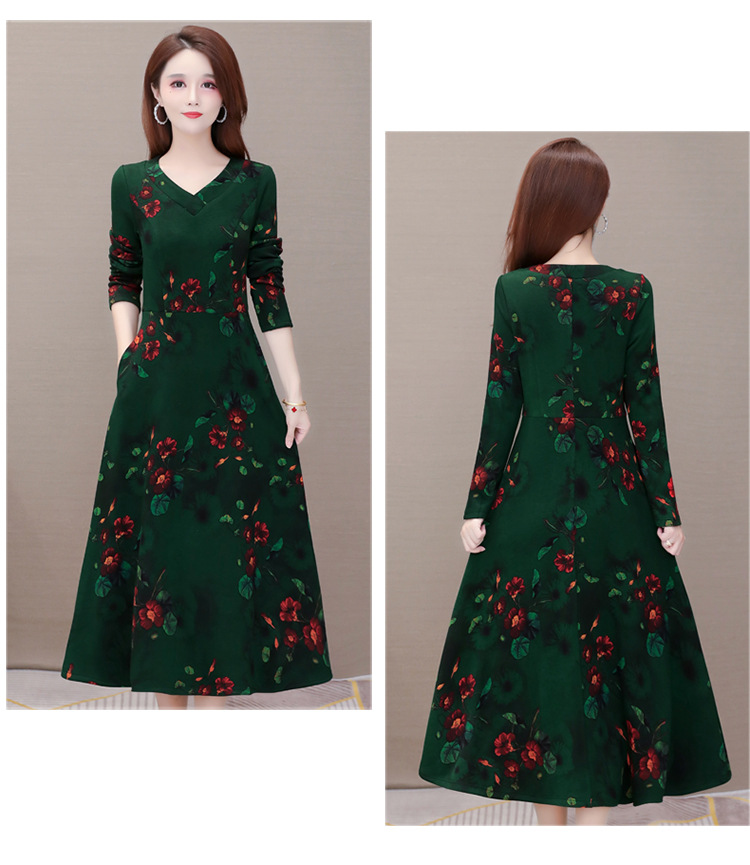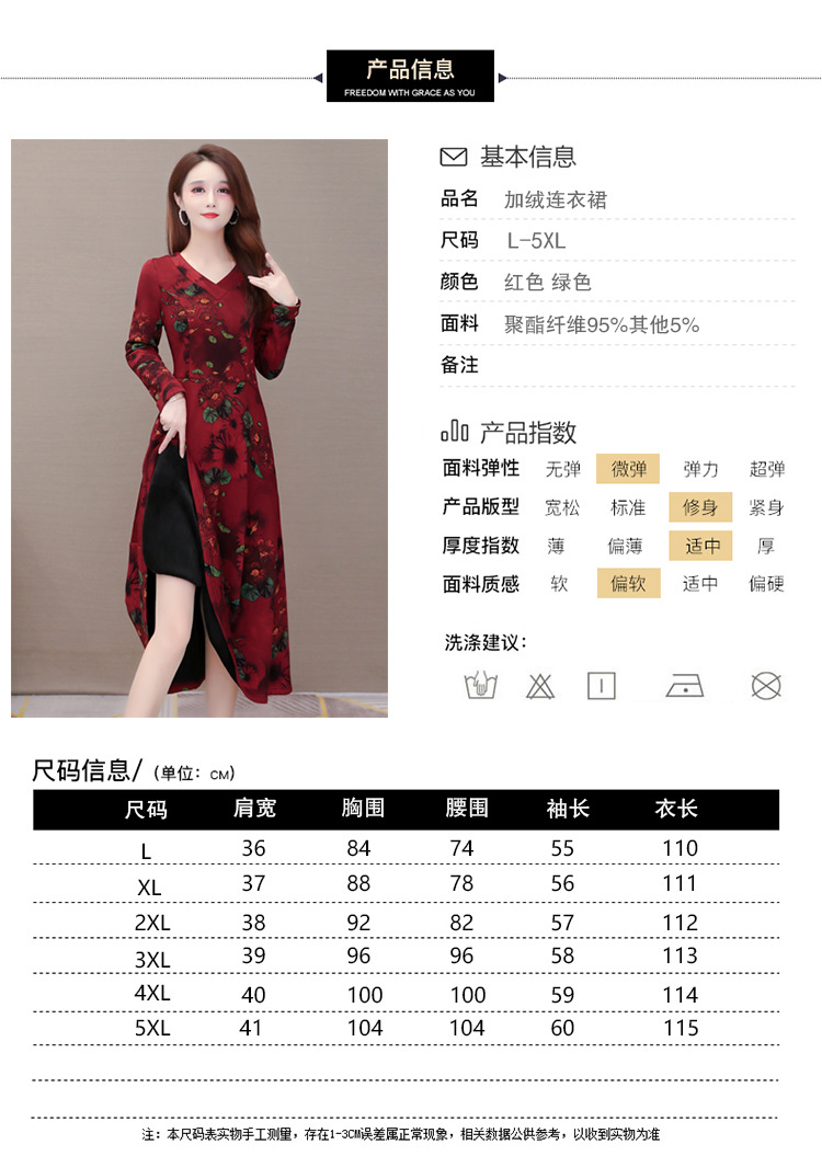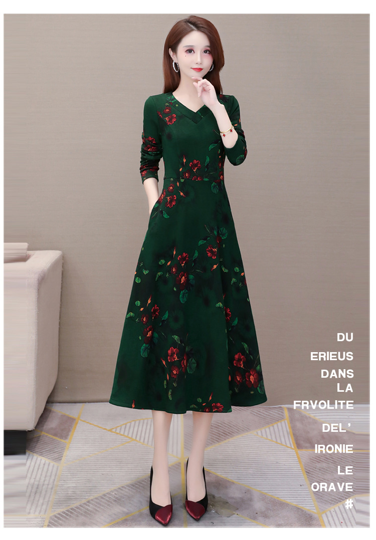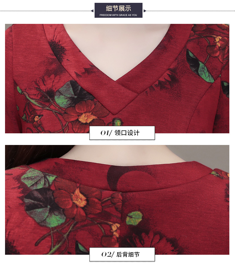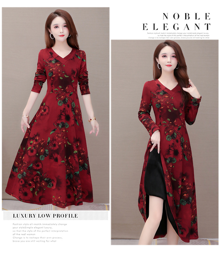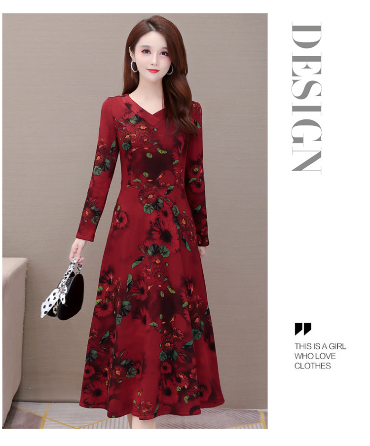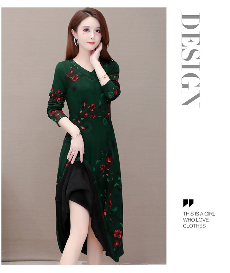 QYM-FL-20A699-Y新款时尚优雅气质修身加绒加厚印花连衣裙