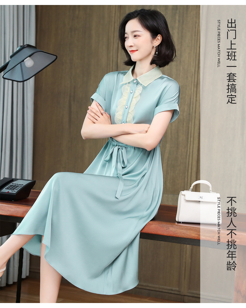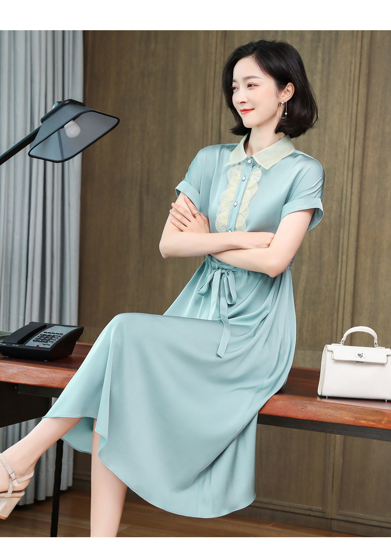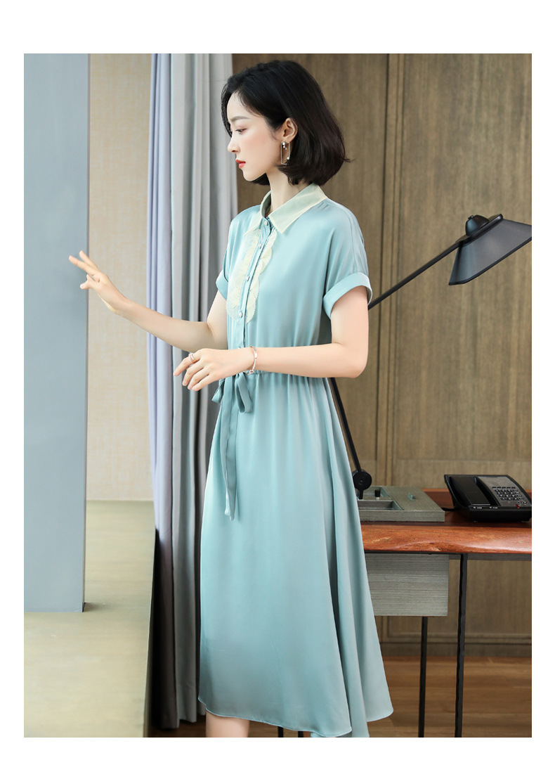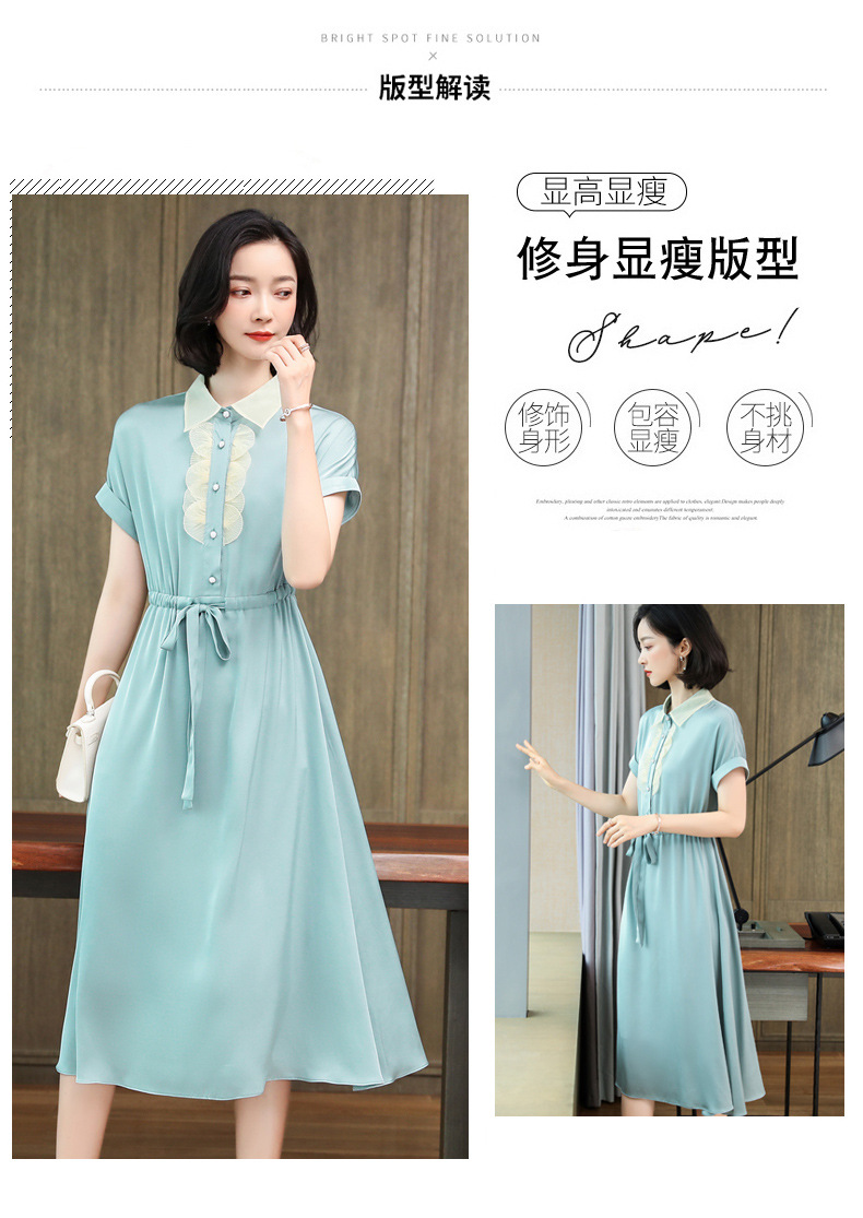 上海旗袍厂ASE-9111花边立领气质真丝连衣裙