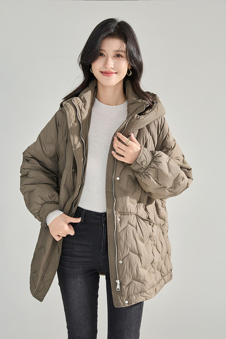 【高货sh】全新升级【铂金会员882/天猫1189/差价307】(21238) 洛诗琳秋冬新款白鸭绒直充韩版宽松连帽中长款羽绒服女