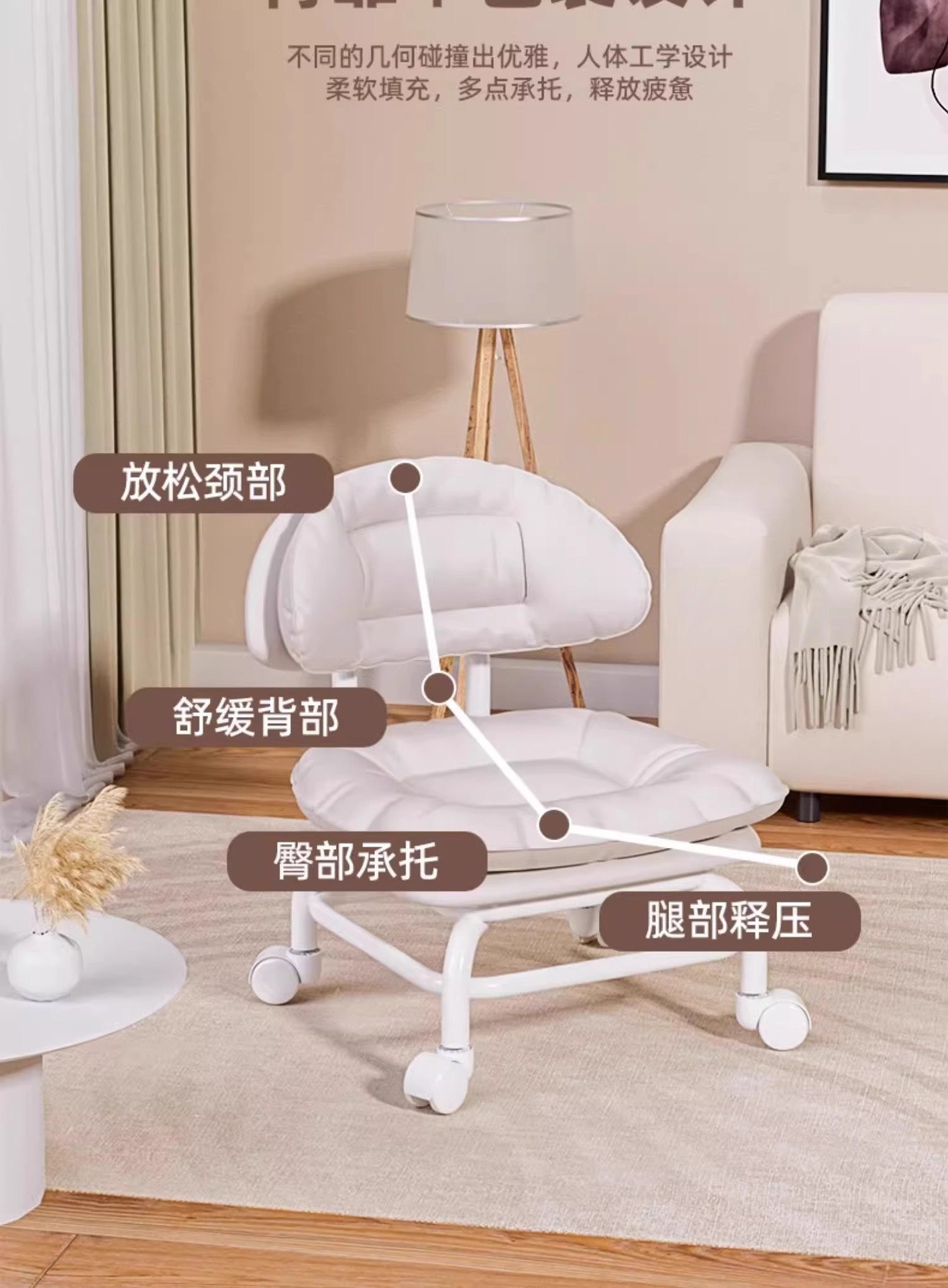 【久坐不累!360° 万向轮】万向轮小凳子家用滑轮矮凳网红多功能美缝凳子换鞋凳小椅子学步凳。xb
