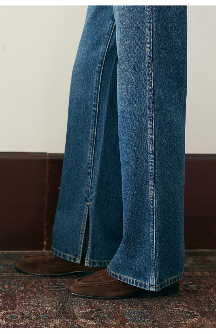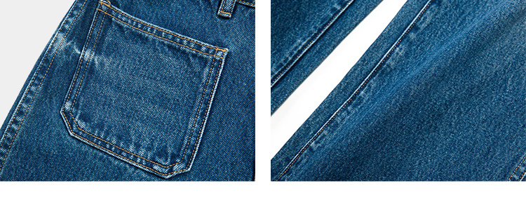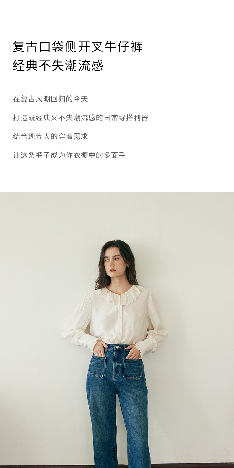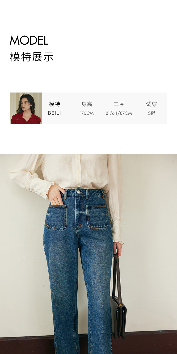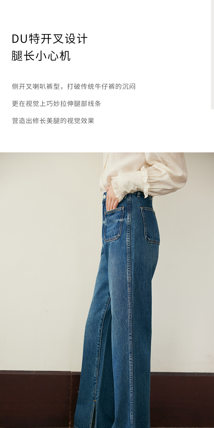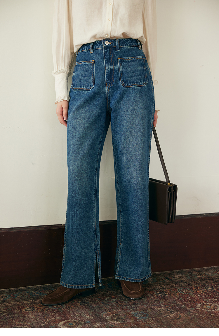 (小眠专属)HeyDress复古双口袋牛仔裤女秋冬宽松高腰阔腿微喇裤深蓝色裤子