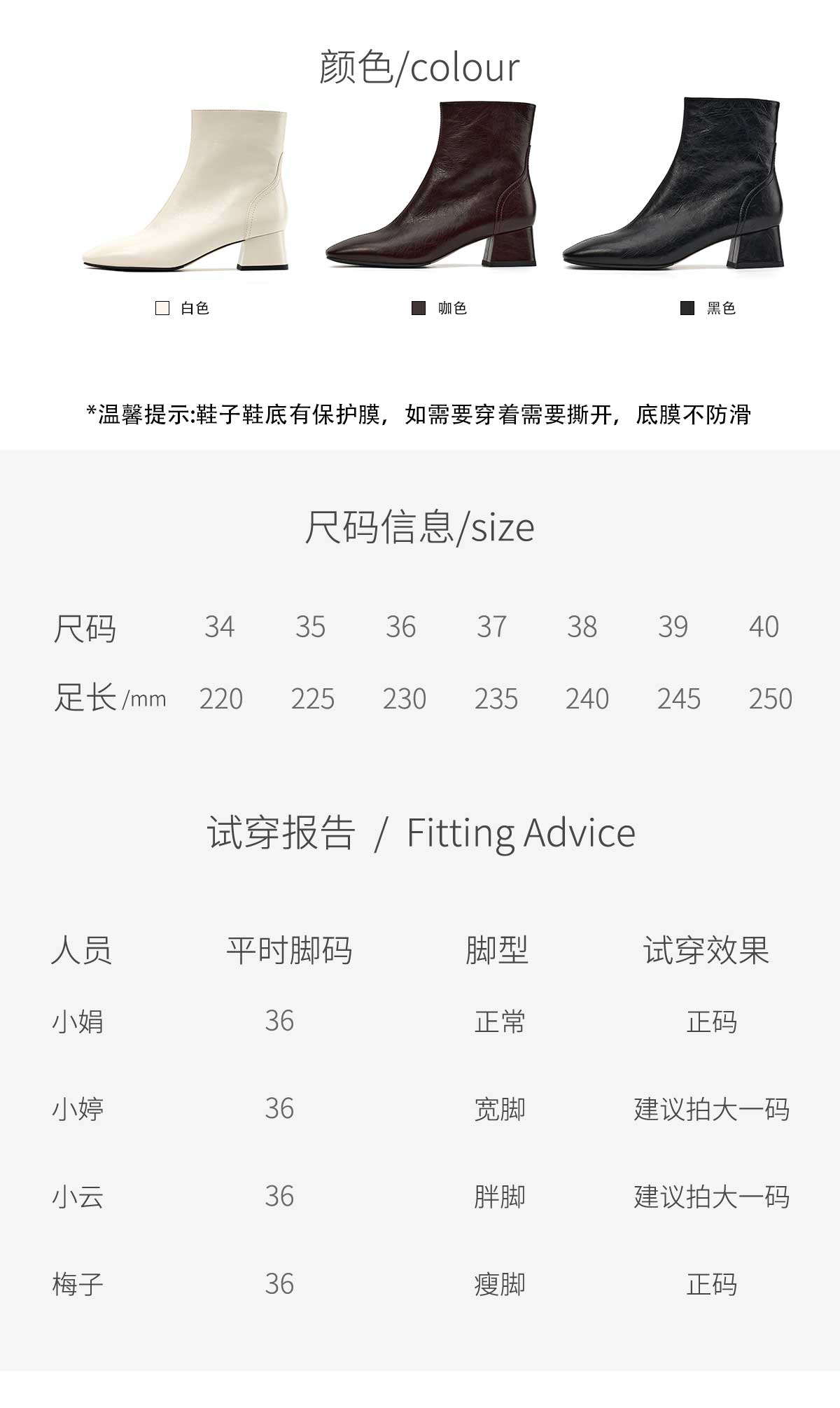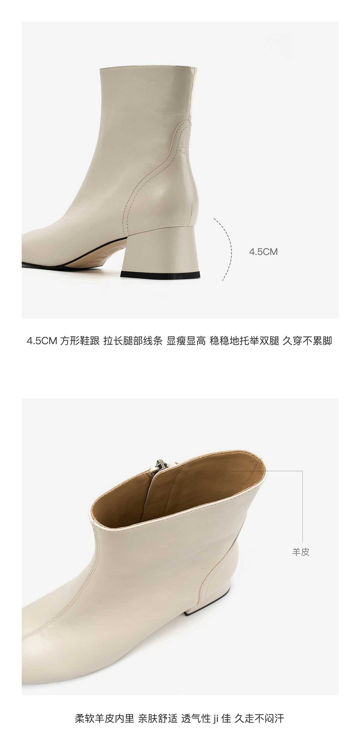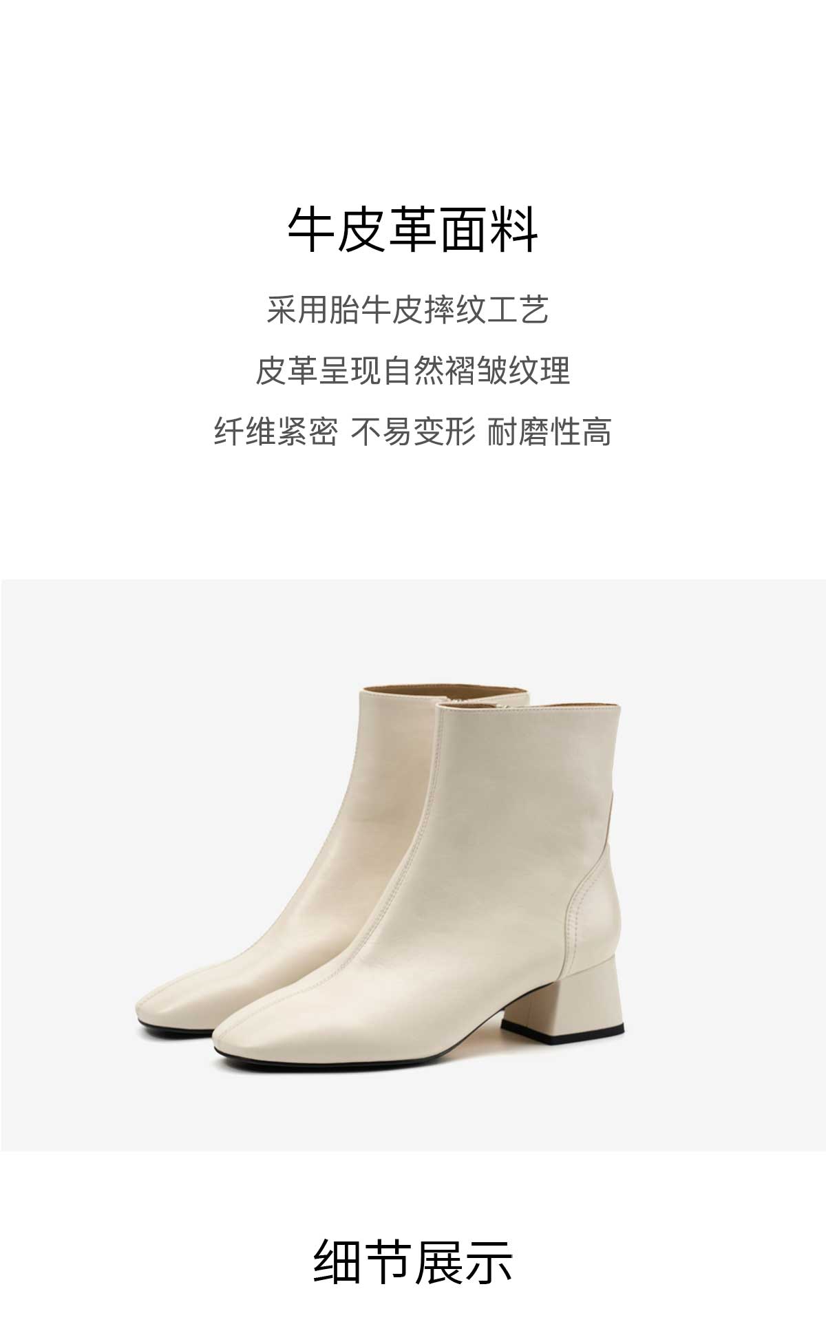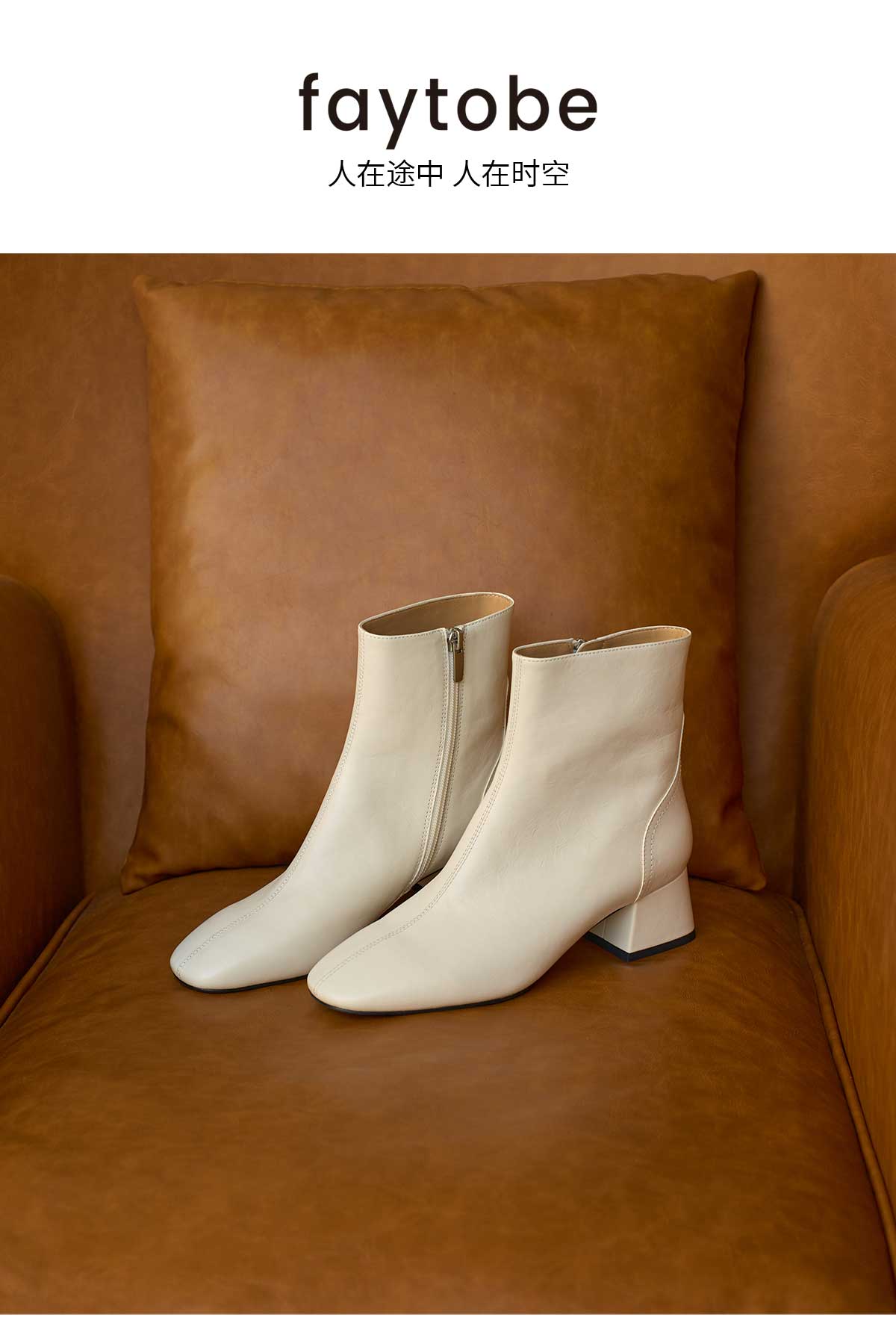 faytobe 粗跟羊皮短靴法式方头时装靴牛皮高跟粗跟中筒短靴