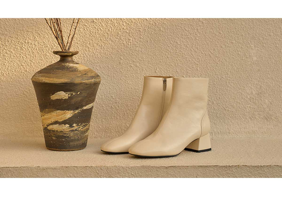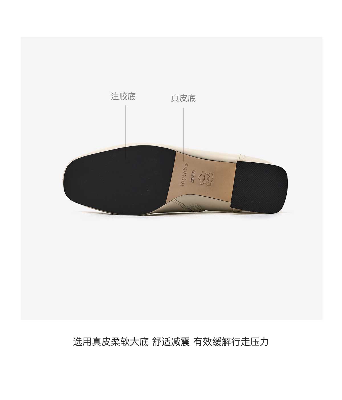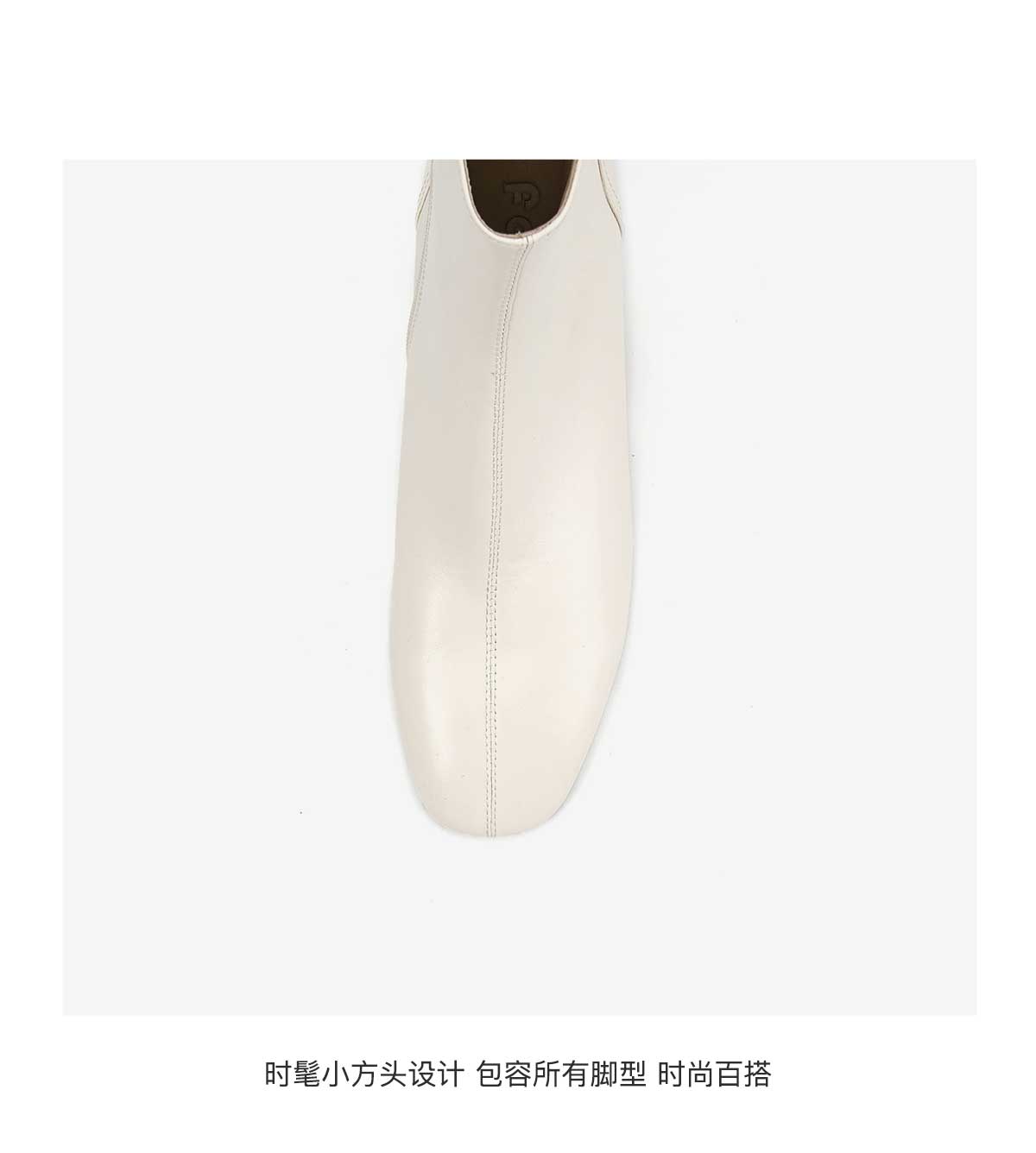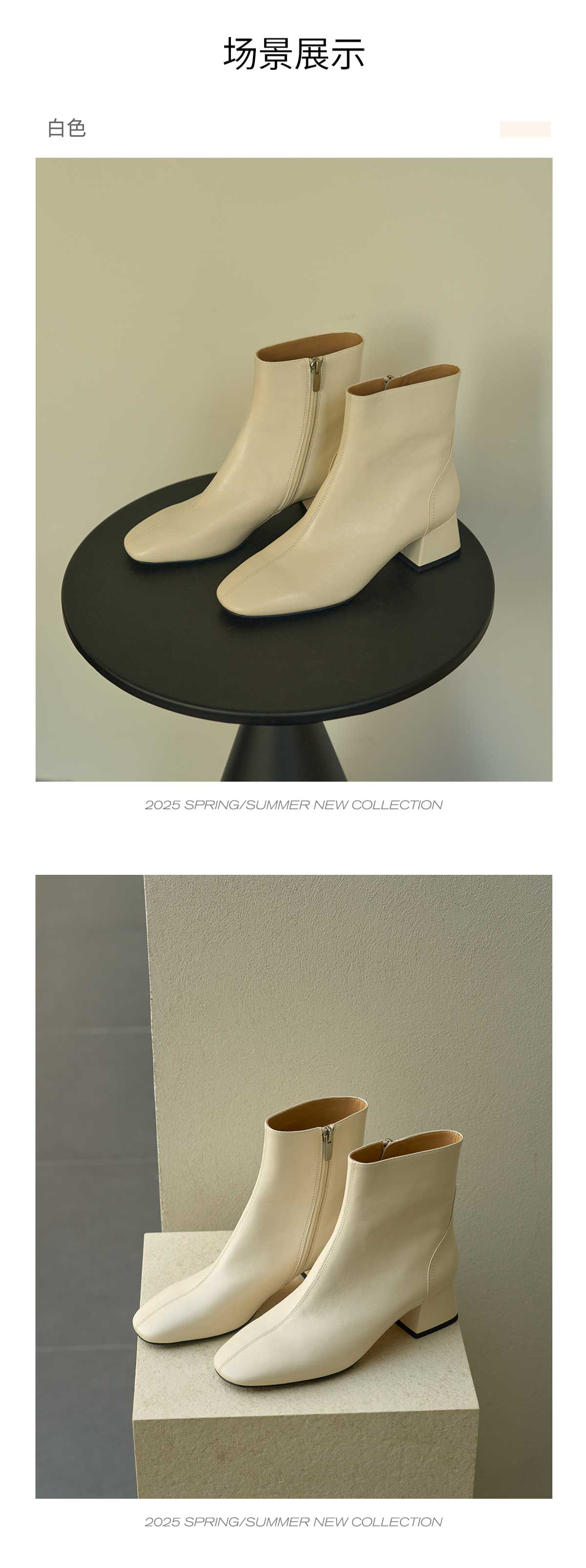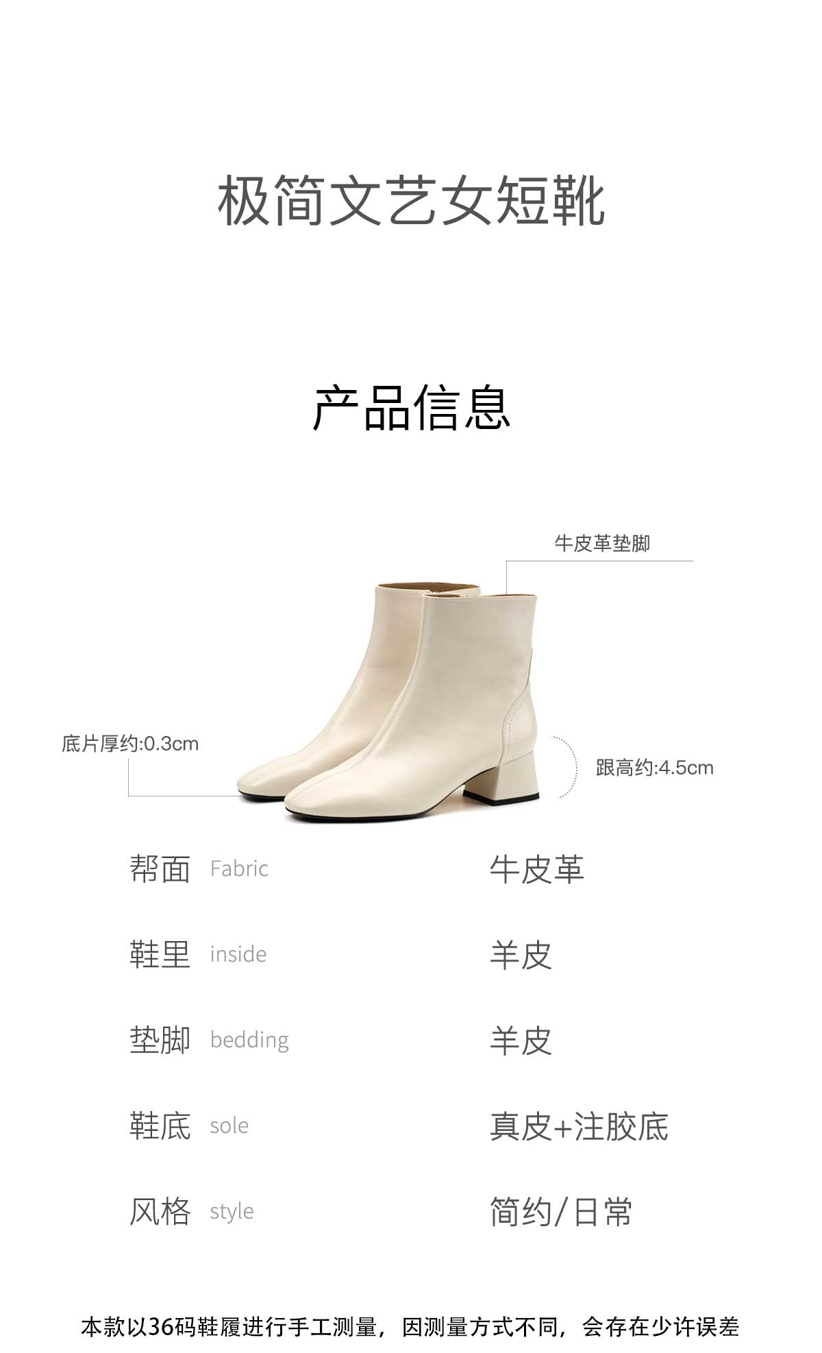 faytobe 粗跟羊皮短靴法式方头时装靴牛皮高跟粗跟中筒短靴
