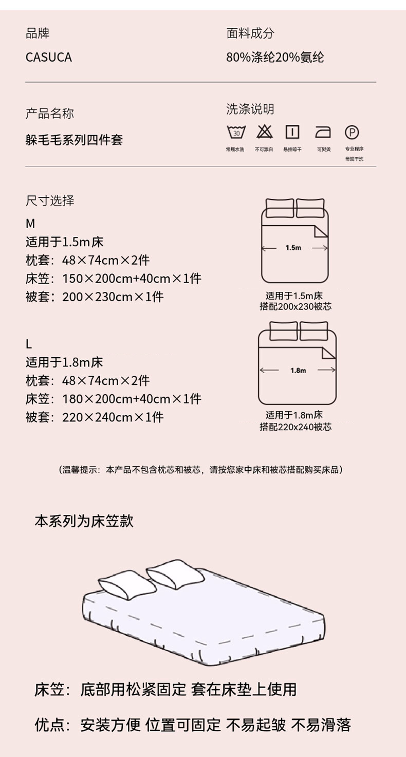 CASUCA 躲毛毛床品四件套拼接风床笠款