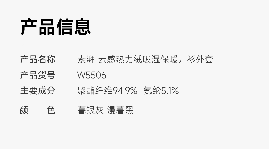 【25秋冬季新款 全面升级】素湃云感热力绒开衫外套W5504&W5506 云感热力绒 触肤柔软