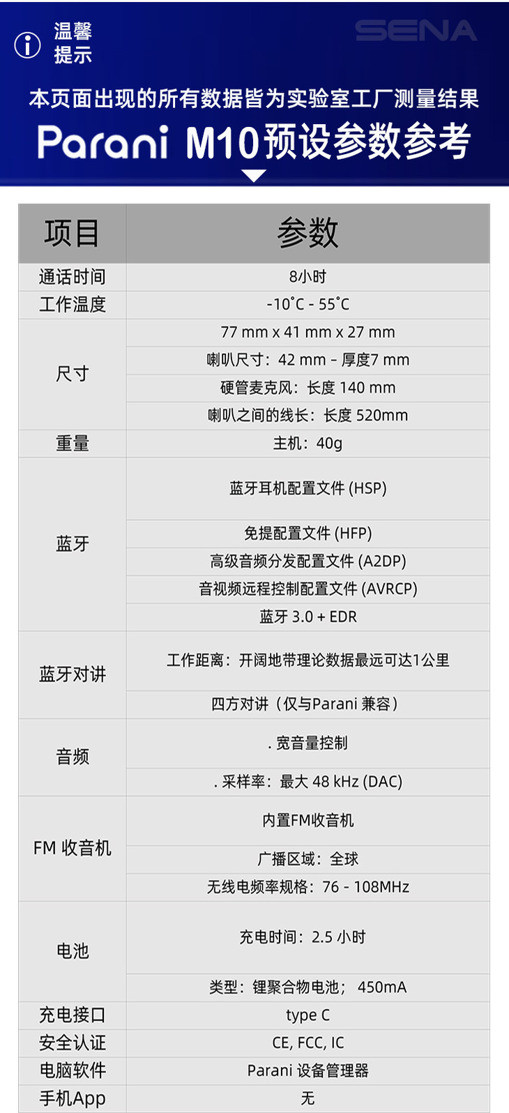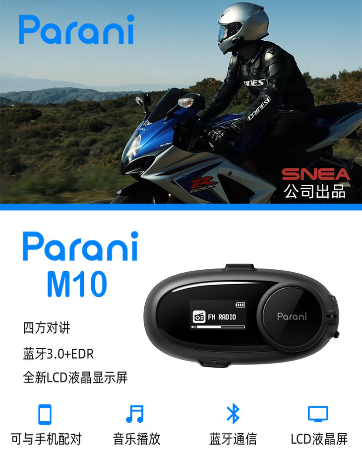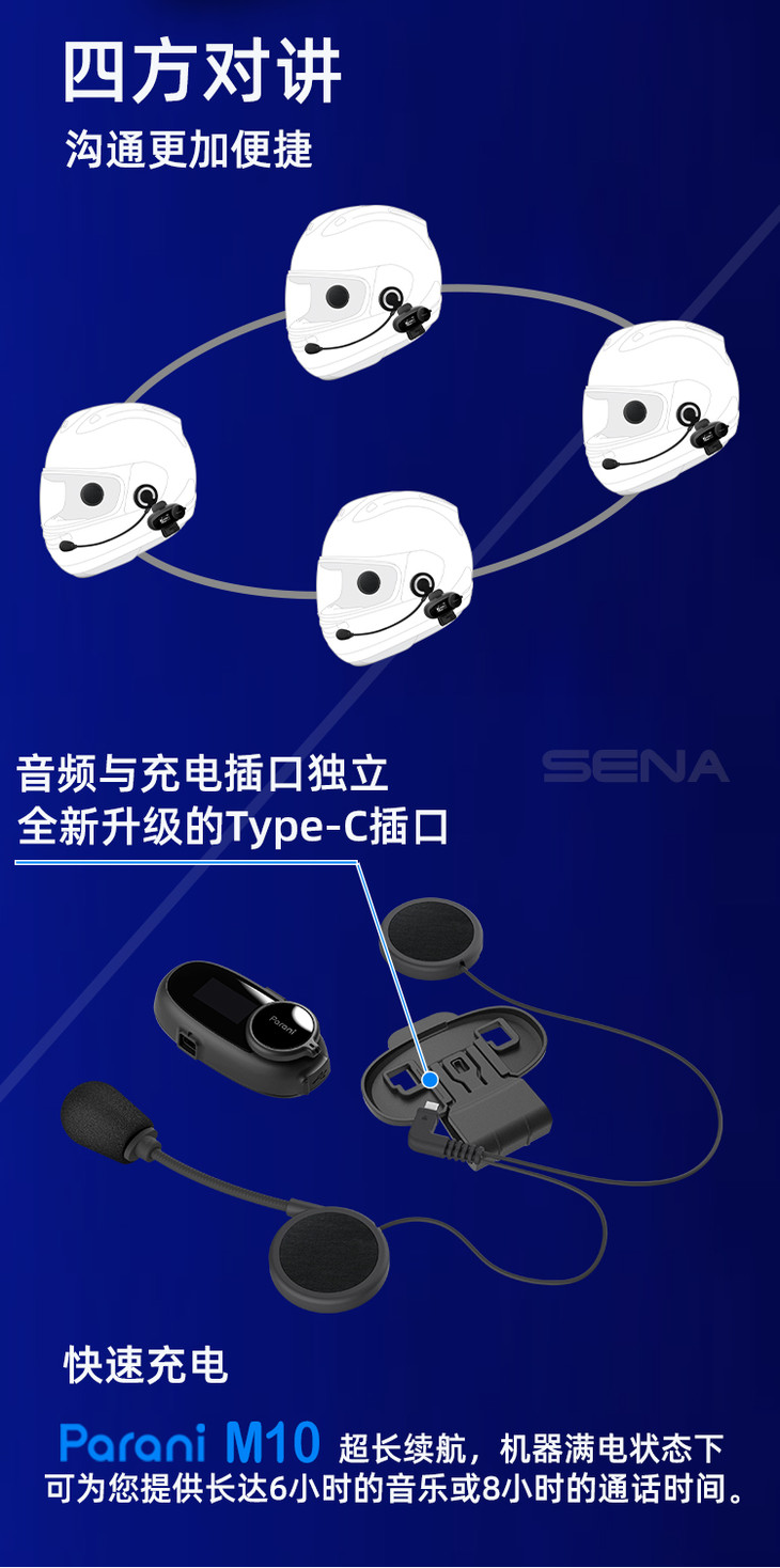 SENA塞纳 Parani M10全新上市 头盔蓝牙耳机
