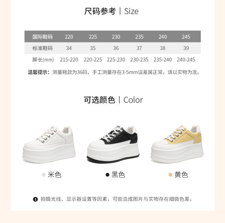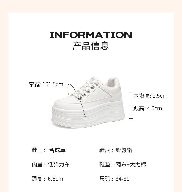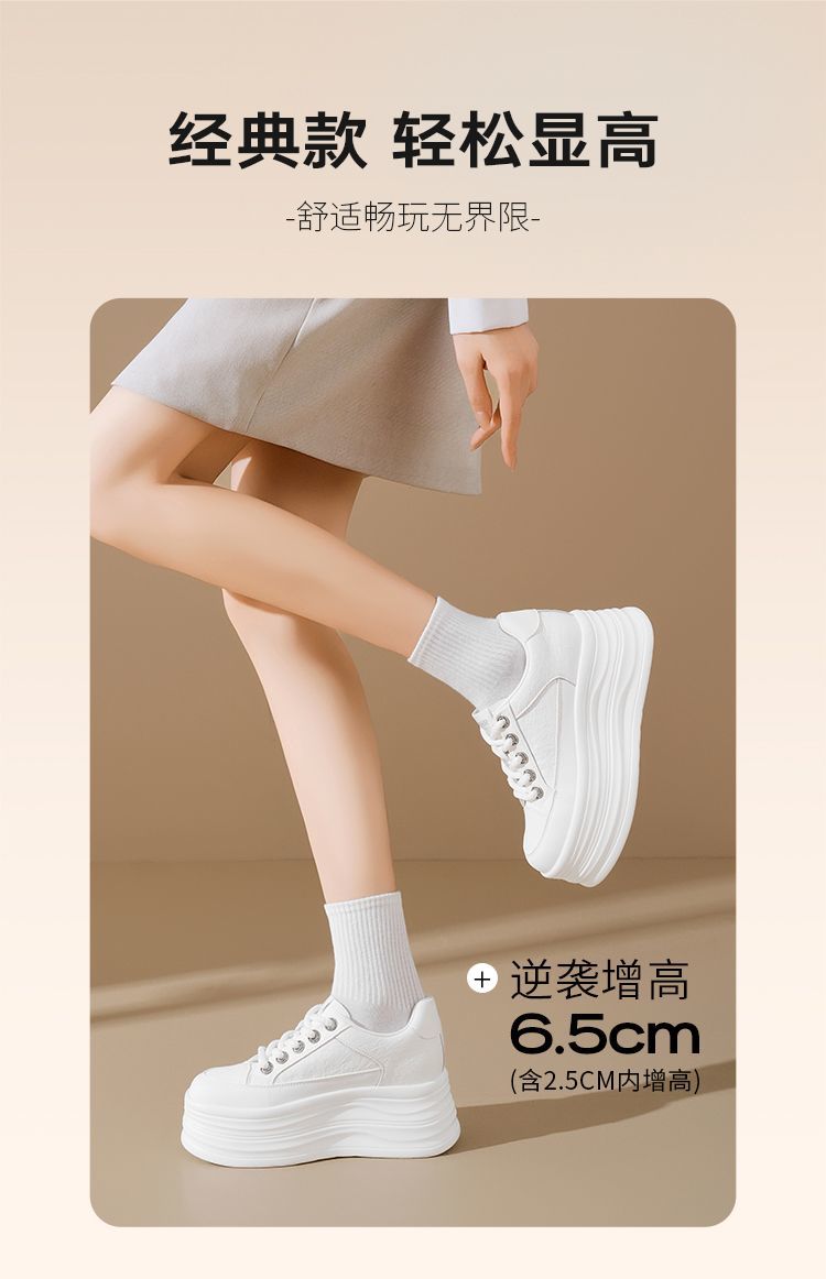 ZHR则则6.5CM增高厚底小白鞋女革面板鞋2025新款小个子休闲运动鞋